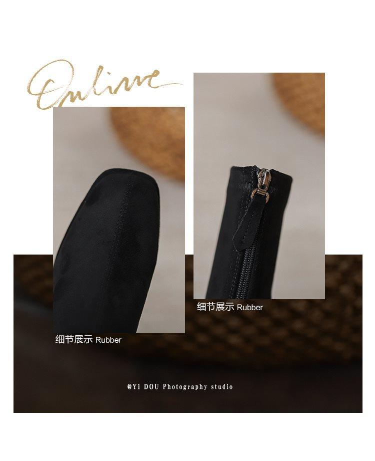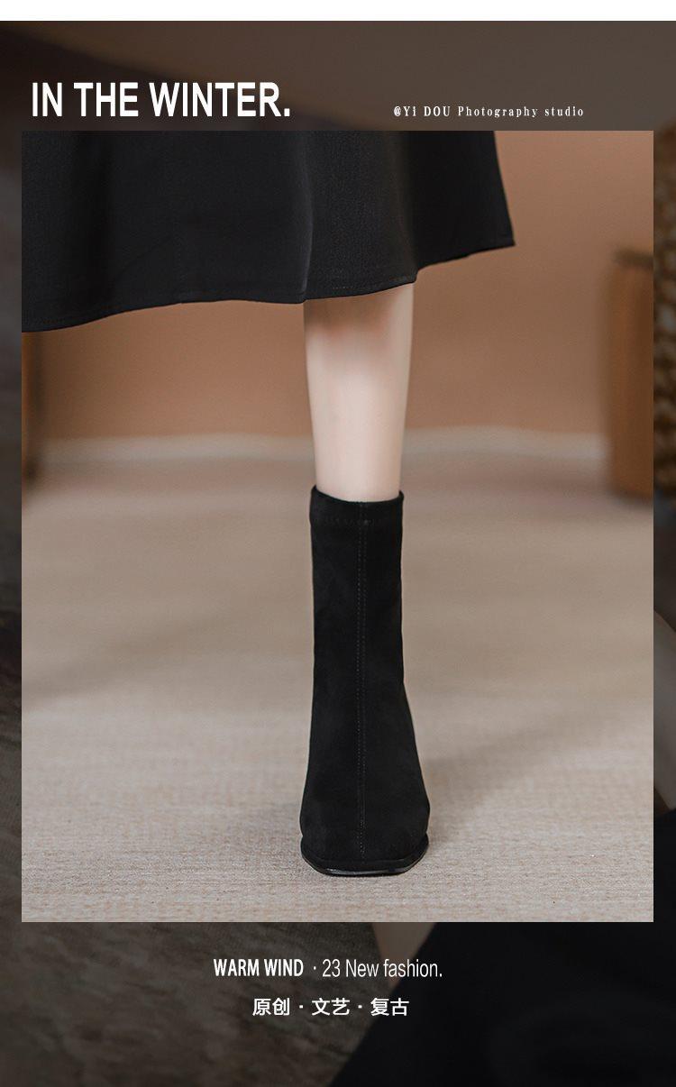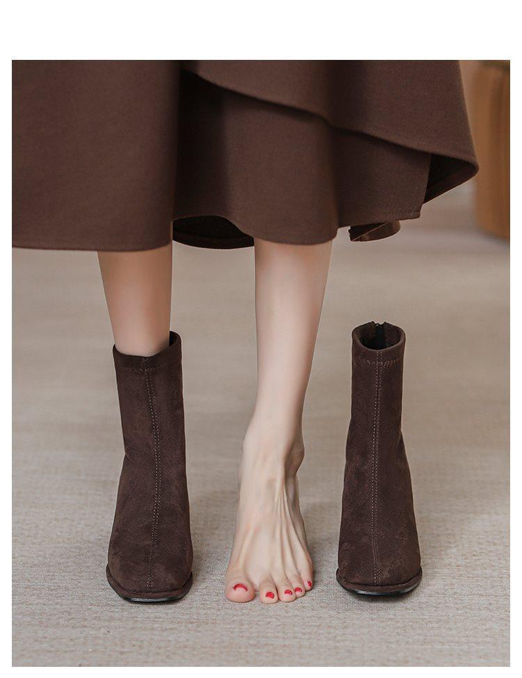 Temperamento Versátil Gamuza Francesa Tacón Alto Botines al Tobillo Mujer 2025 Otoño/Invierno Nuevos Tacón Chunky Punta Cuadrada Elásticos Adelgazantes
