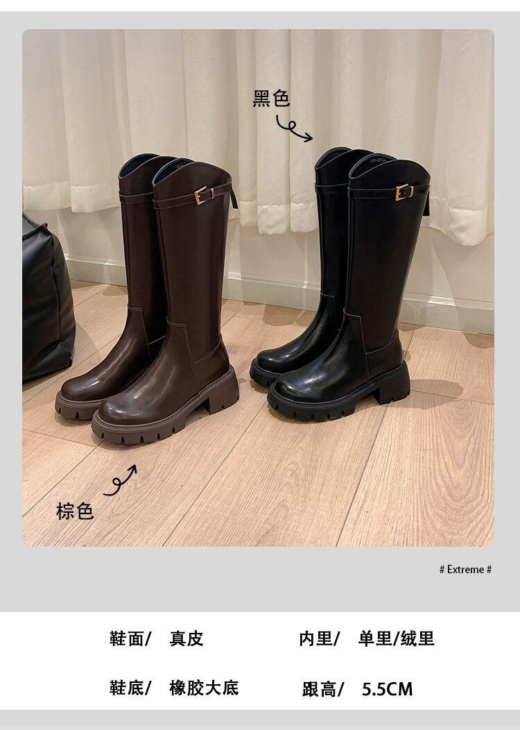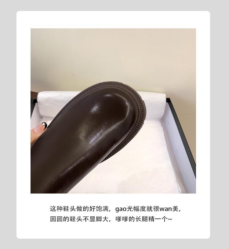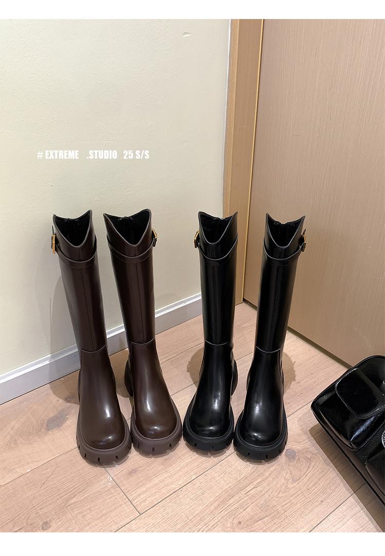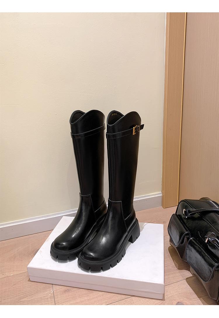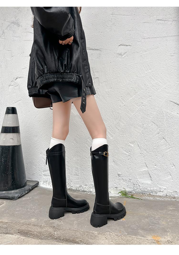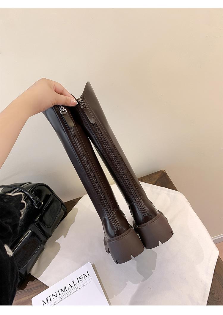 Otoño e Invierno Nuevo 2025 Estilo Coreano Largas Hasta la Rodilla Caballero Cremallera Botas Largas Casual Versátil Suela Gruesa Aumentando la Altura Estilo Británico Zapatos de Mujer