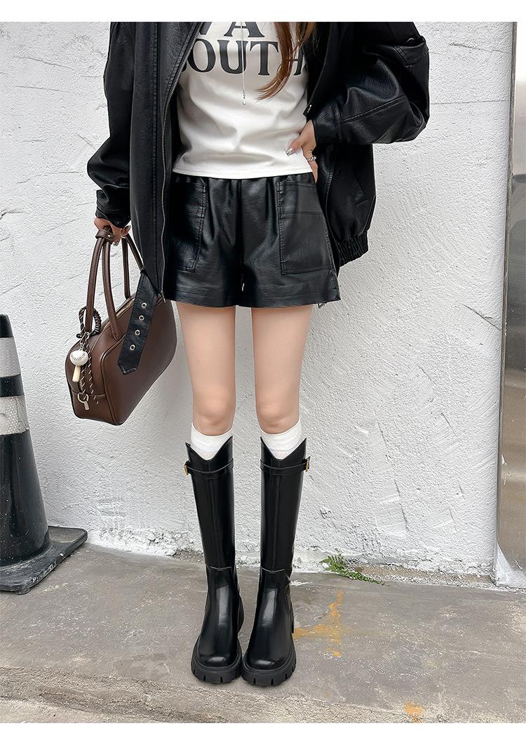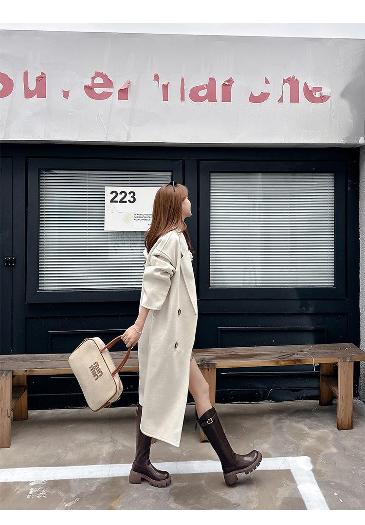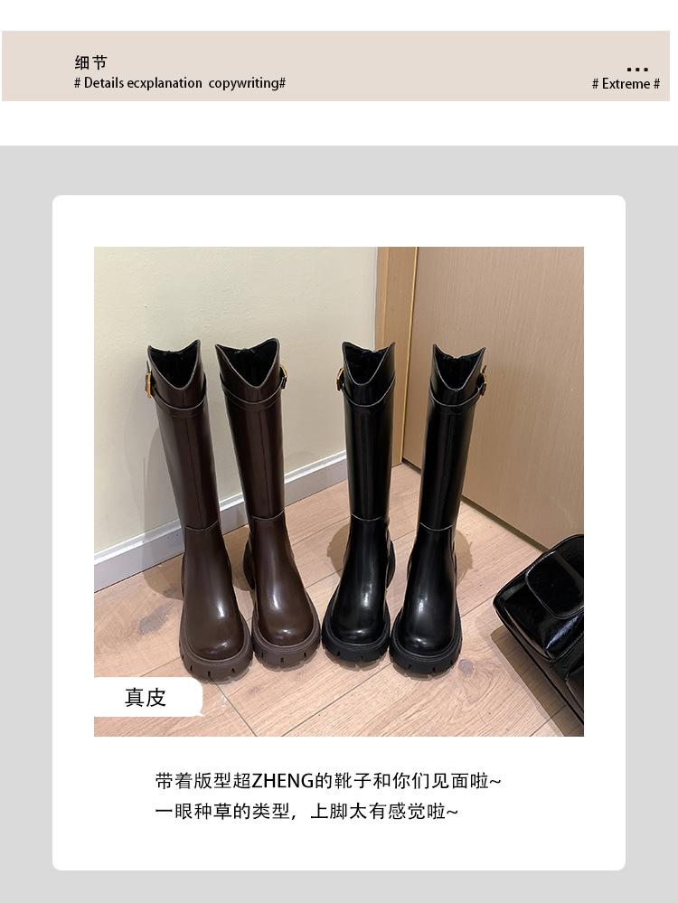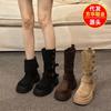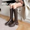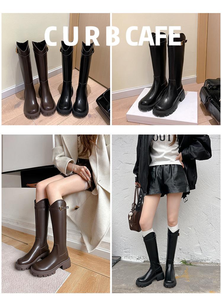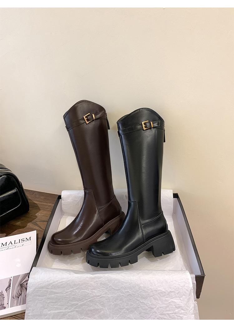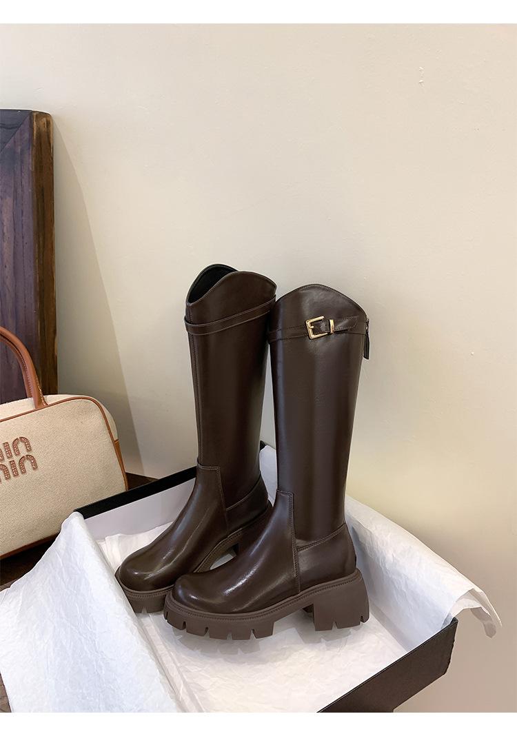 Otoño e Invierno Nuevo 2025 Estilo Coreano Largas Hasta la Rodilla Caballero Cremallera Botas Largas Casual Versátil Suela Gruesa Aumentando la Altura Estilo Británico Zapatos de Mujer