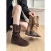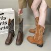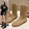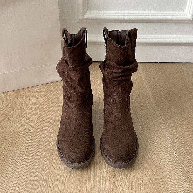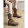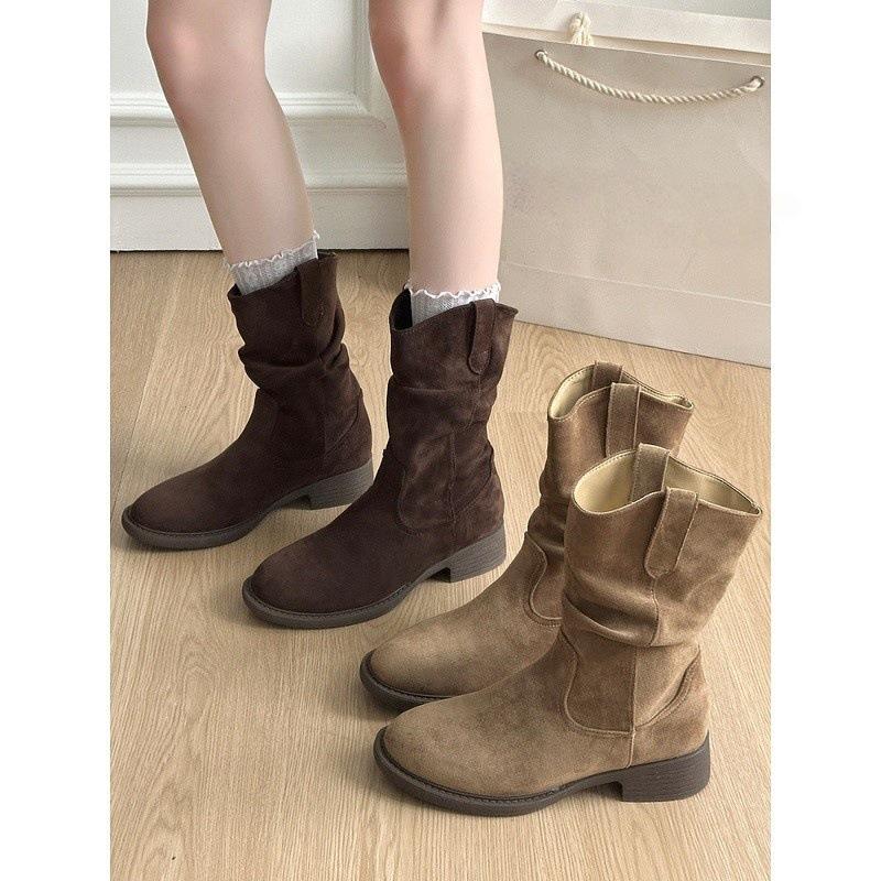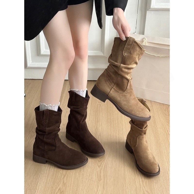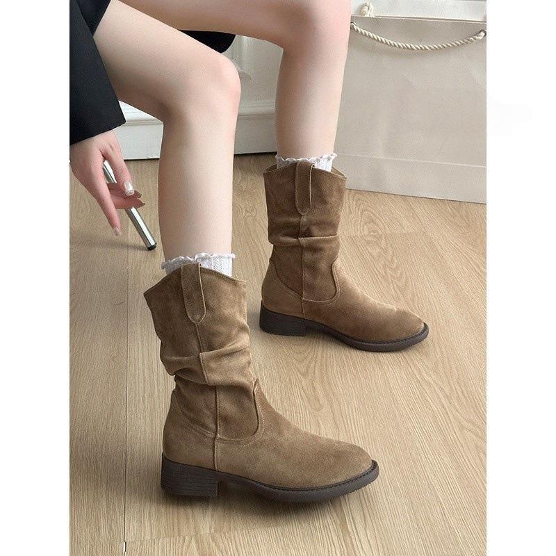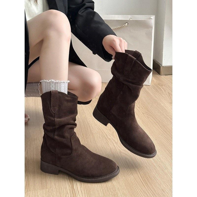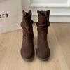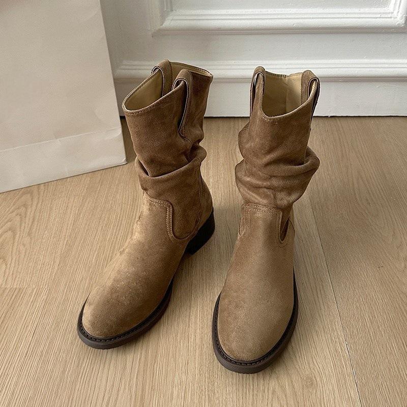 Botas Vaqueras Occidentales para Mujer 2025 Nuevo Otoño Botas de Media Caña Adelgazantes con Boca en V Plisadas Apiladas Botas Martin