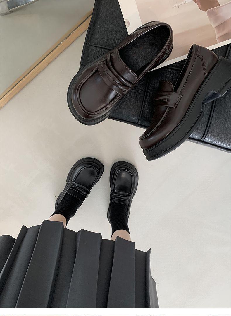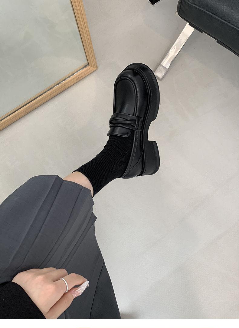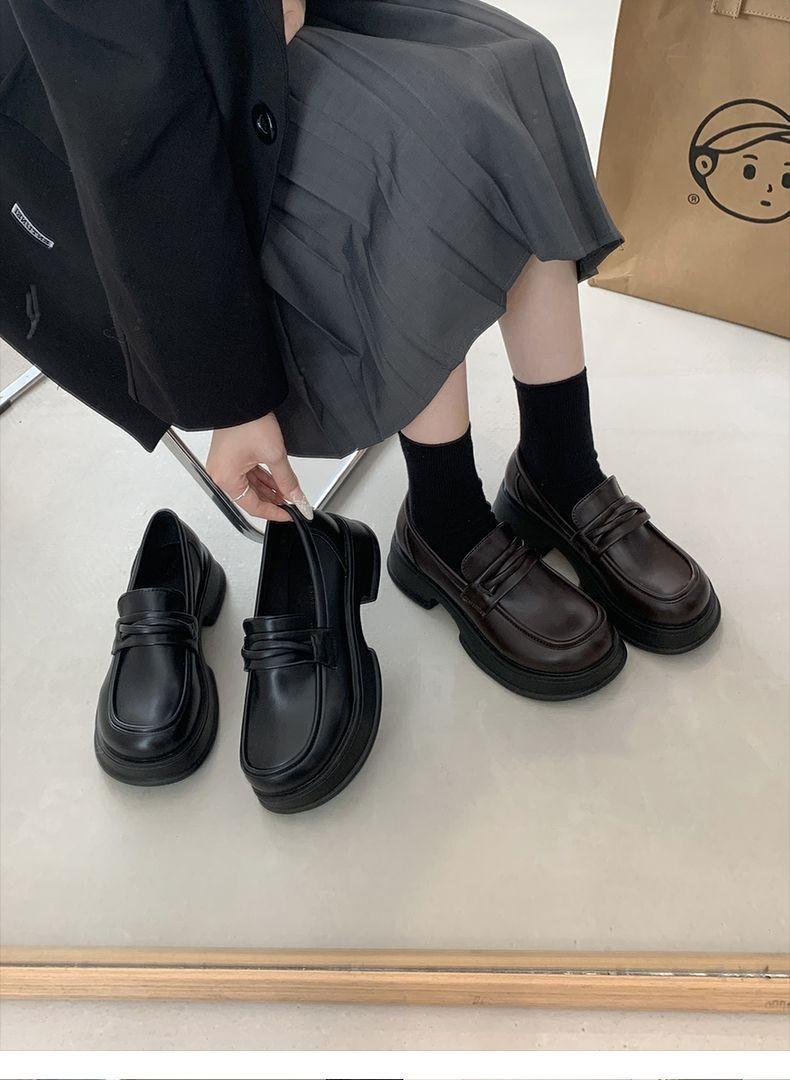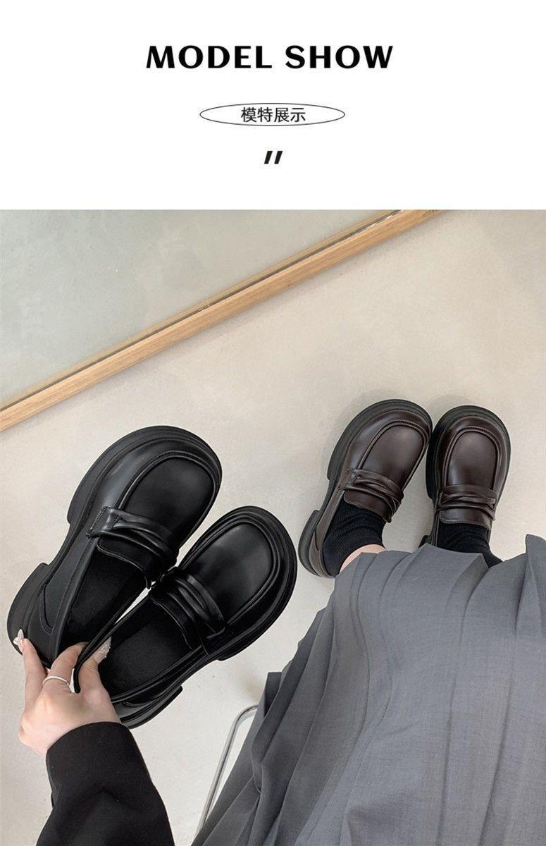 Zapatos de Piel Pequeños Versátiles Retro de Punta Redonda con Suela Gruesa Negros para Mujer 2025 Nuevo Primavera y Otoño Estilo Británico Mocasines de Piel Suave