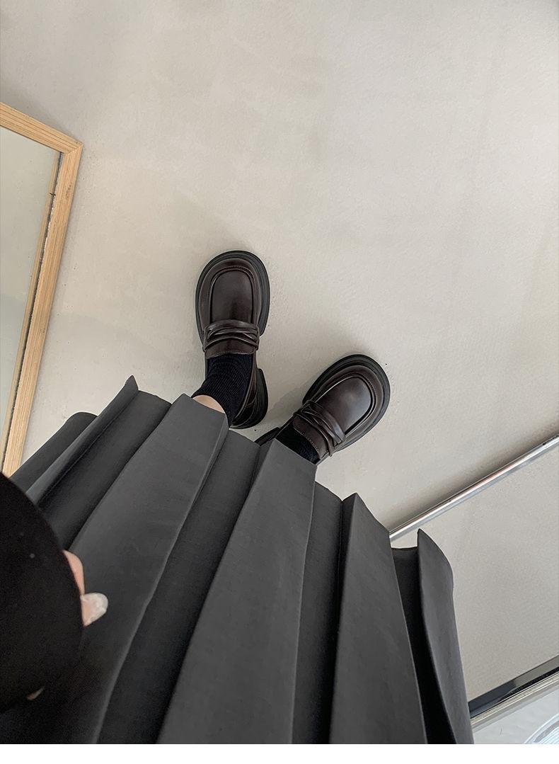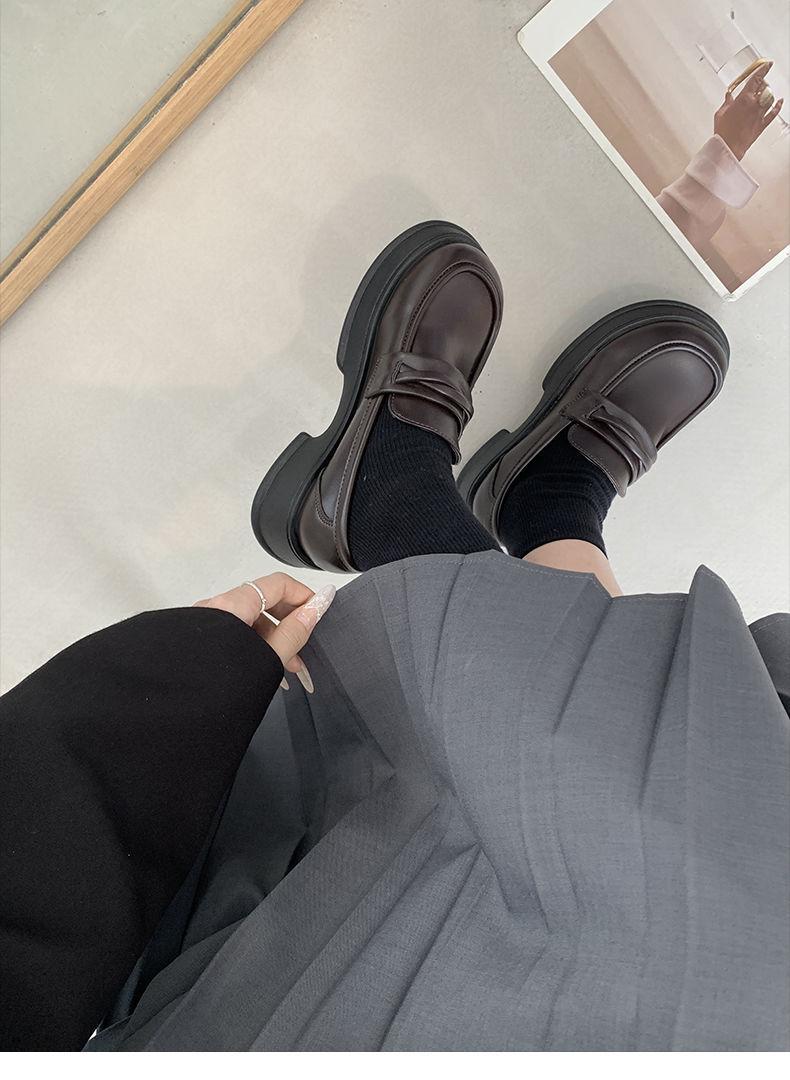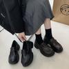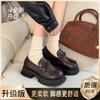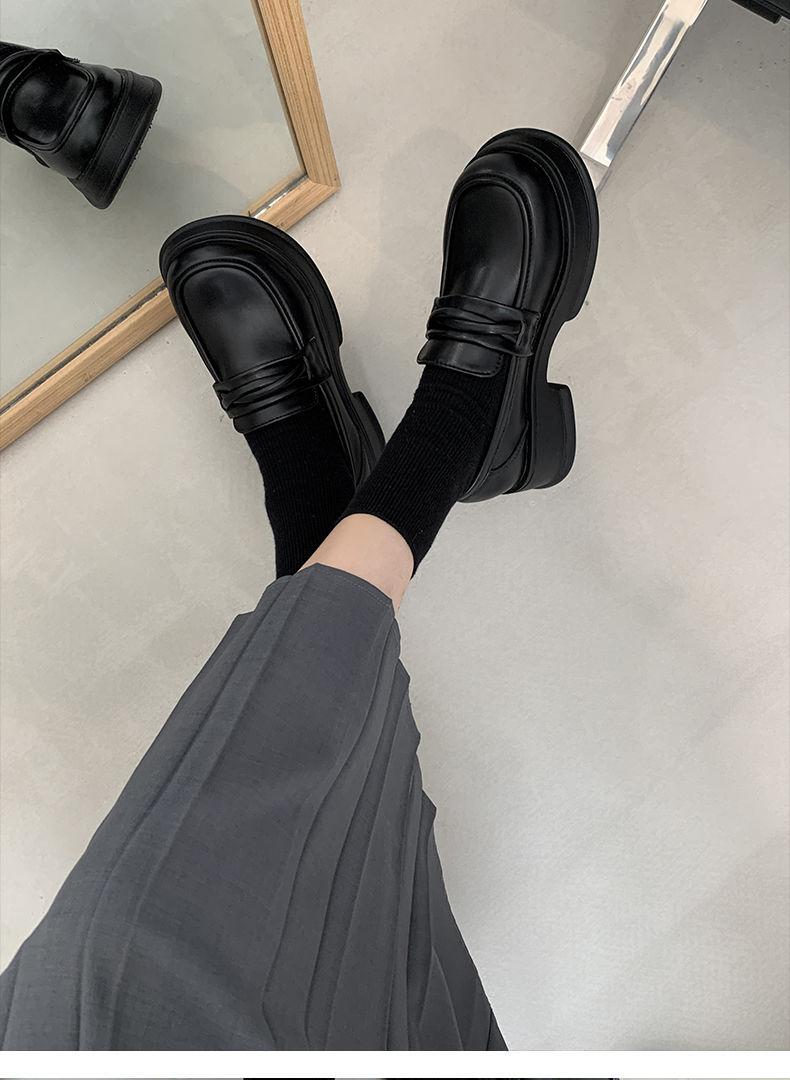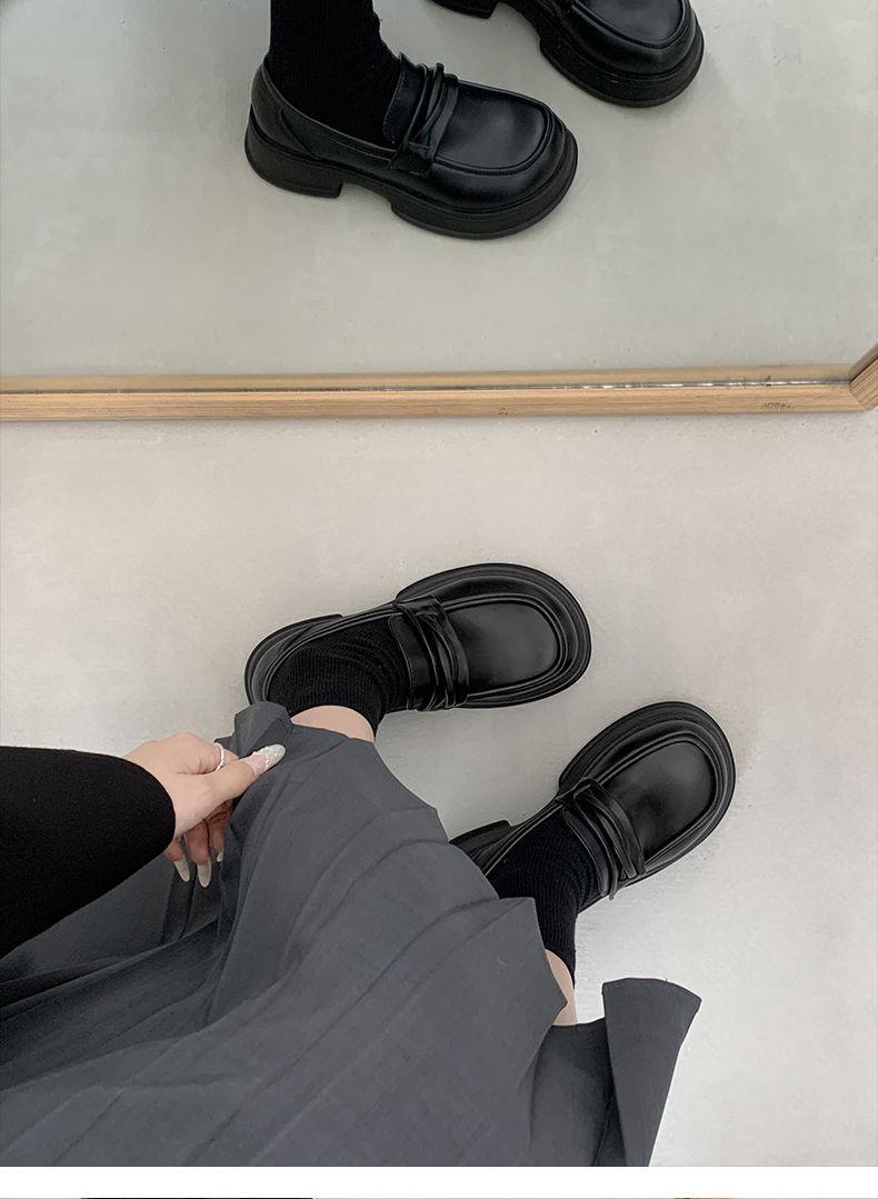 Zapatos de Piel Pequeños Versátiles Retro de Punta Redonda con Suela Gruesa Negros para Mujer 2025 Nuevo Primavera y Otoño Estilo Británico Mocasines de Piel Suave