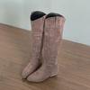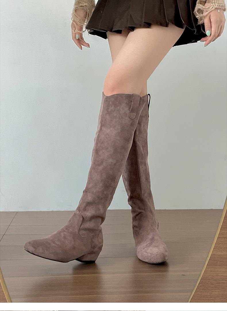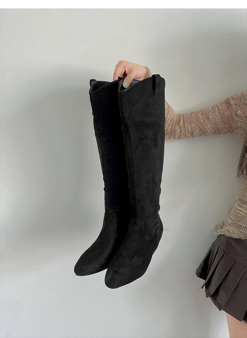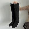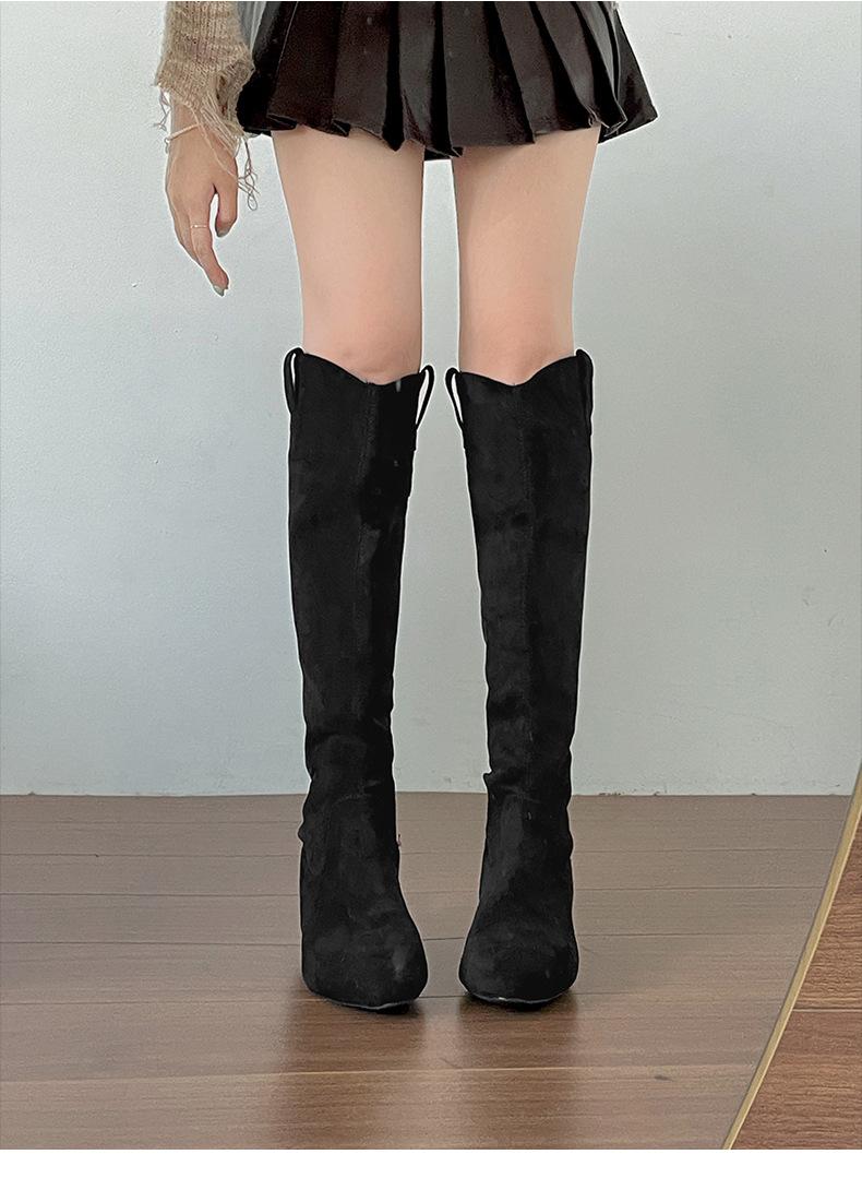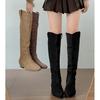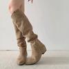 Botas altas hasta la rodilla para mujer estilo reina retro de tacón grueso 2025 nuevo otoño talla pequeña adelgazantes caballero botas largas