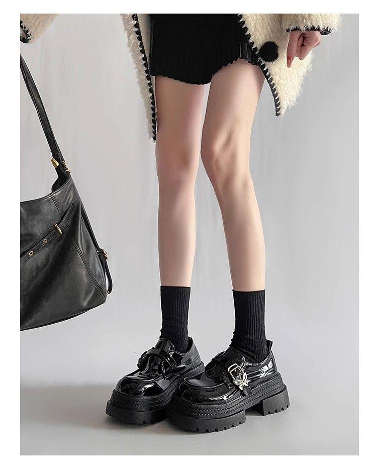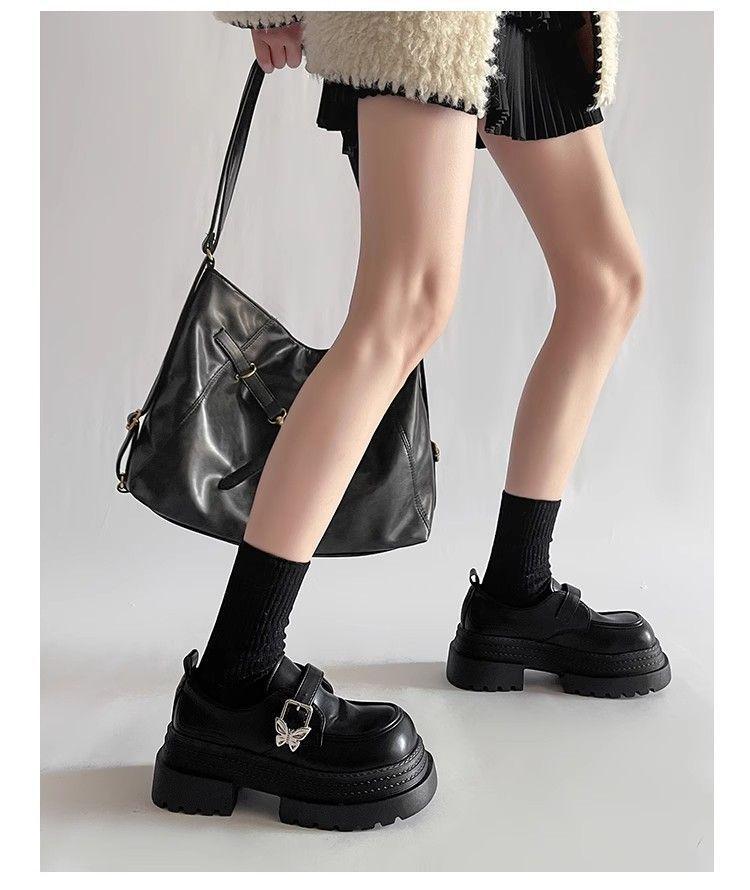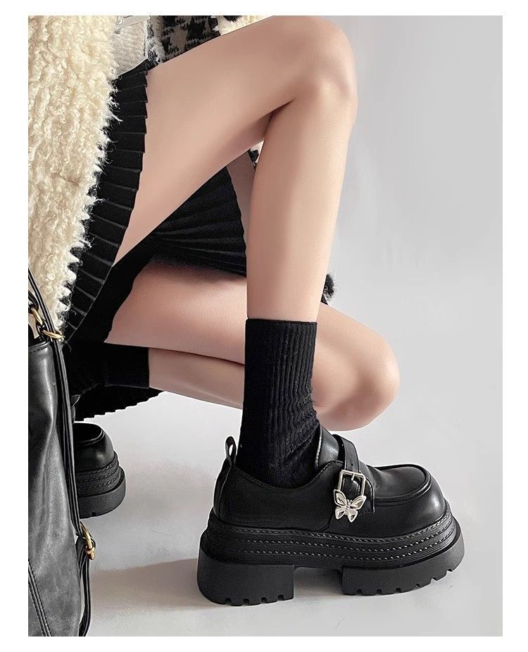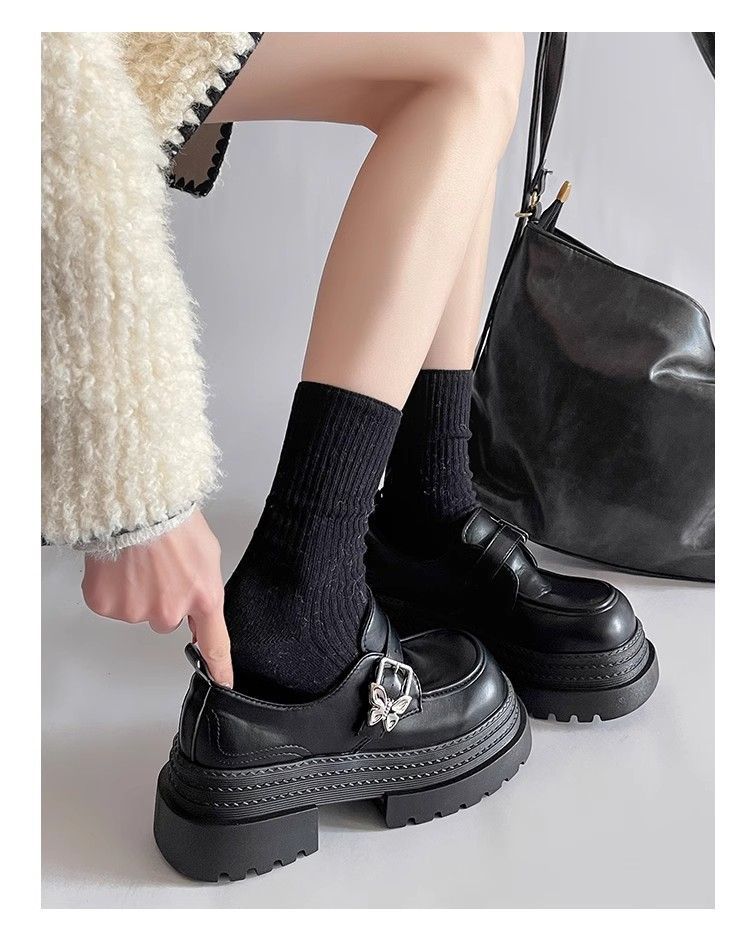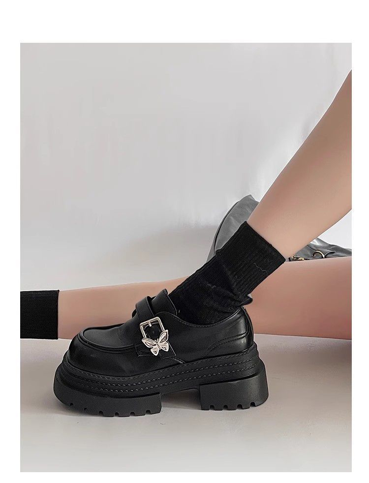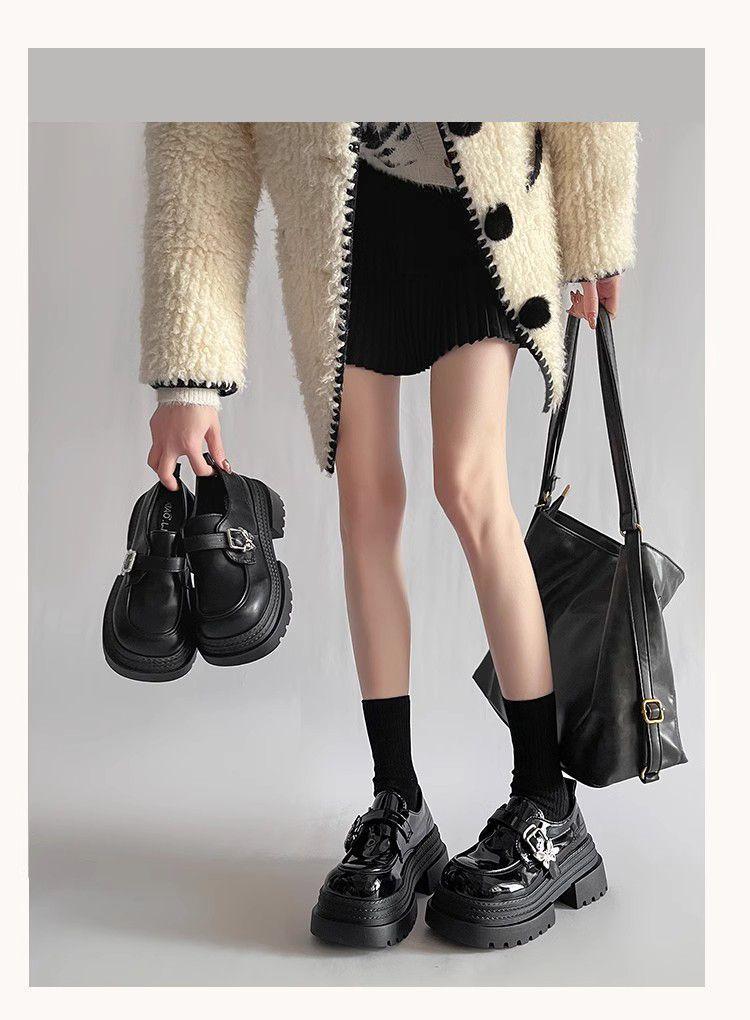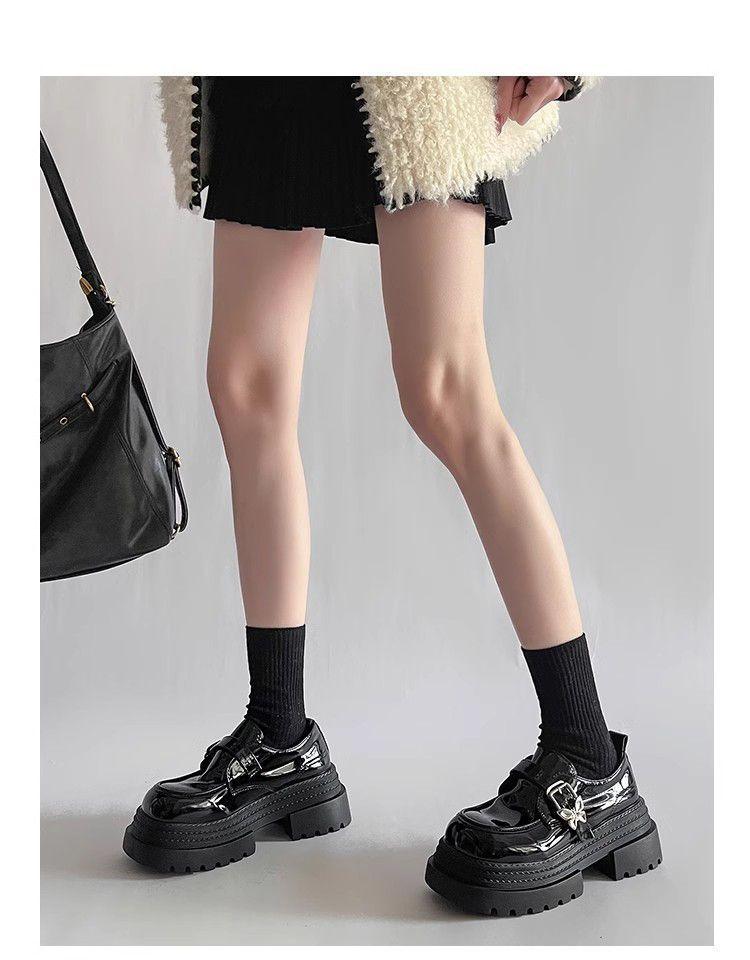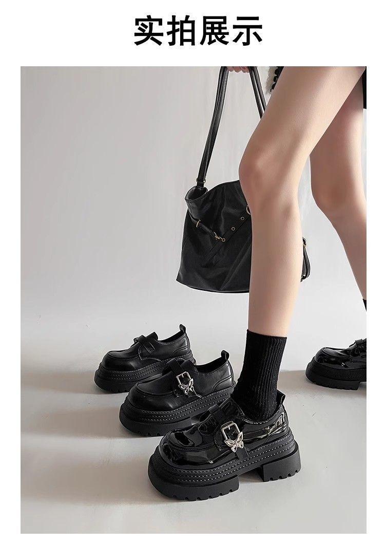 Mocasines pequeños de suela gruesa para aumentar la altura Mujer 2025 Primavera y Otoño Nuevo Estilo Británico Retro Japonés Zapatos Individuales