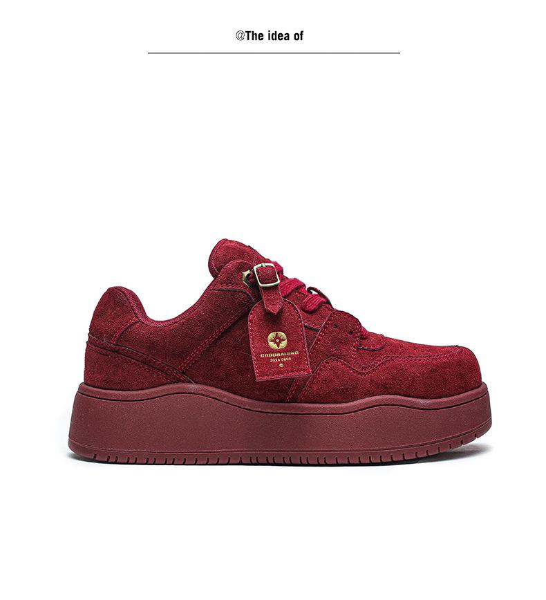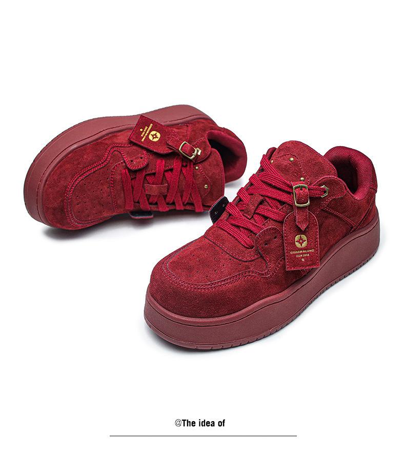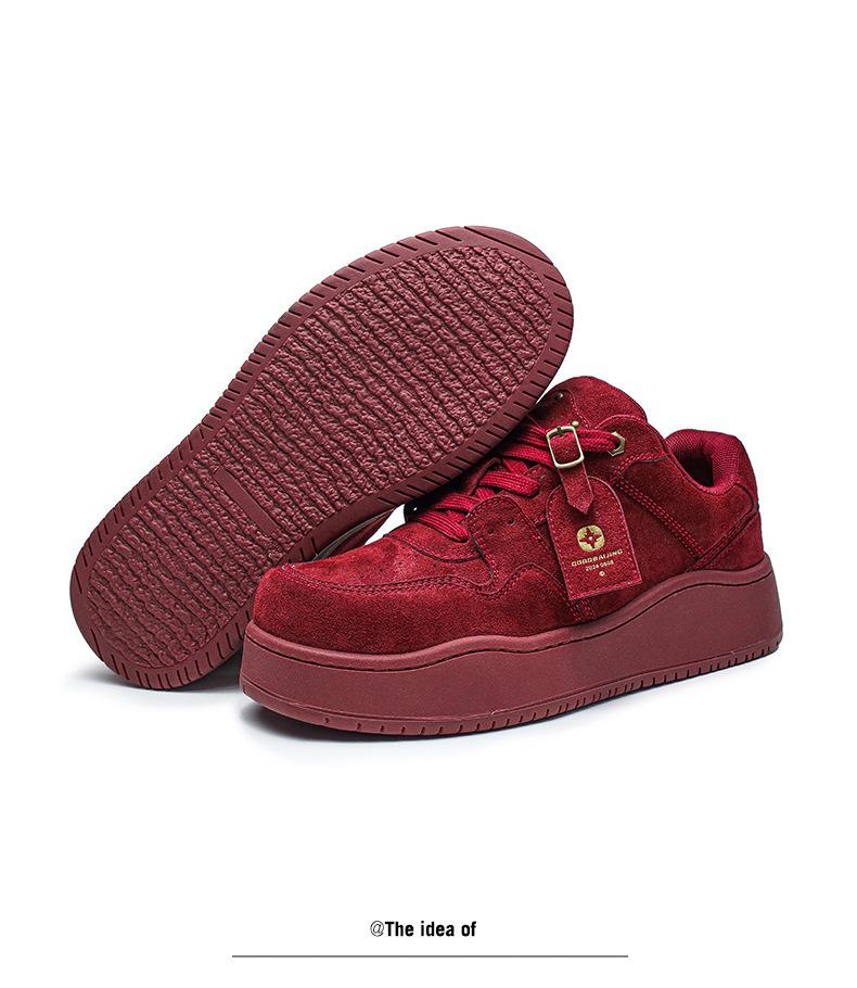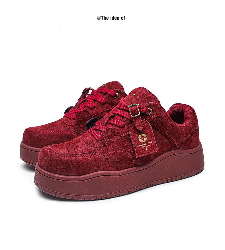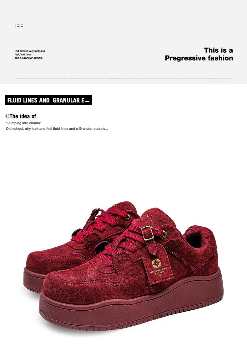 2024 Nuevo Vino Tinto Suela Gruesa Casual con Cordones Zapatos de Lona Estilo Universitario para Mujer Punta Redonda Versátil para Hombre Aumento de Altura Zapatos de Pareja