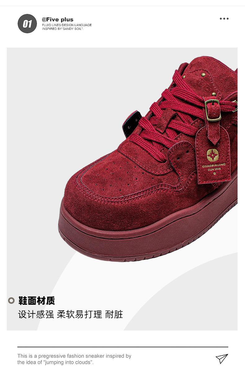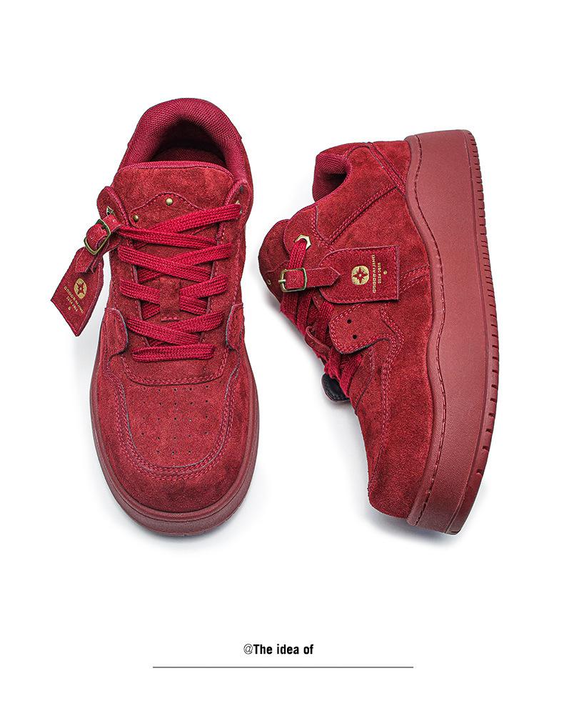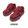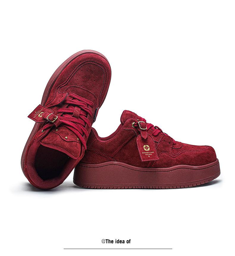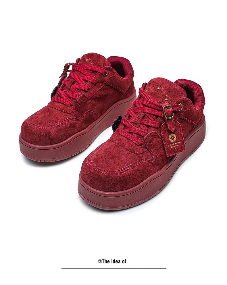 2024 Nuevo Vino Tinto Suela Gruesa Casual con Cordones Zapatos de Lona Estilo Universitario para Mujer Punta Redonda Versátil para Hombre Aumento de Altura Zapatos de Pareja