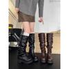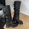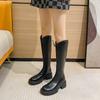 Botas negras altas de otoño e invierno de suela gruesa botas largas mujer 2025 nuevo estilo adelgazantes que aumentan la altura talla petite tacón grueso botas de caballero