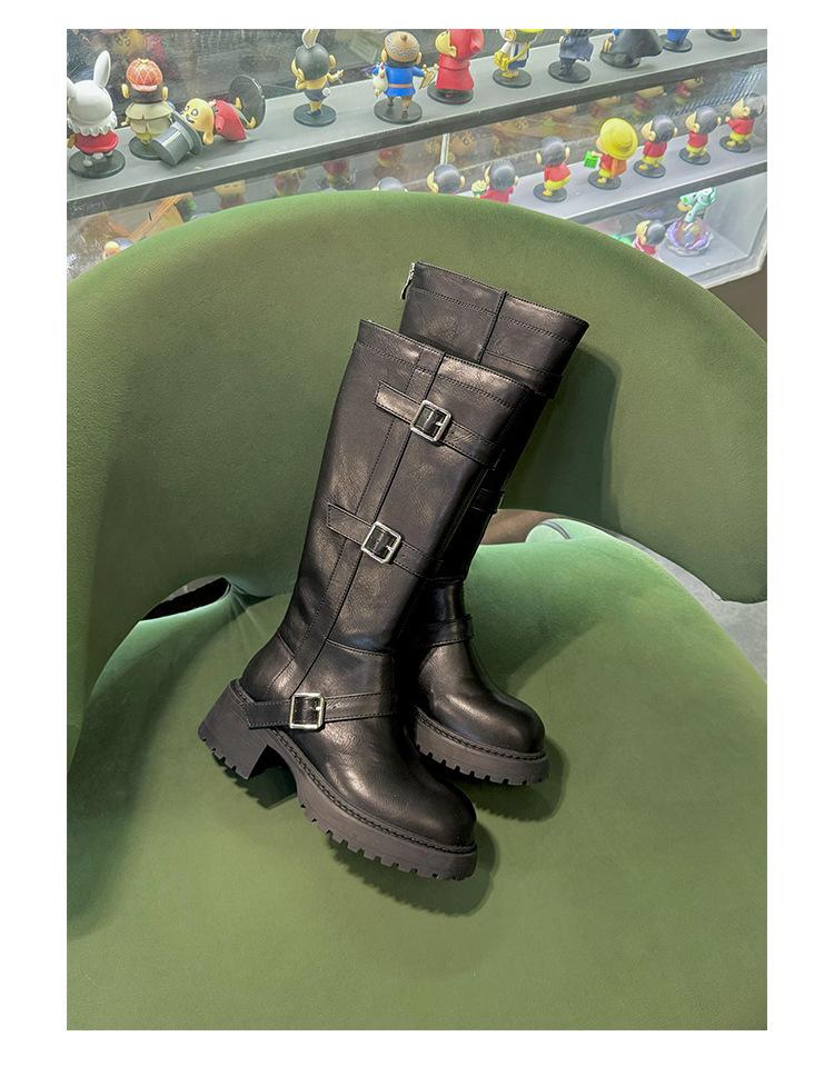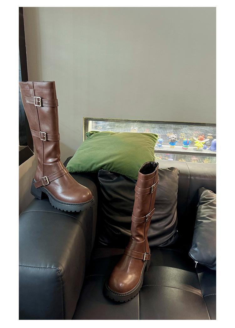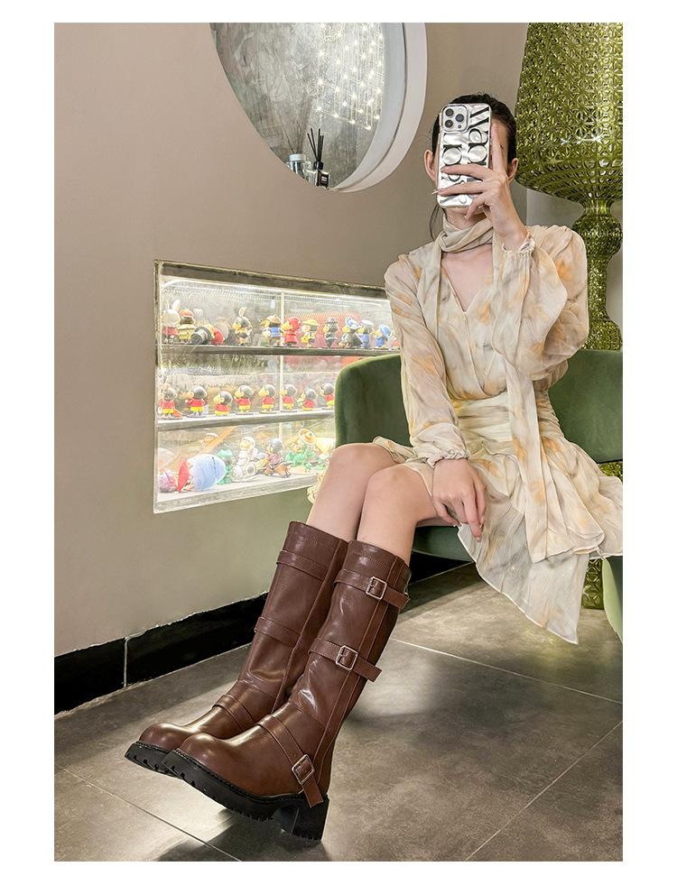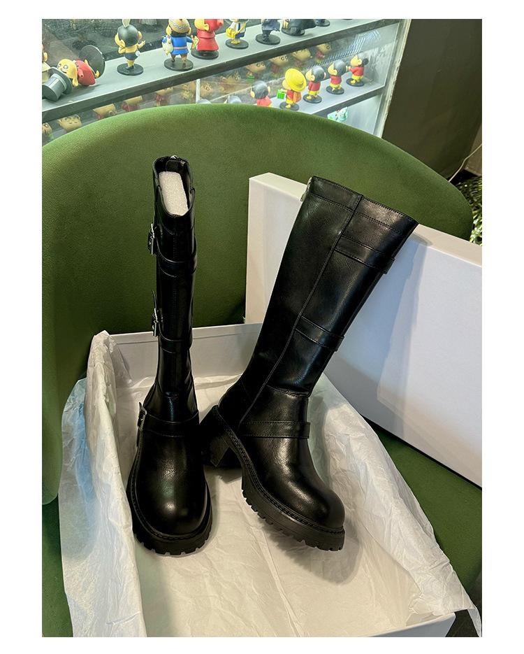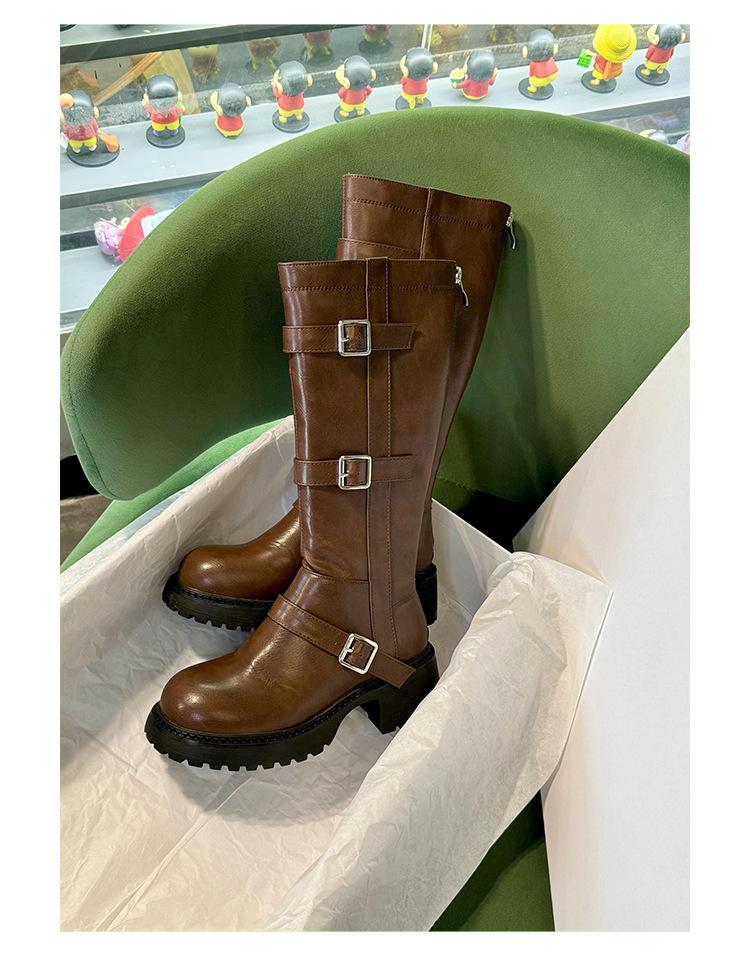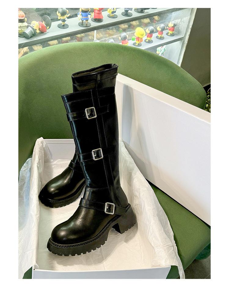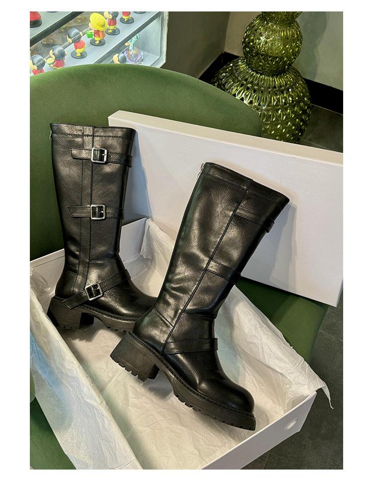 Botas Maillard Vaquero Occidental Caballero Tacón Chunky Suela Gruesa Hebilla Super Calientes Hasta la Rodilla Mujer