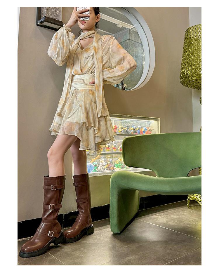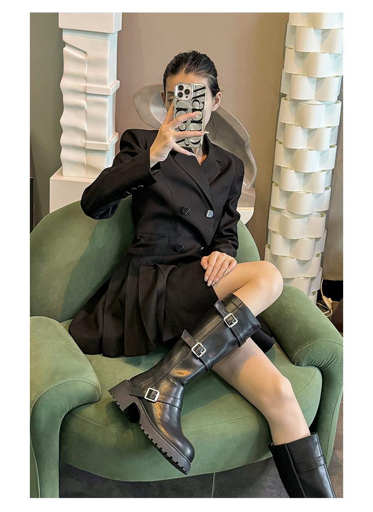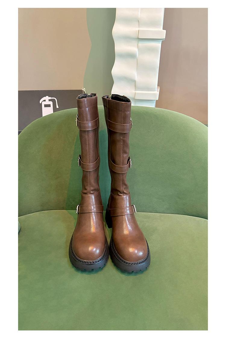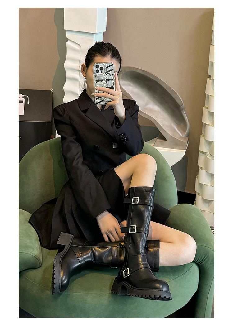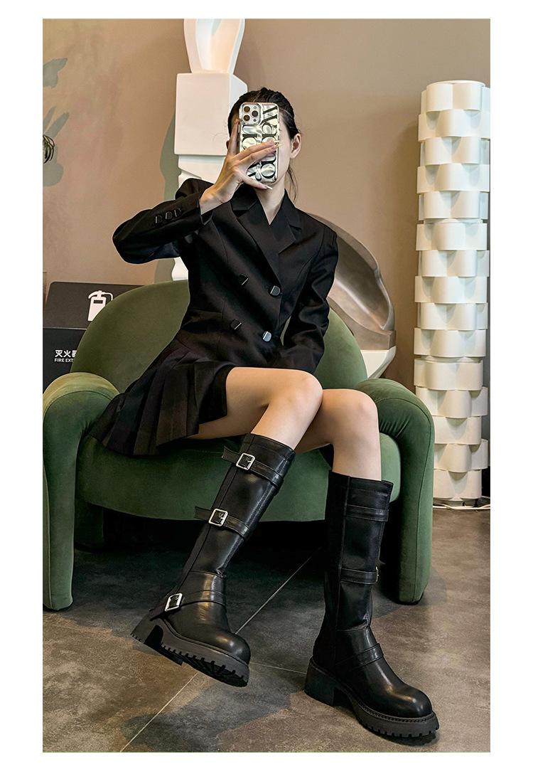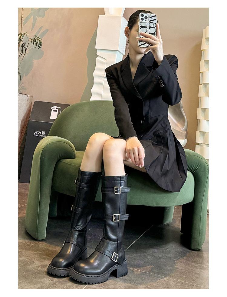 Botas Maillard Vaquero Occidental Caballero Tacón Chunky Suela Gruesa Hebilla Super Calientes Hasta la Rodilla Mujer