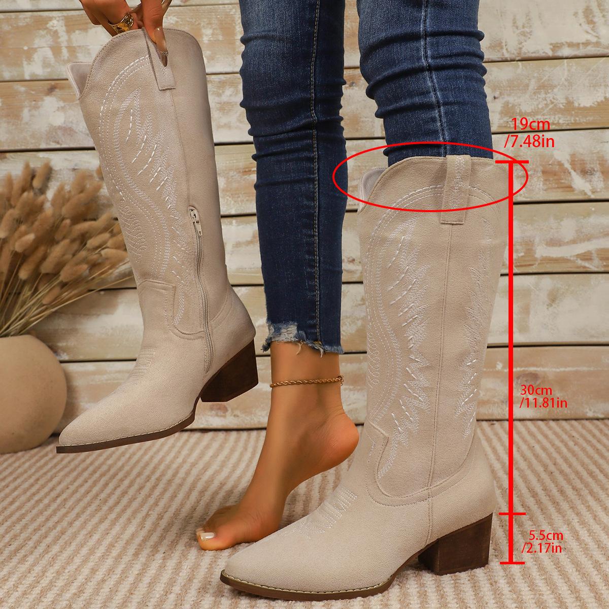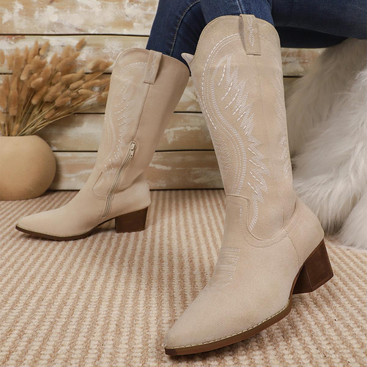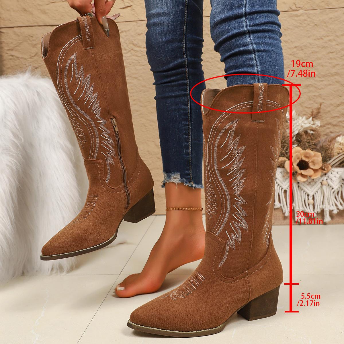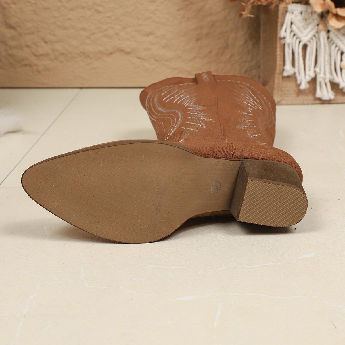 Botas Vaqueras Botas de Media Caña Vintage para Mujer Otoño e Invierno Nuevas Punta Afilada Tacón Grueso Tacón Medio Talla Grande Transfronterizas Comercio Exterior