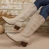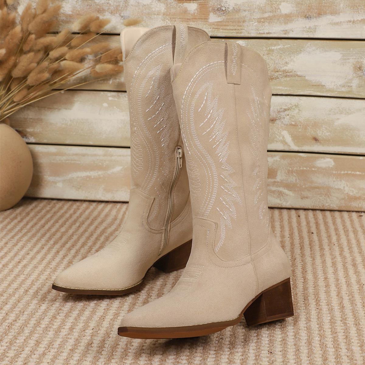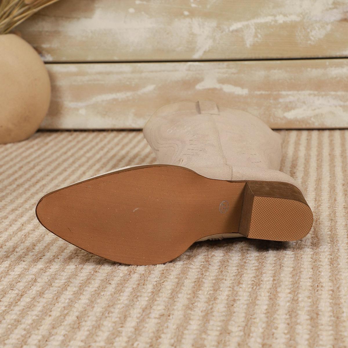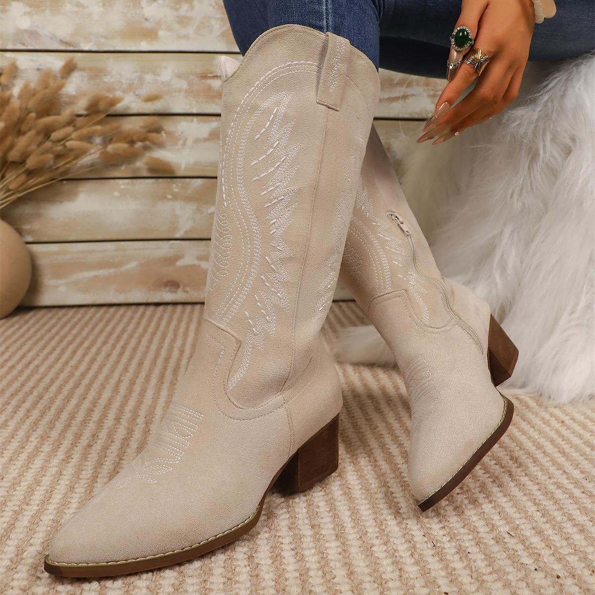Botas Vaqueras Botas de Media Caña Vintage para Mujer Otoño e Invierno Nuevas Punta Afilada Tacón Grueso Tacón Medio Talla Grande Transfronterizas Comercio Exterior