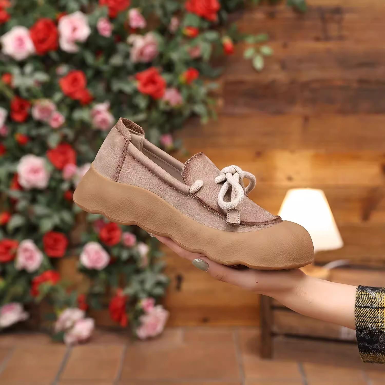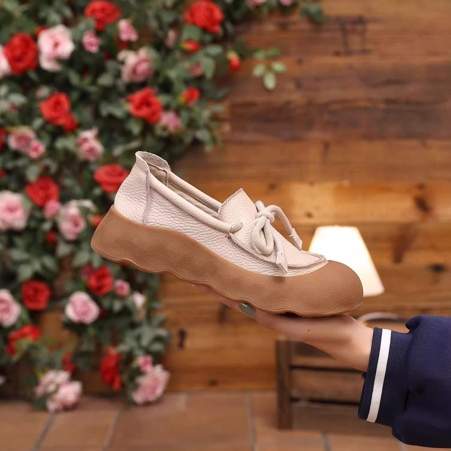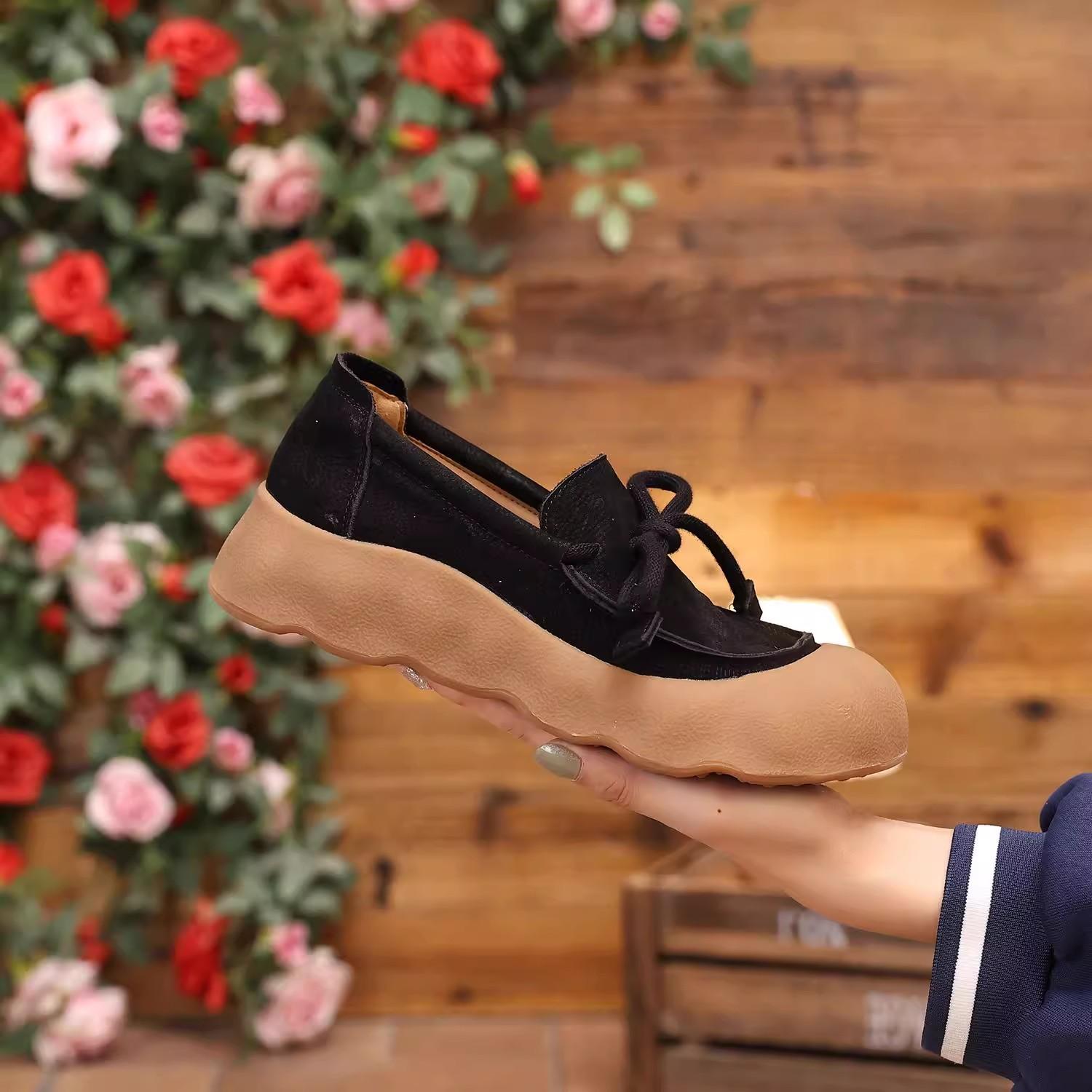 Mocasines retro con cordones y sin cordones de suela gruesa para mujer 2025 Nueva moda Versátiles Cómodos Ligeros Zapatos de piel pequeños