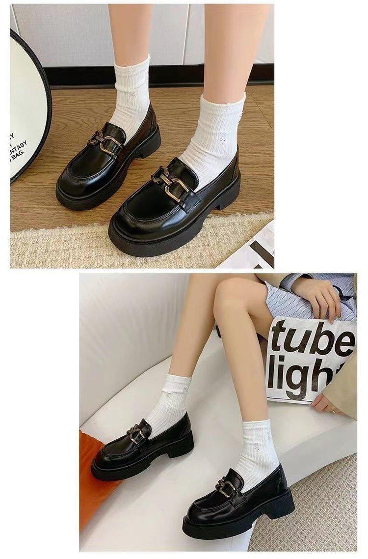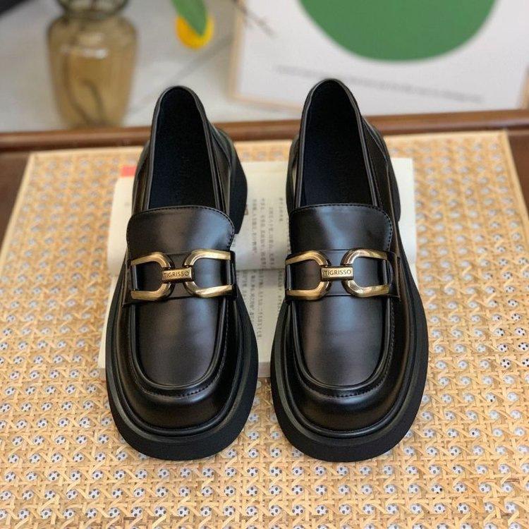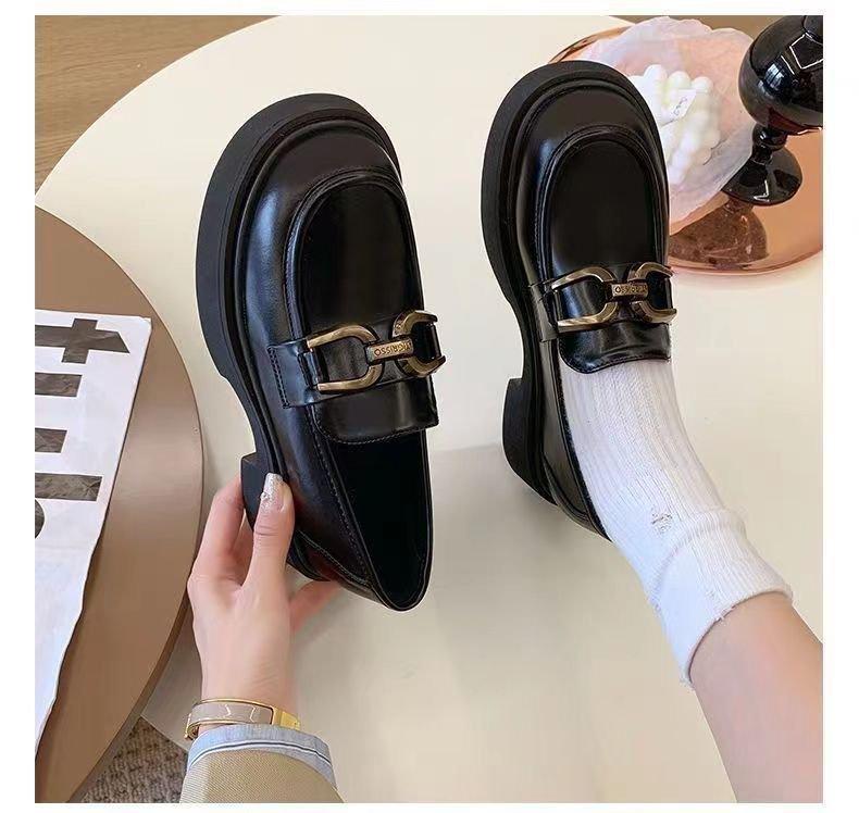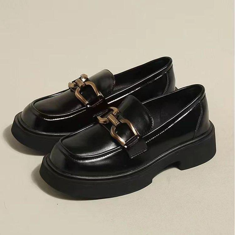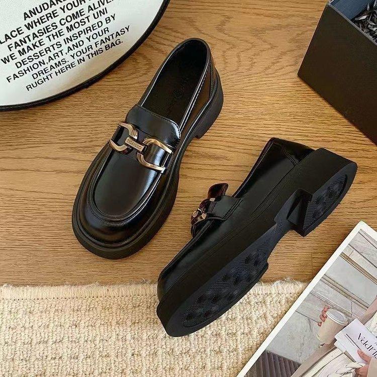 Mocasines para mujer estilo británico suela blanda zapatos de piel pequeños 2025 estilo otoño temperamento atuendo negro slip-on zapatos sencillos cómodos