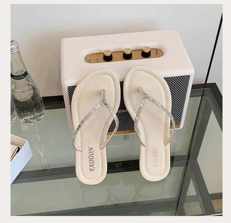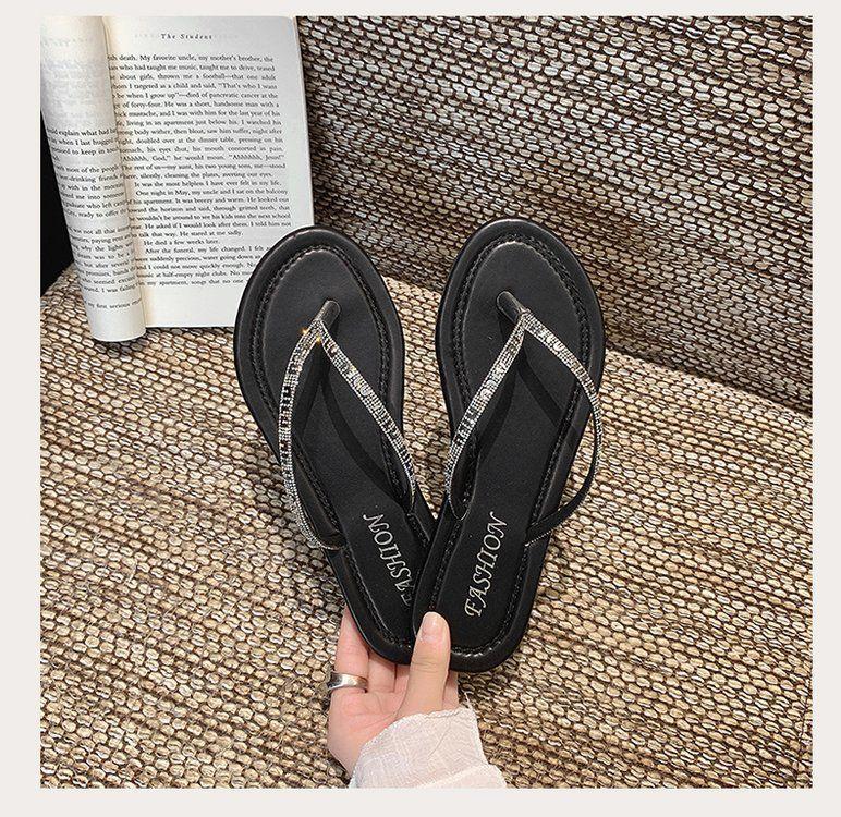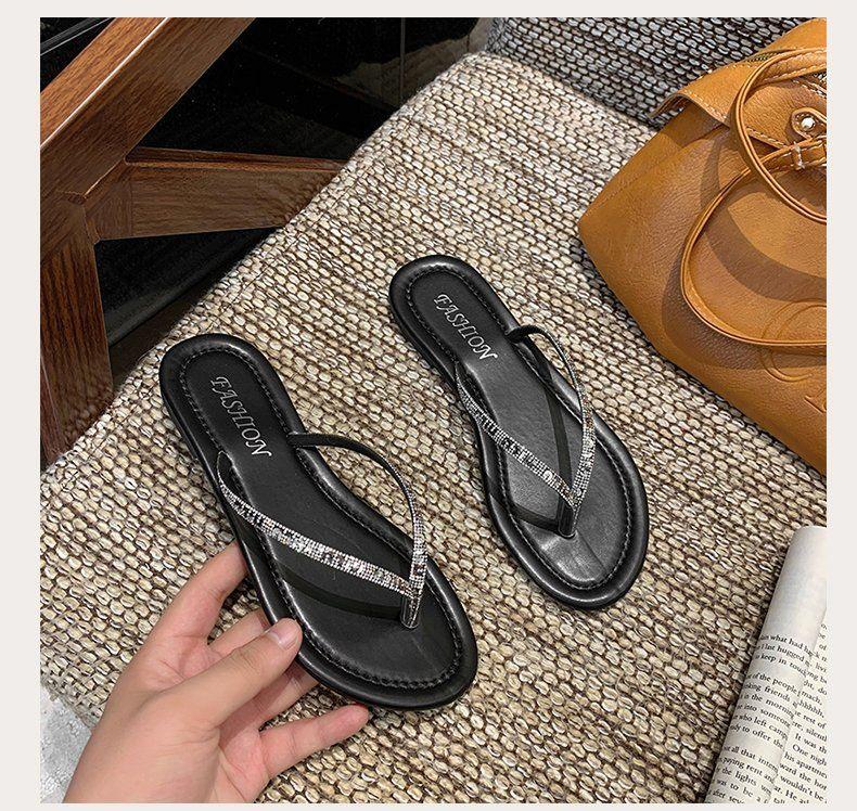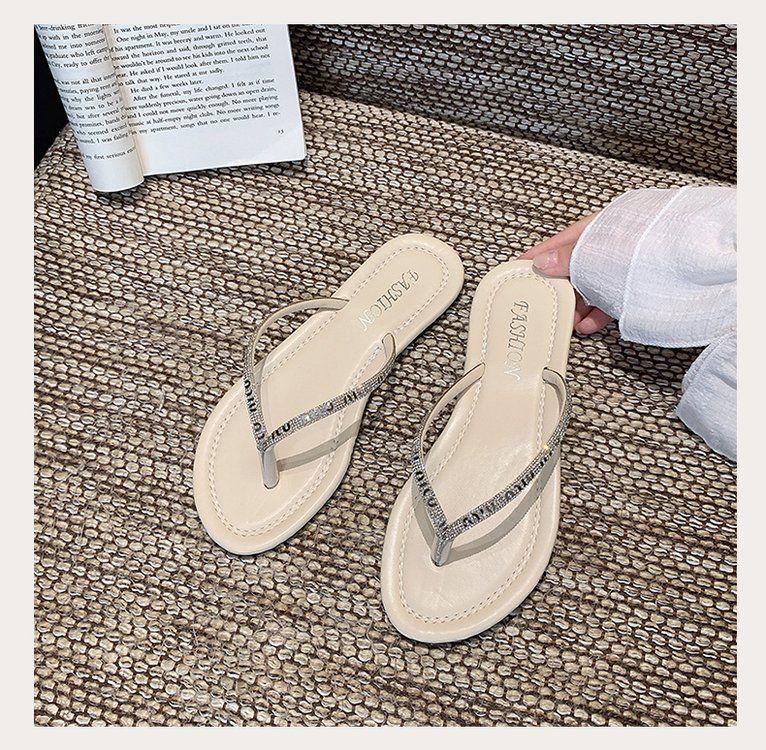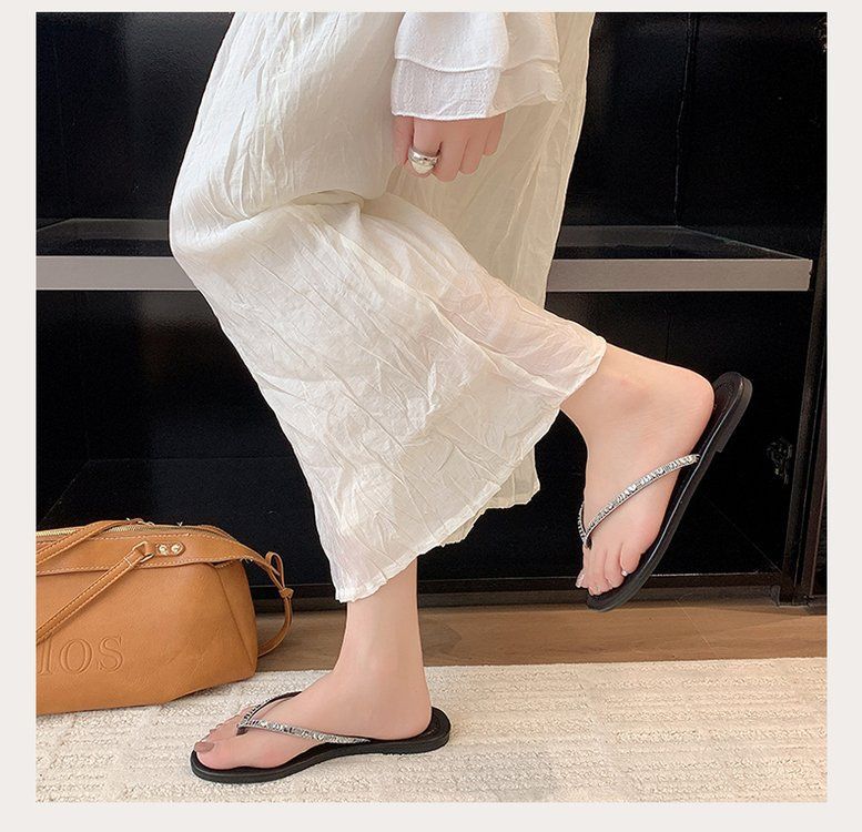 Chanclas de Pedrería para Mujer 2025 Verano Nuevo Uso Exterior Zapatillas Estilo Hada Antideslizantes Suela Plana Talla Grande Zapatos de Mujer