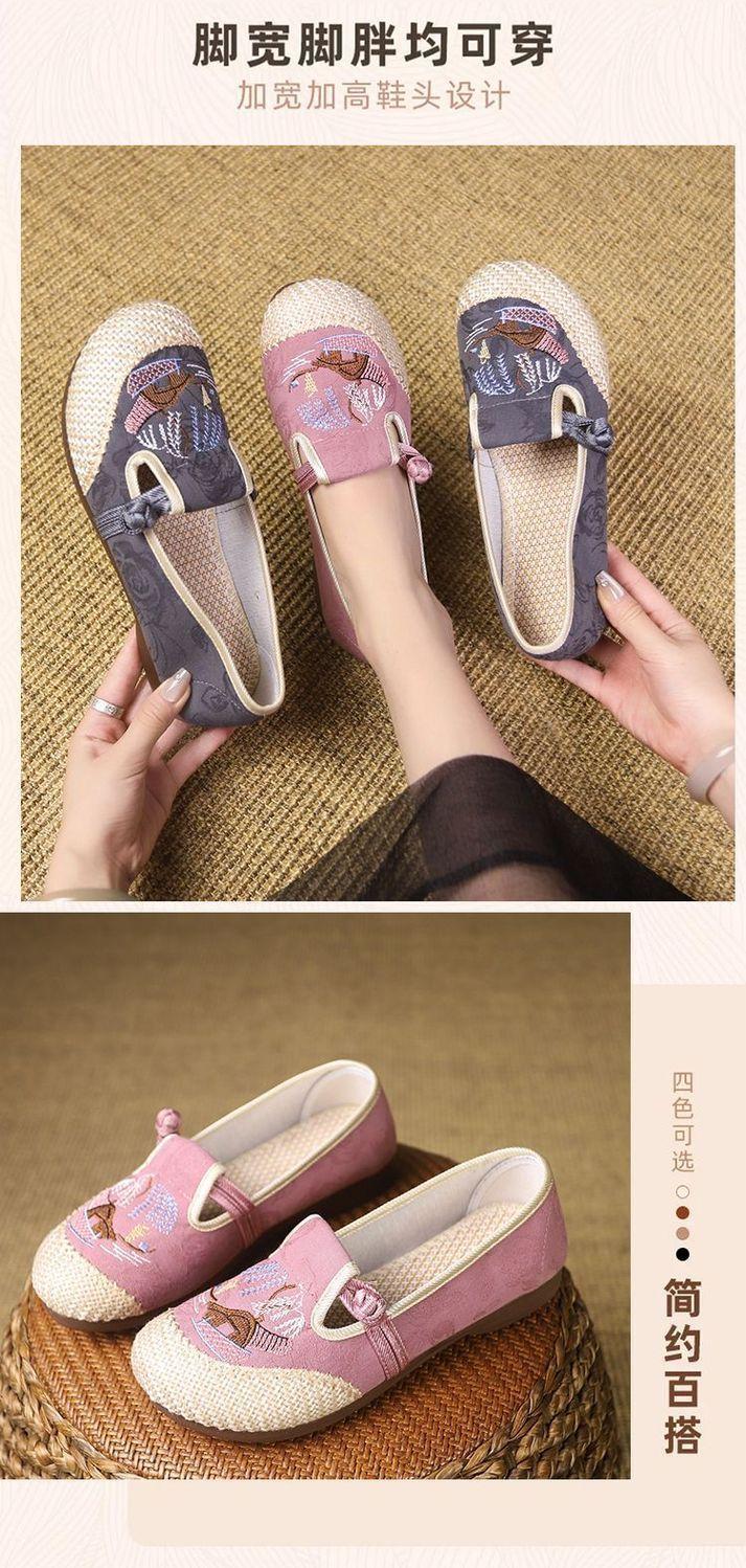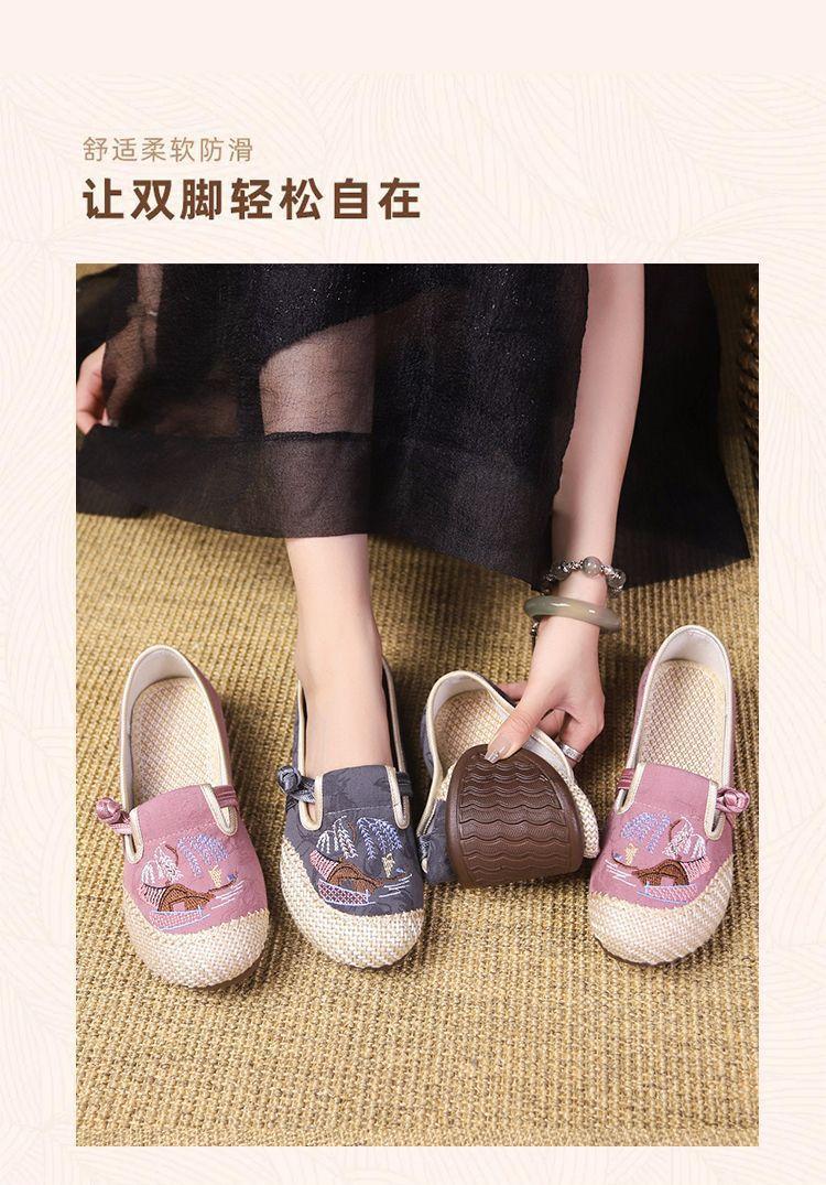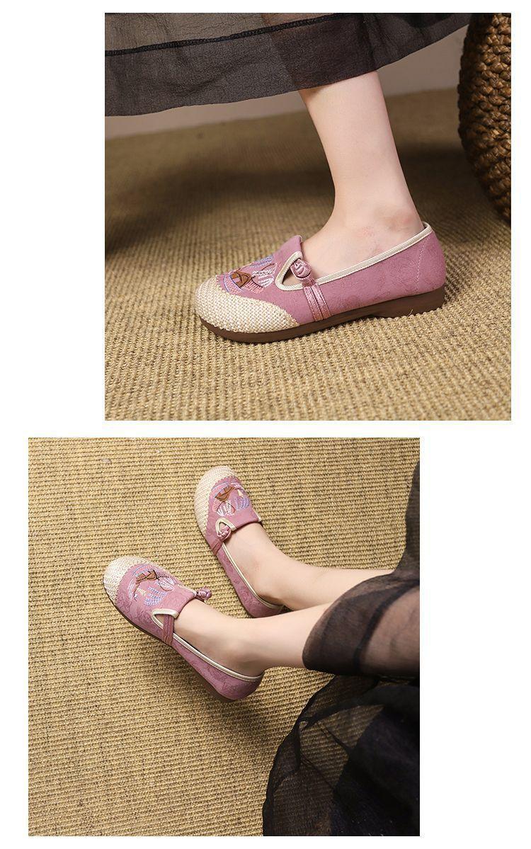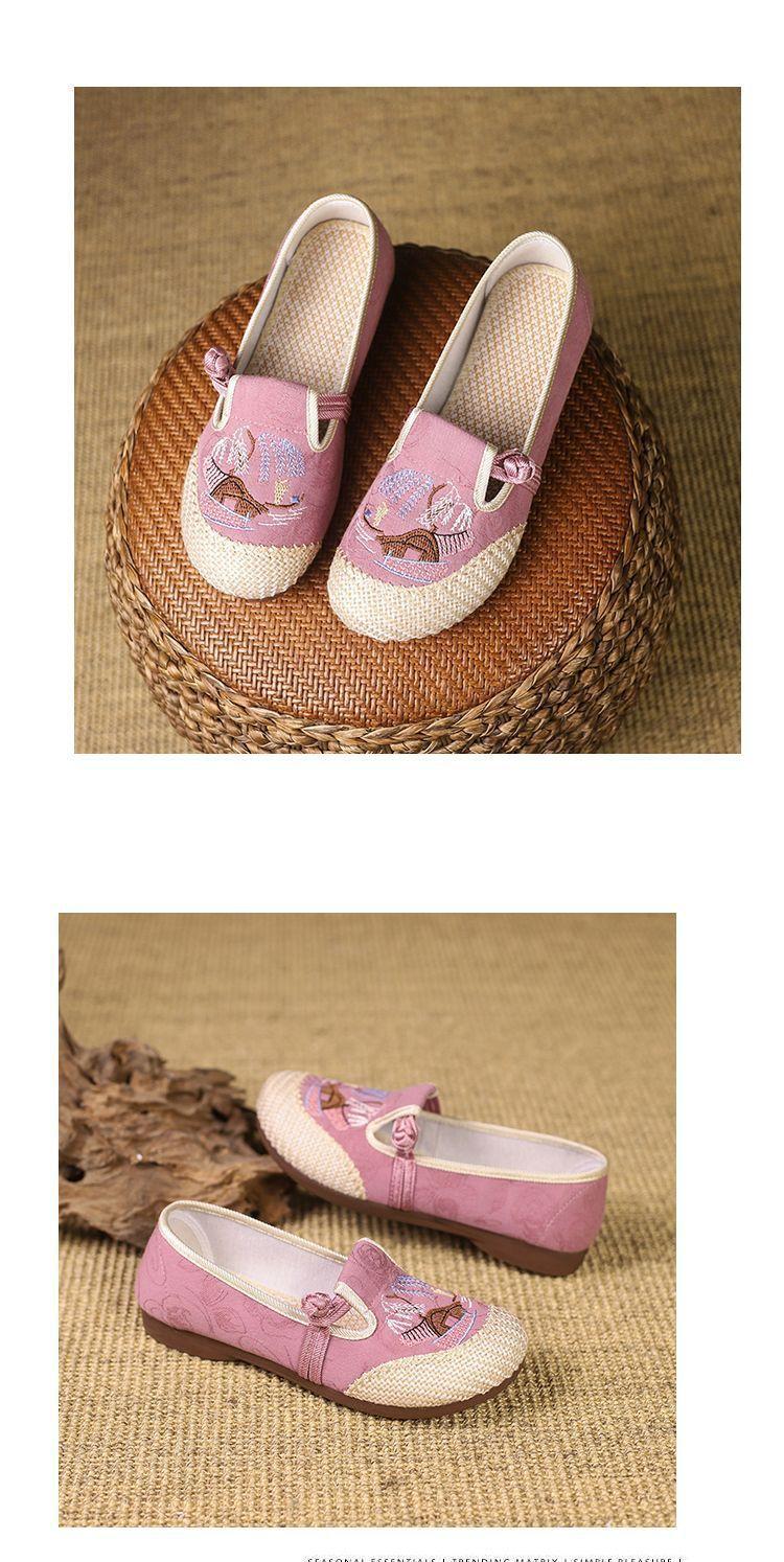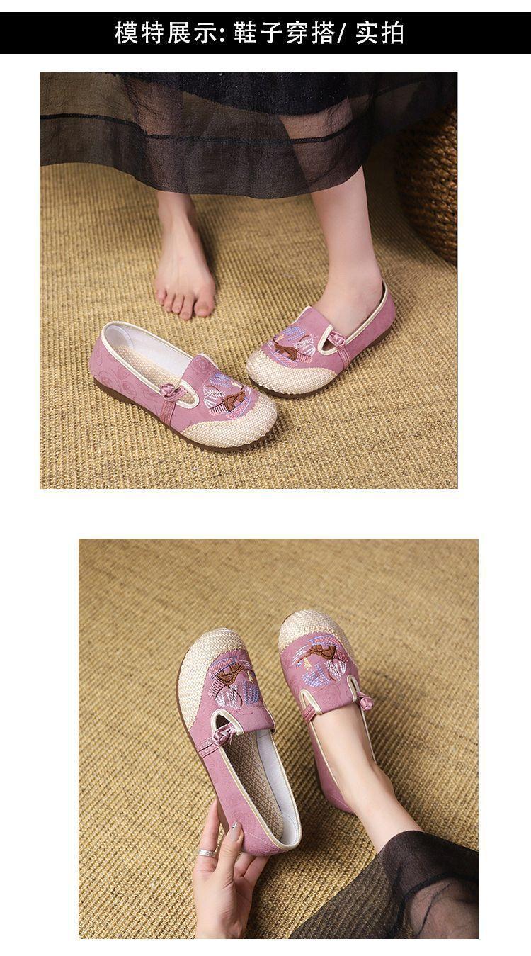 Zapatos de Tela de Pekín Antiguos Estilo Étnico Zapatos de Mujer Estilo Caliente Moda Versátil Tejidos Zapatos Individuales Suela Suave Zapatos de Dama 2025 Verano Nuevo