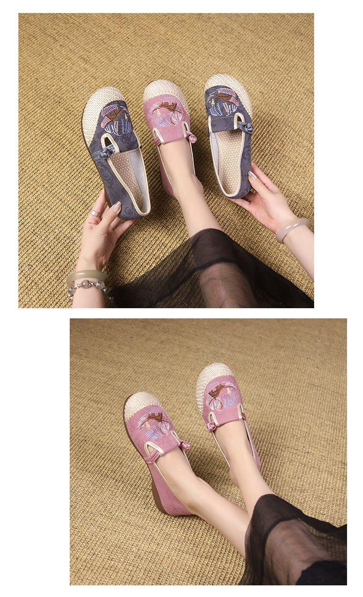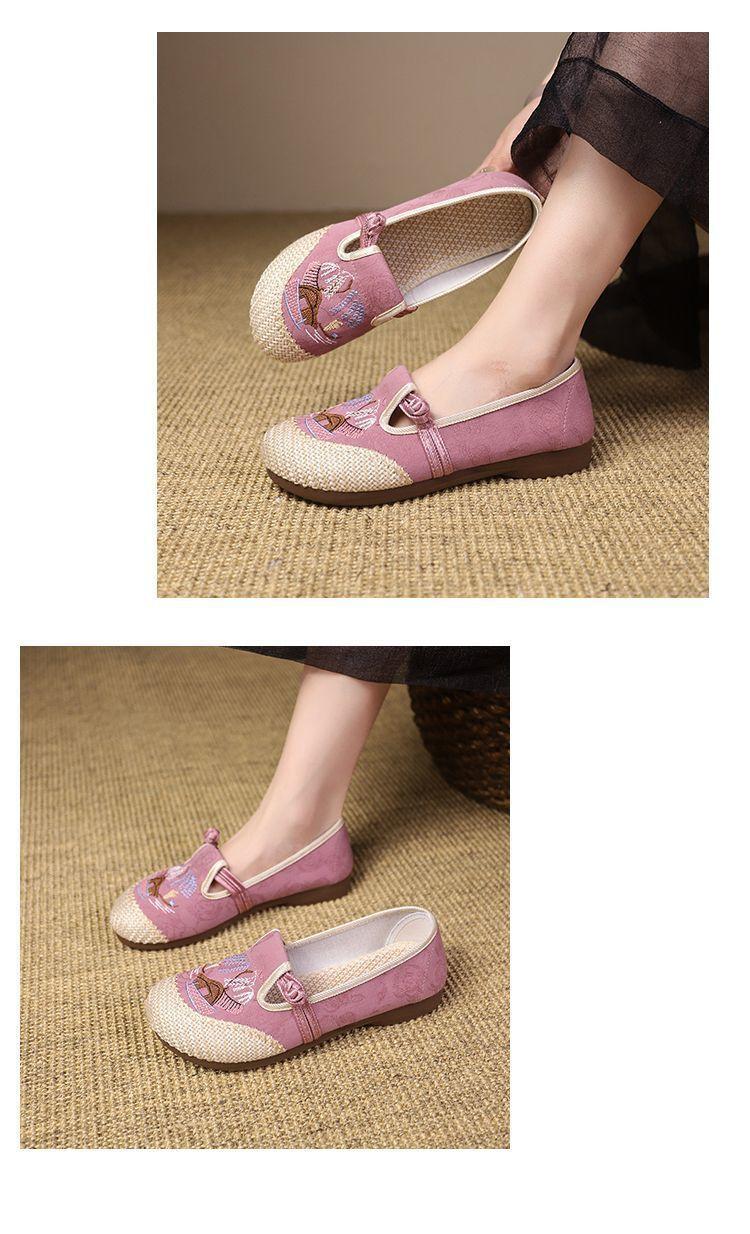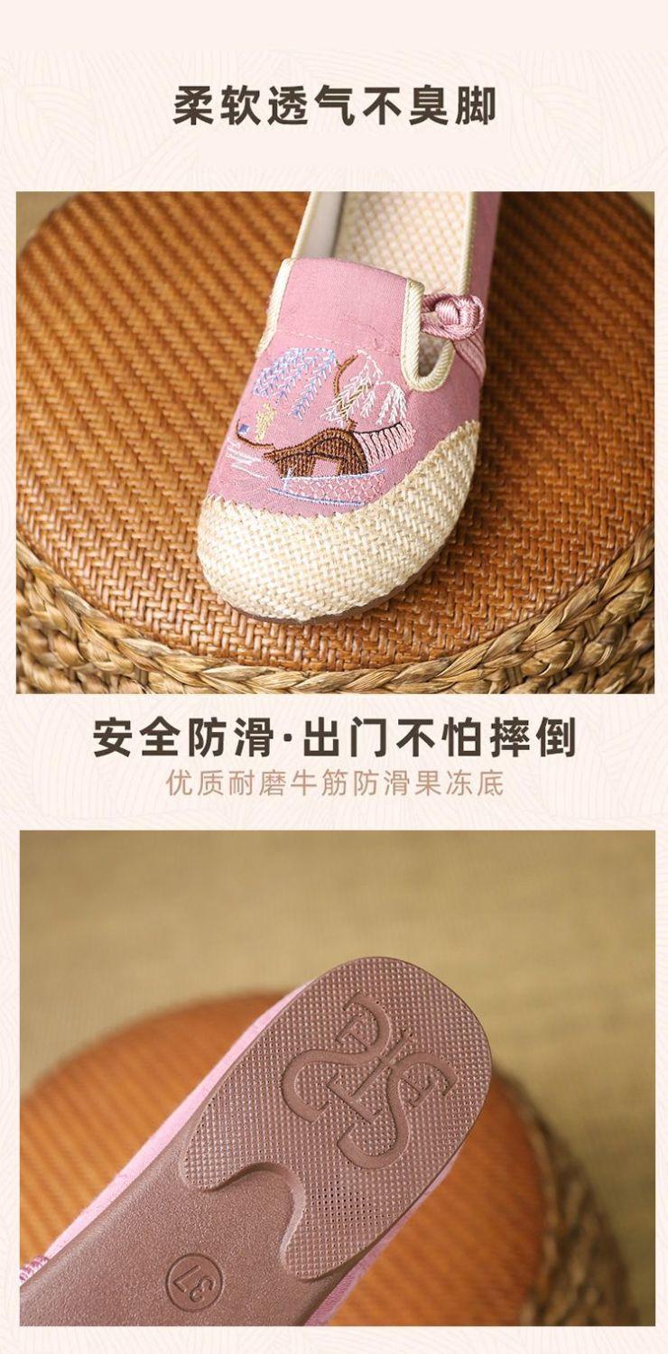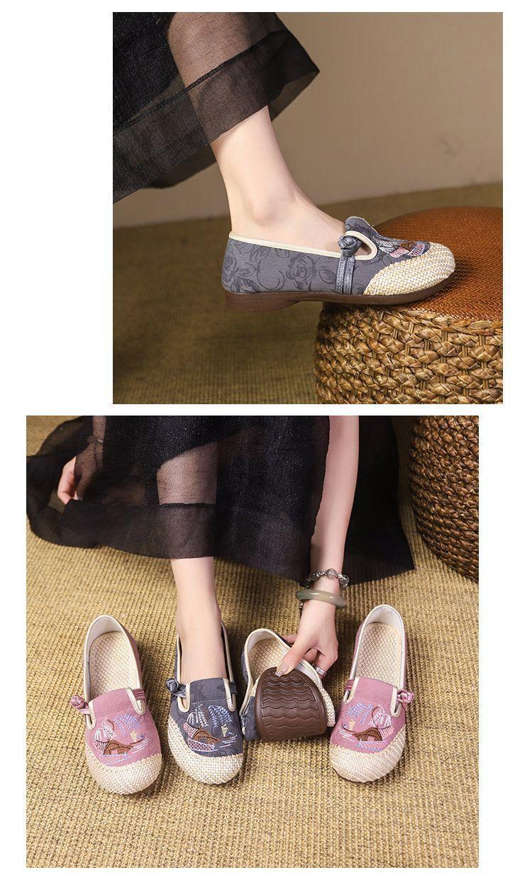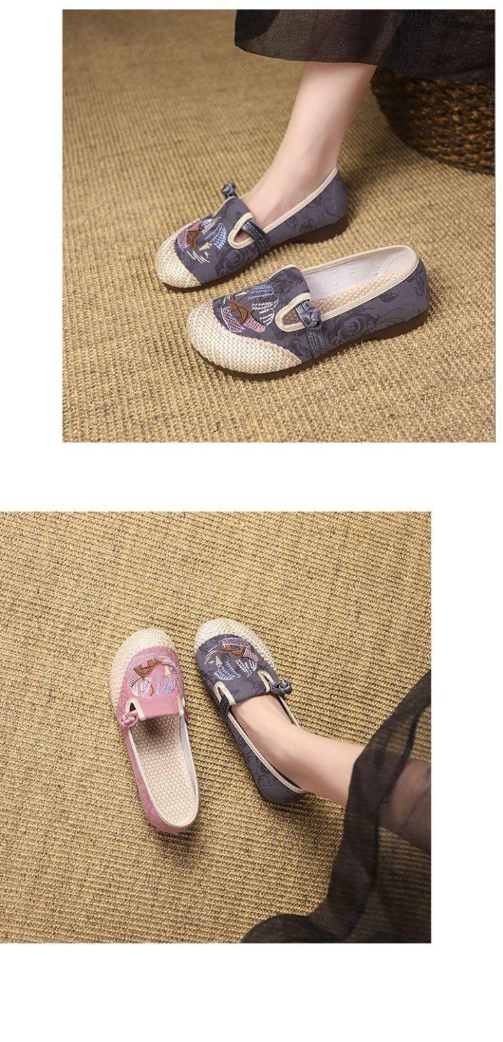 Zapatos de Tela de Pekín Antiguos Estilo Étnico Zapatos de Mujer Estilo Caliente Moda Versátil Tejidos Zapatos Individuales Suela Suave Zapatos de Dama 2025 Verano Nuevo