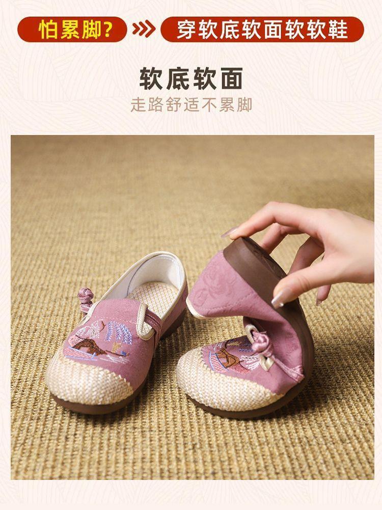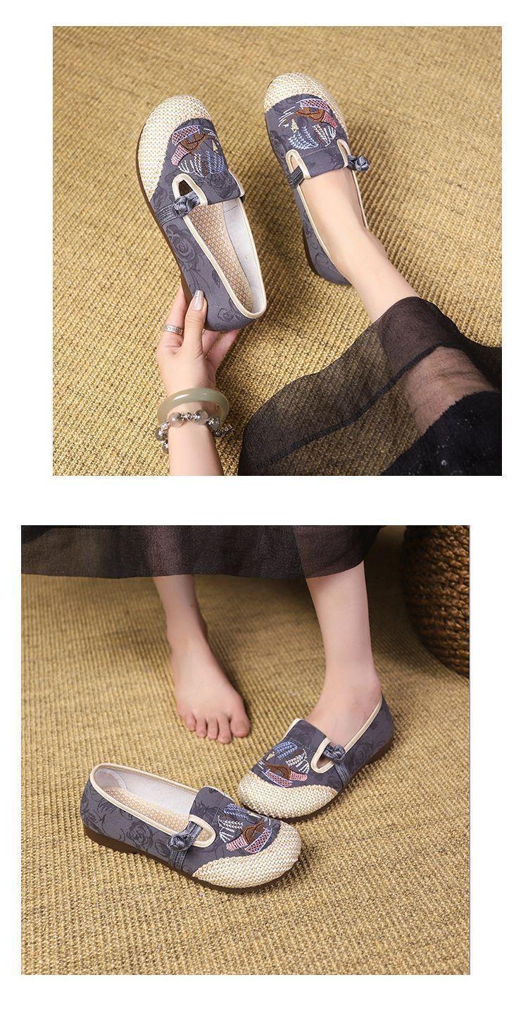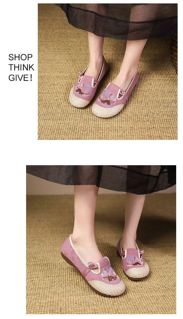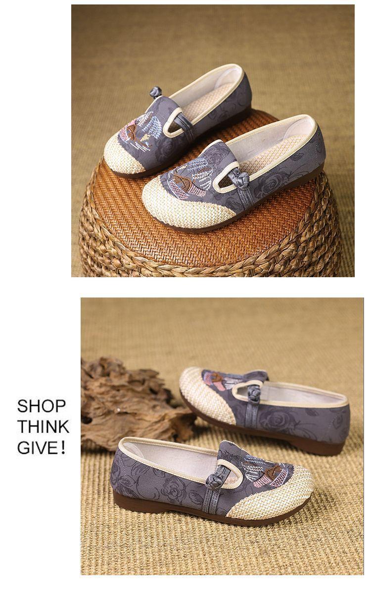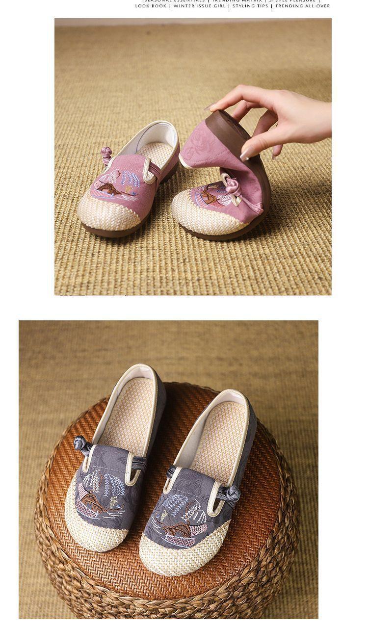 Zapatos de Tela de Pekín Antiguos Estilo Étnico Zapatos de Mujer Estilo Caliente Moda Versátil Tejidos Zapatos Individuales Suela Suave Zapatos de Dama 2025 Verano Nuevo