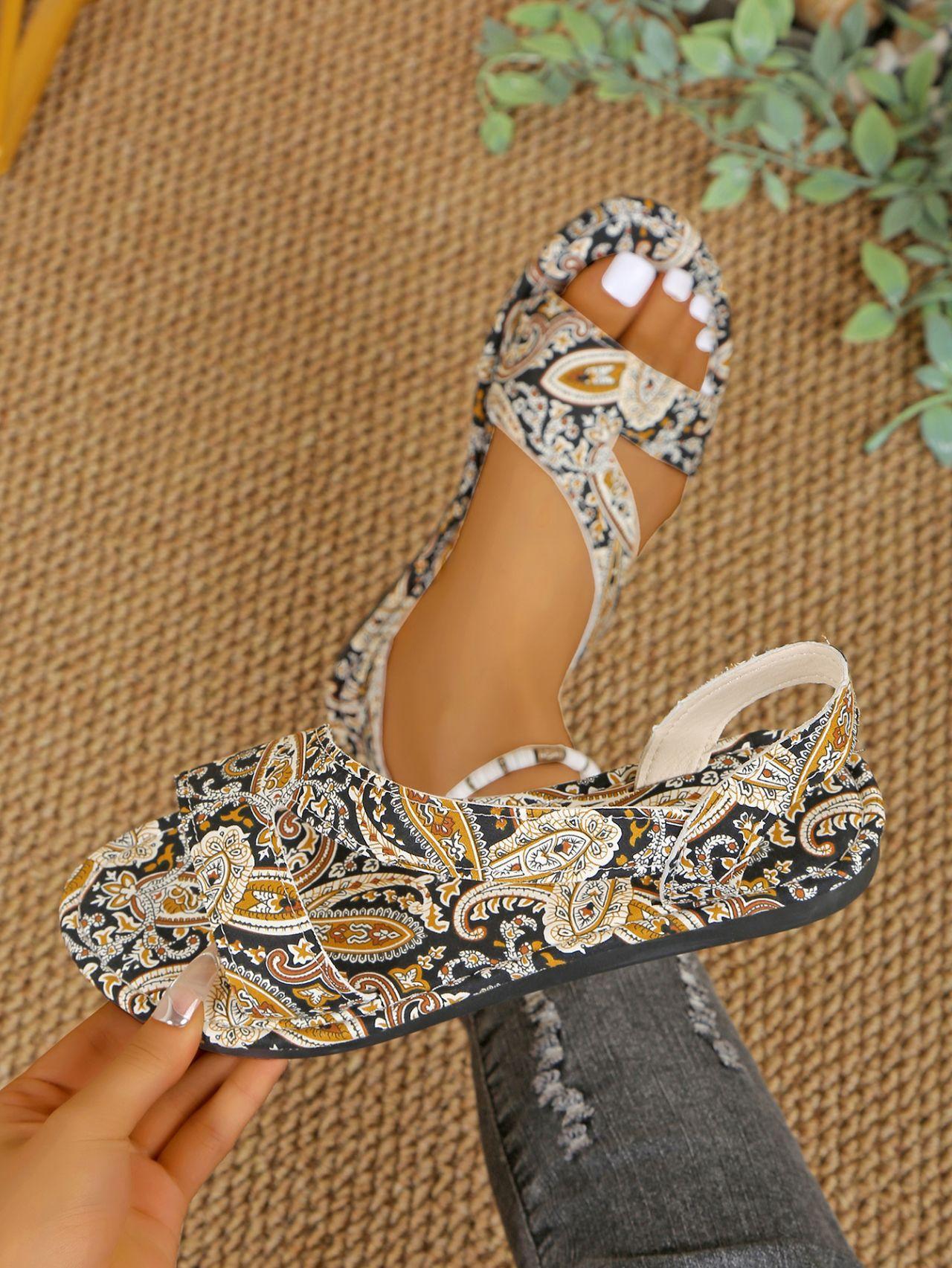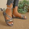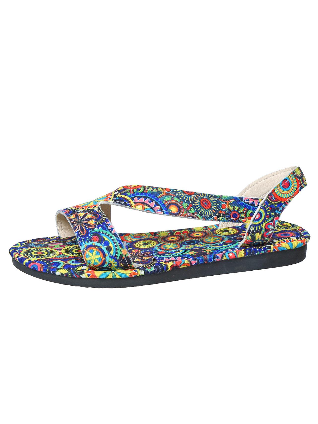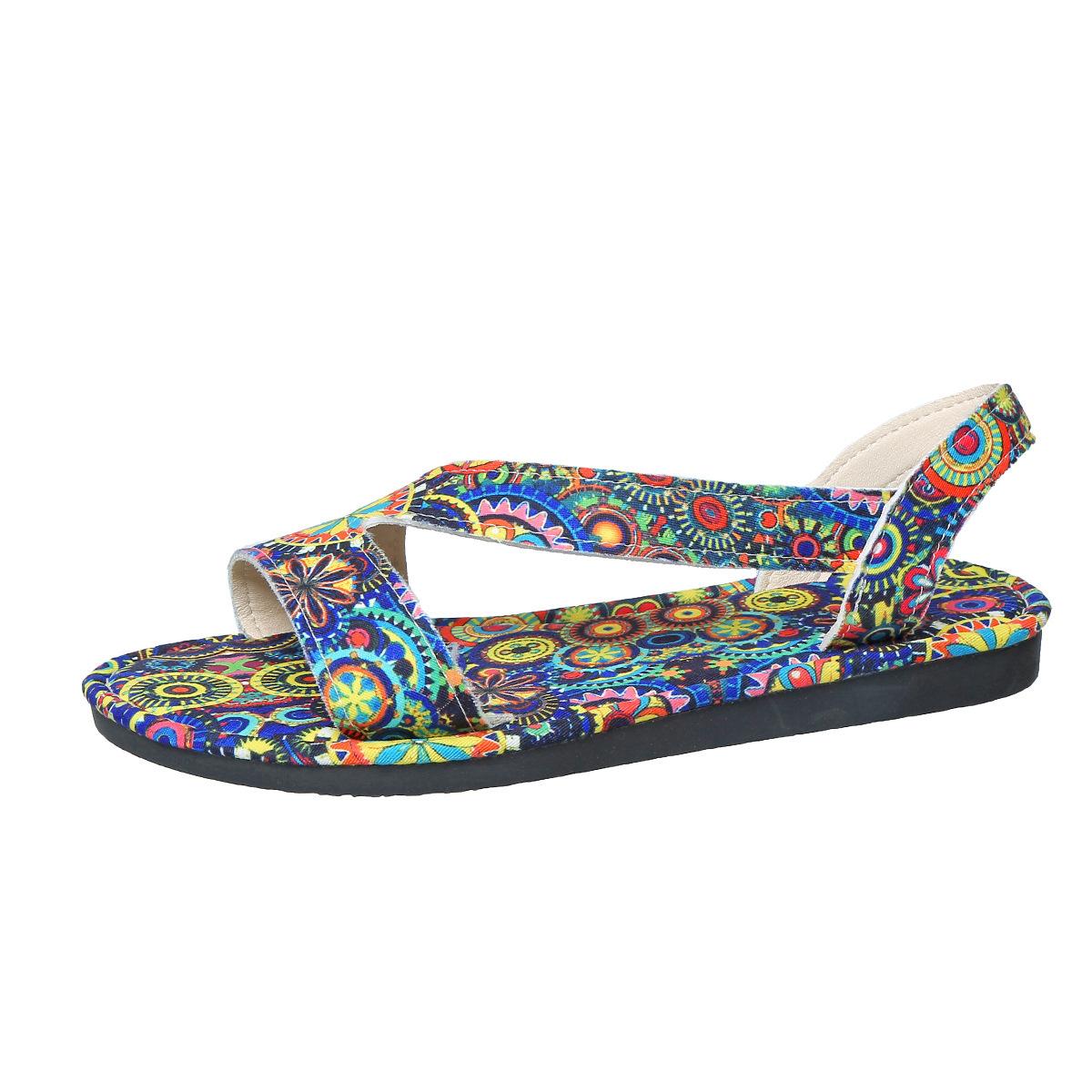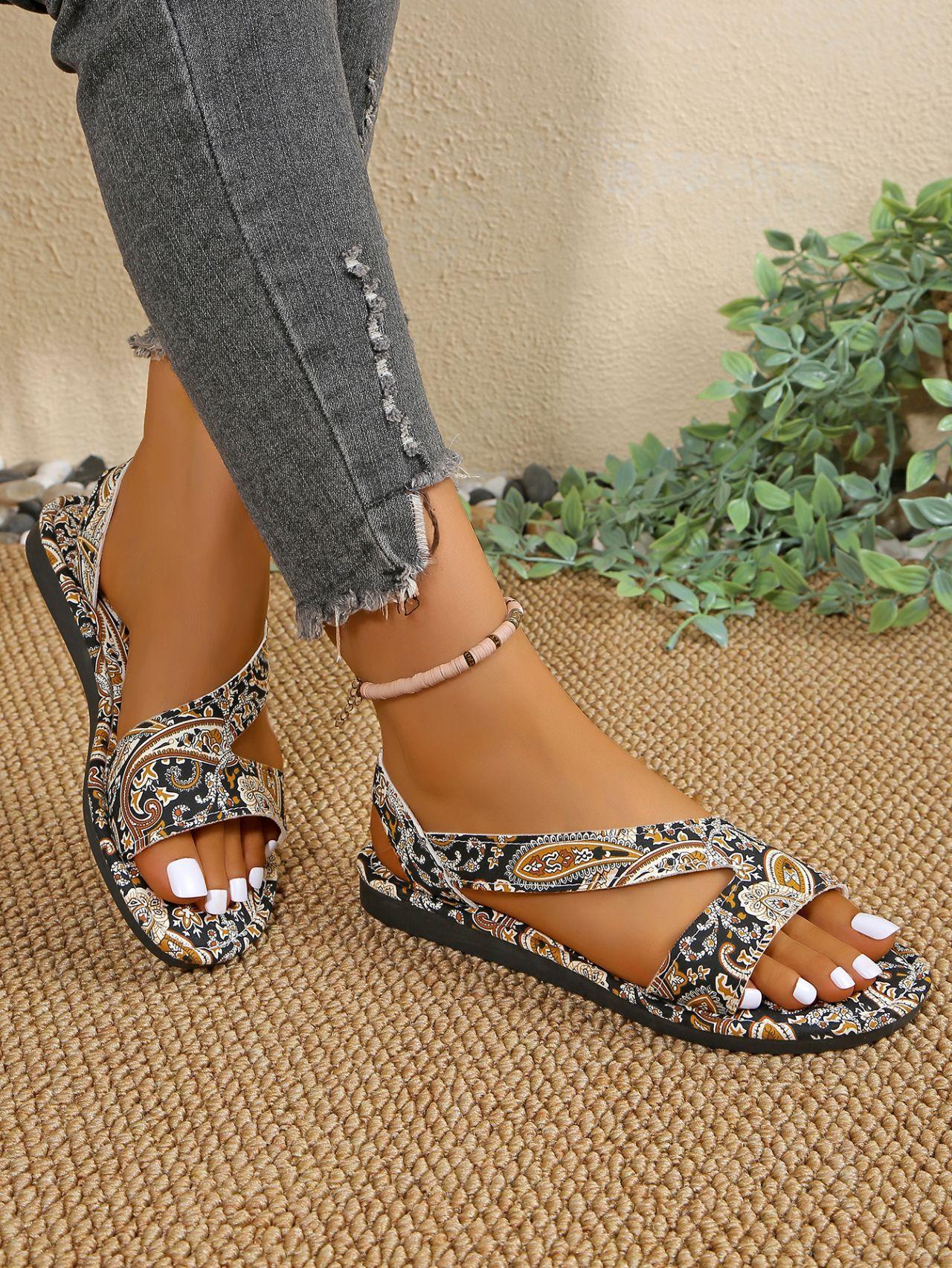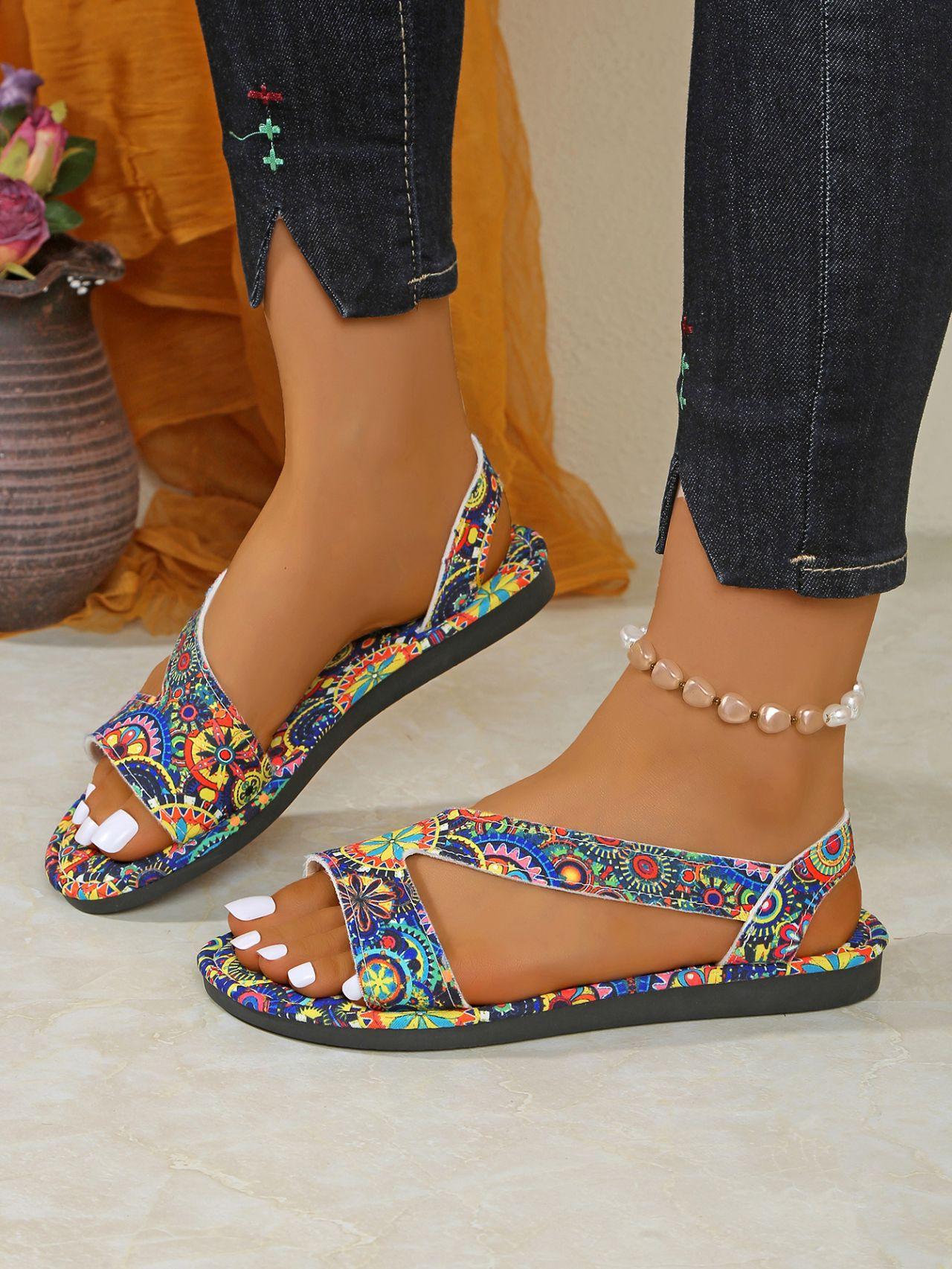 Zapatillas de Talla Grande para Mujer de Comercio Exterior 2025 Verano Nuevo Suela Plana Estampadas de Dedo Estilo Étnico Bohemio Sandalias Mujer