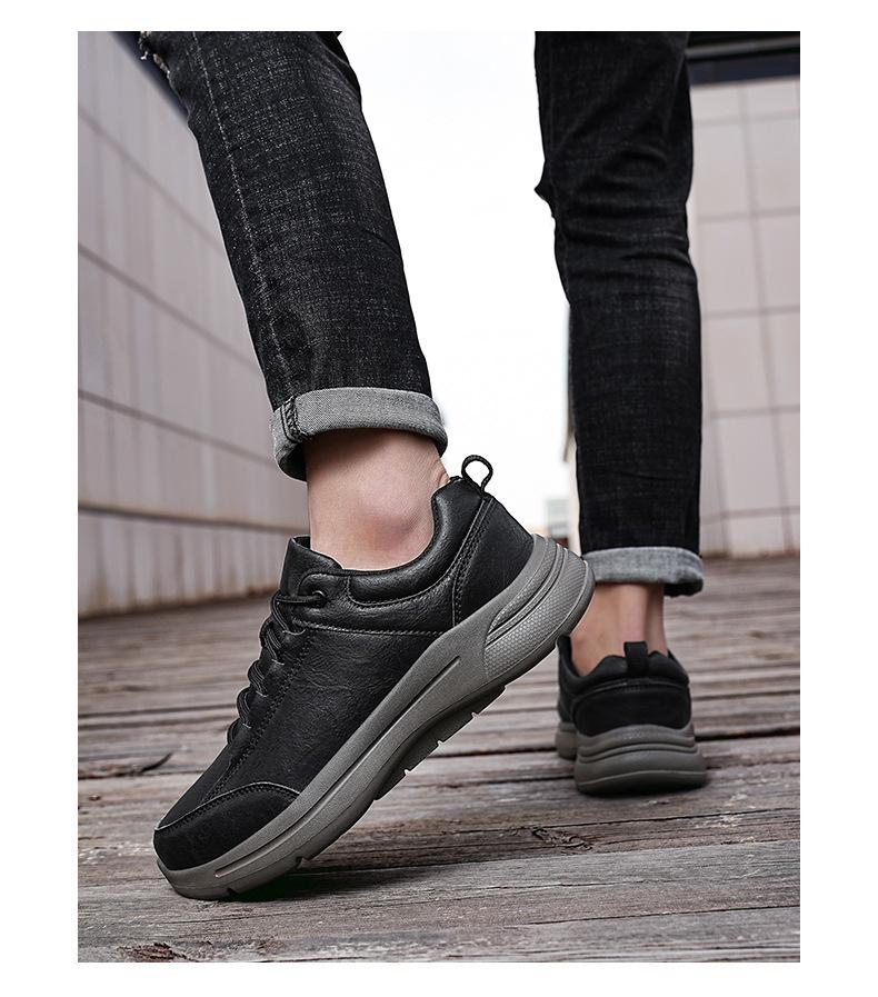 Zapatos de Hombre 2025 Otoño/Invierno Nuevo Montañismo Punta Redonda Corte Bajo Moda Británica Cuero Zapatos Casuales Deportivos de Hombre