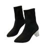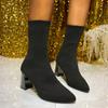 Otoño/Invierno 2025 Nuevos Botines Negros de Media Caña con Punta Afilada y Tacón Alto Adelgazantes Botines Cortos Flyknit para Mujer con Tacón Chunky Elásticos