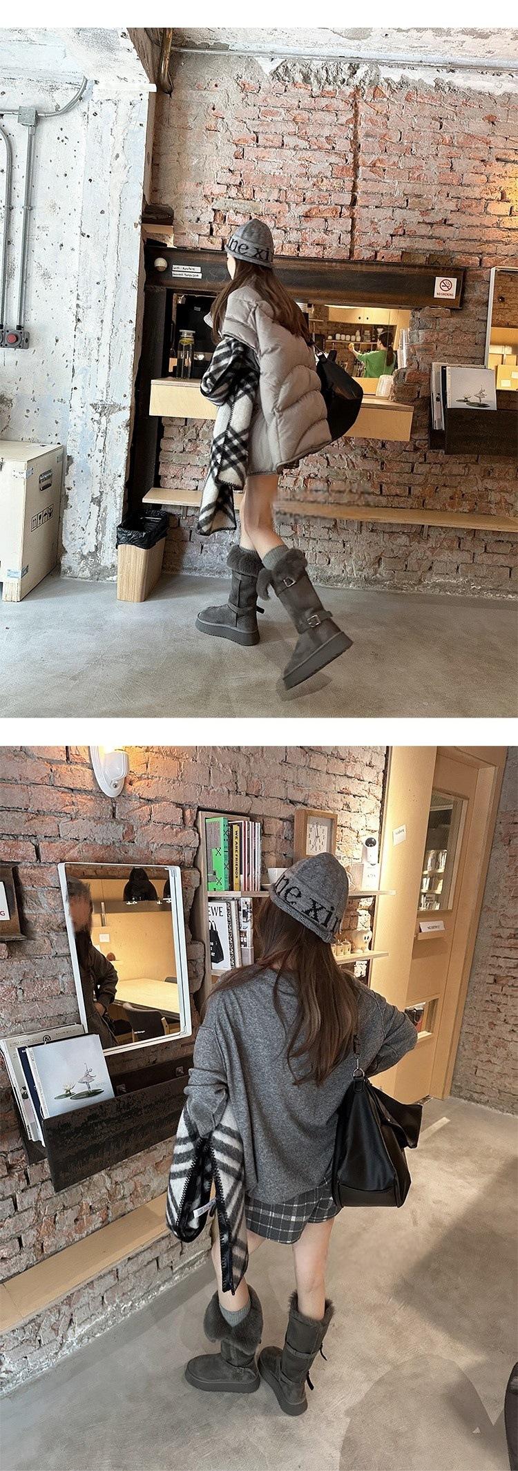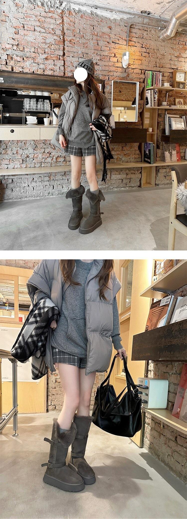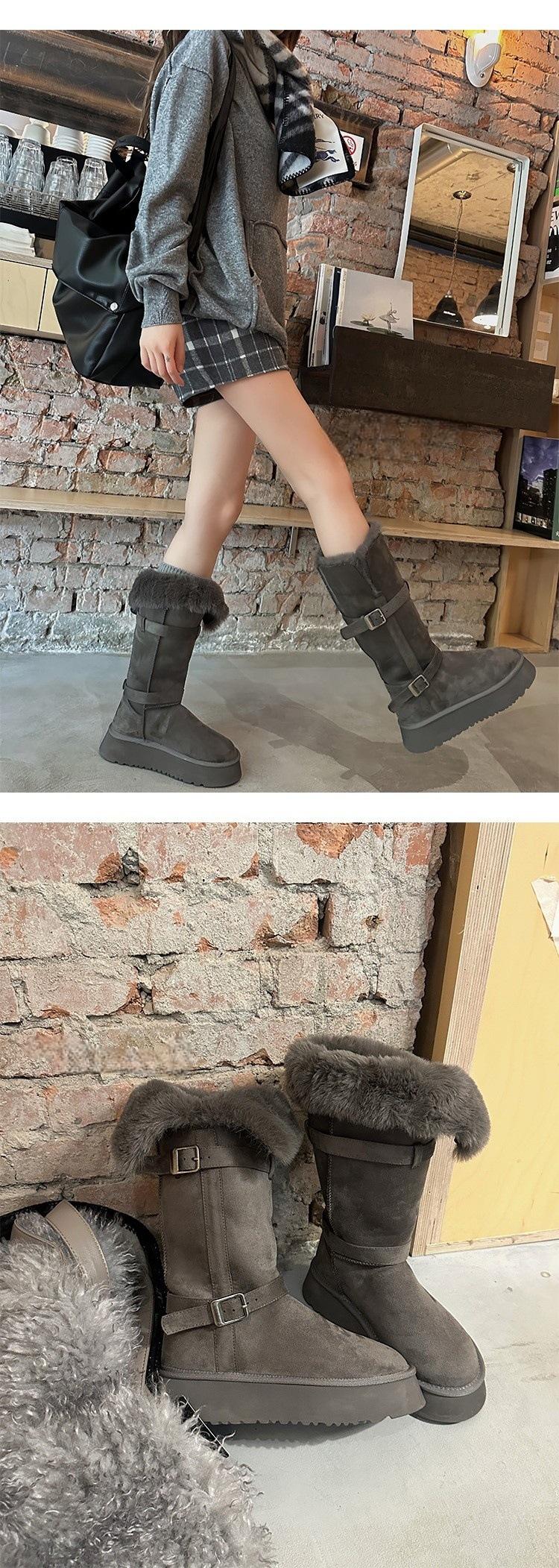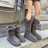 Botas de nieve grises para mujer 2024 invierno nuevo suela gruesa realzada más terciopelo engrosado tubo largo zapatos de algodón para nieve