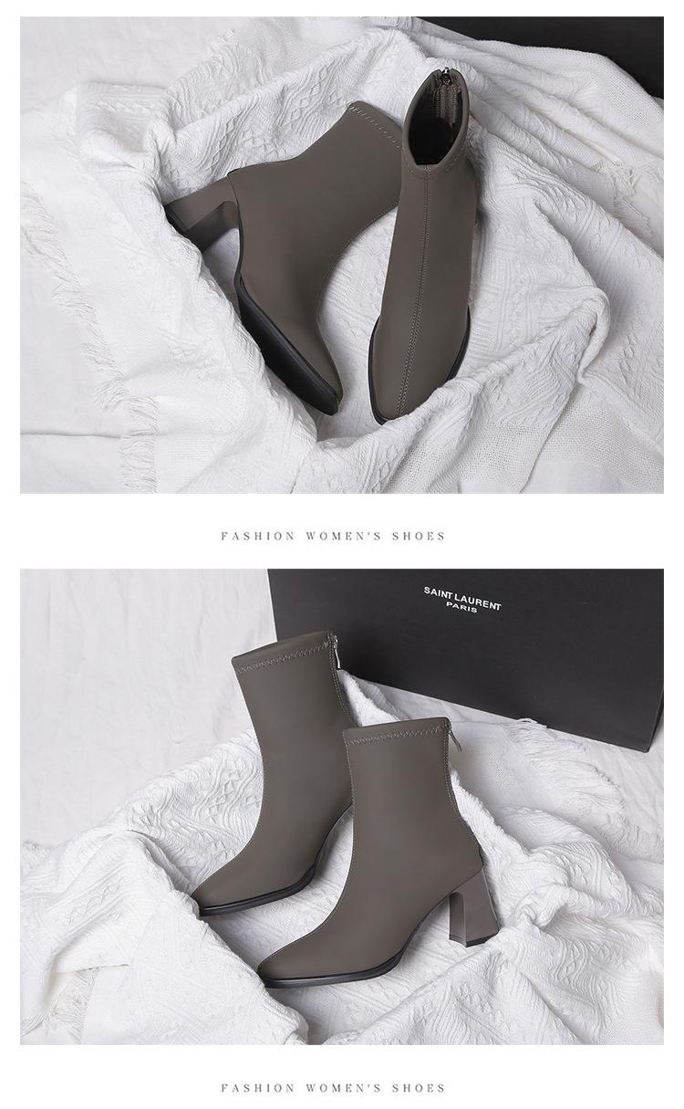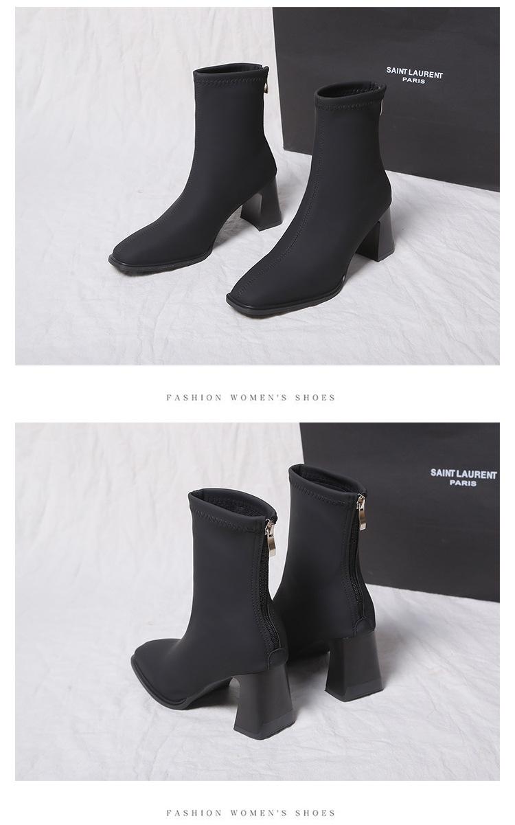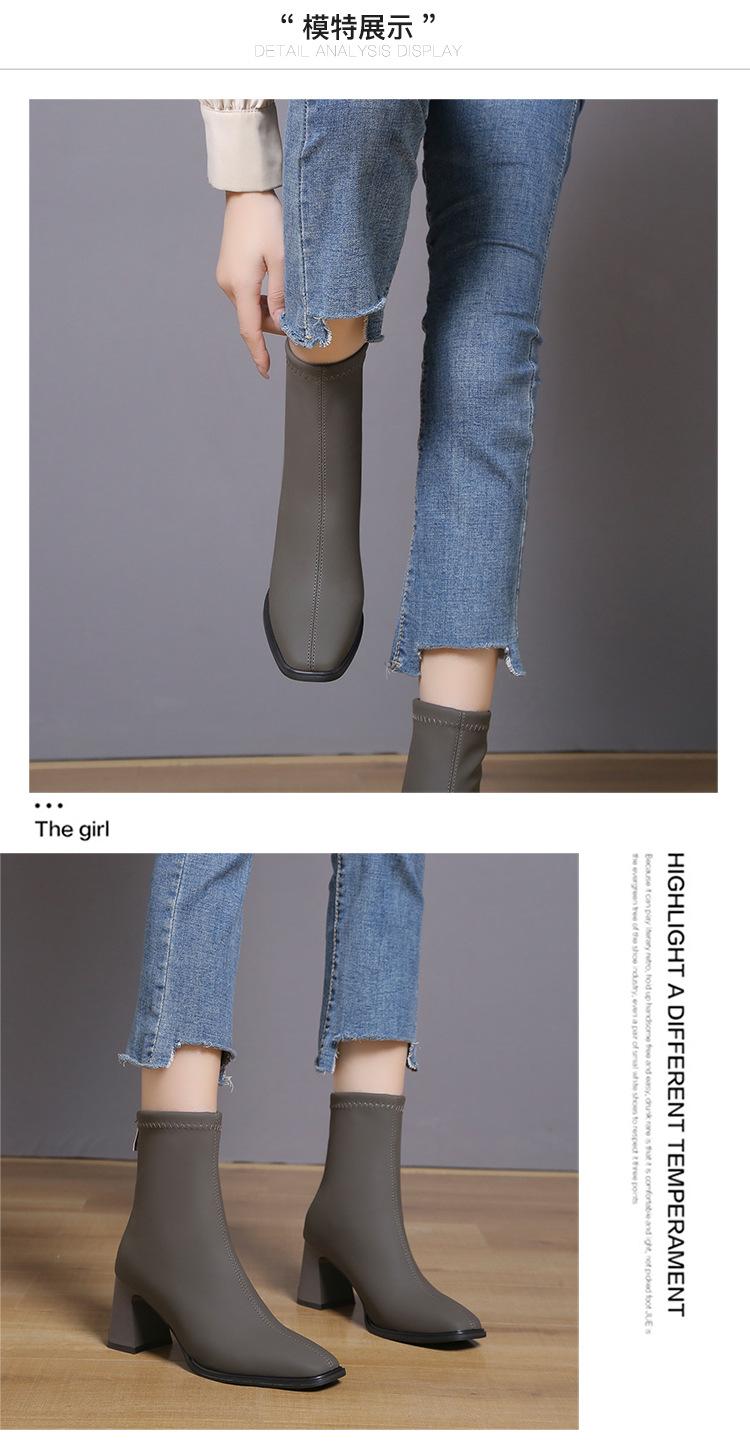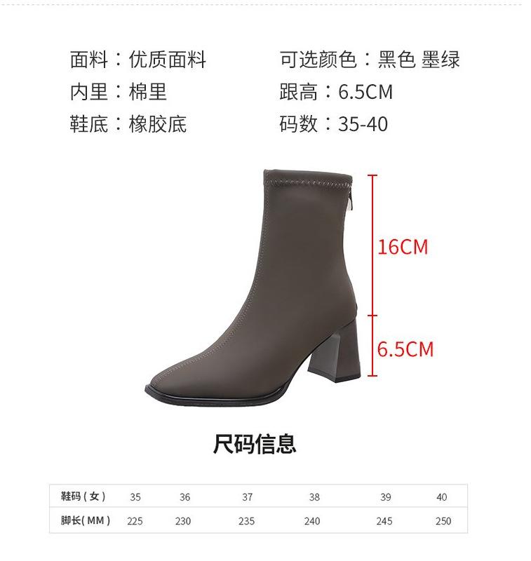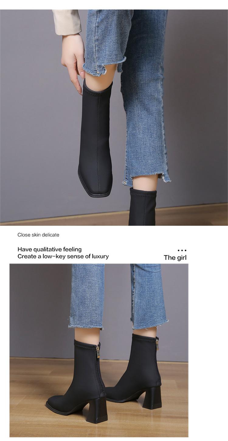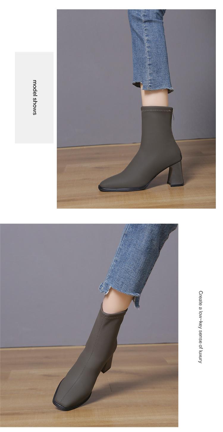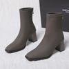 Verano 2025 Nuevas Botas de Media Caña para Mujer de Tacón Alto y Punta Cuadrada, Estilo Británico, Suela Blanda de PU, para Negocios, para Ir al Trabajo, Botas Versátiles