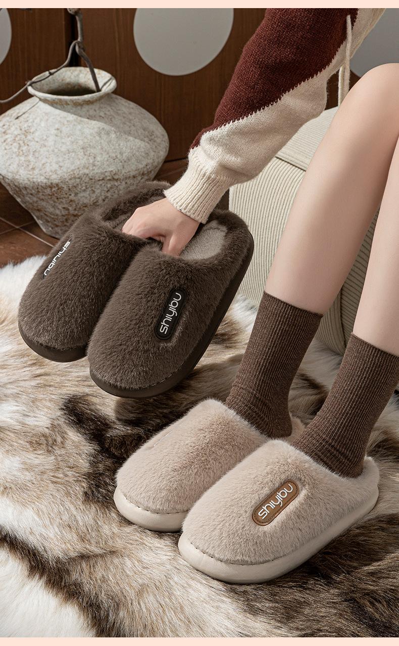 Pantuflas de algodón con sensación de pisar mierda para mujer, otoño e invierno, nuevas, antideslizantes, cálidas para el hogar, para interiores, silenciosas, peludas, de felpa, de algodón para hombre