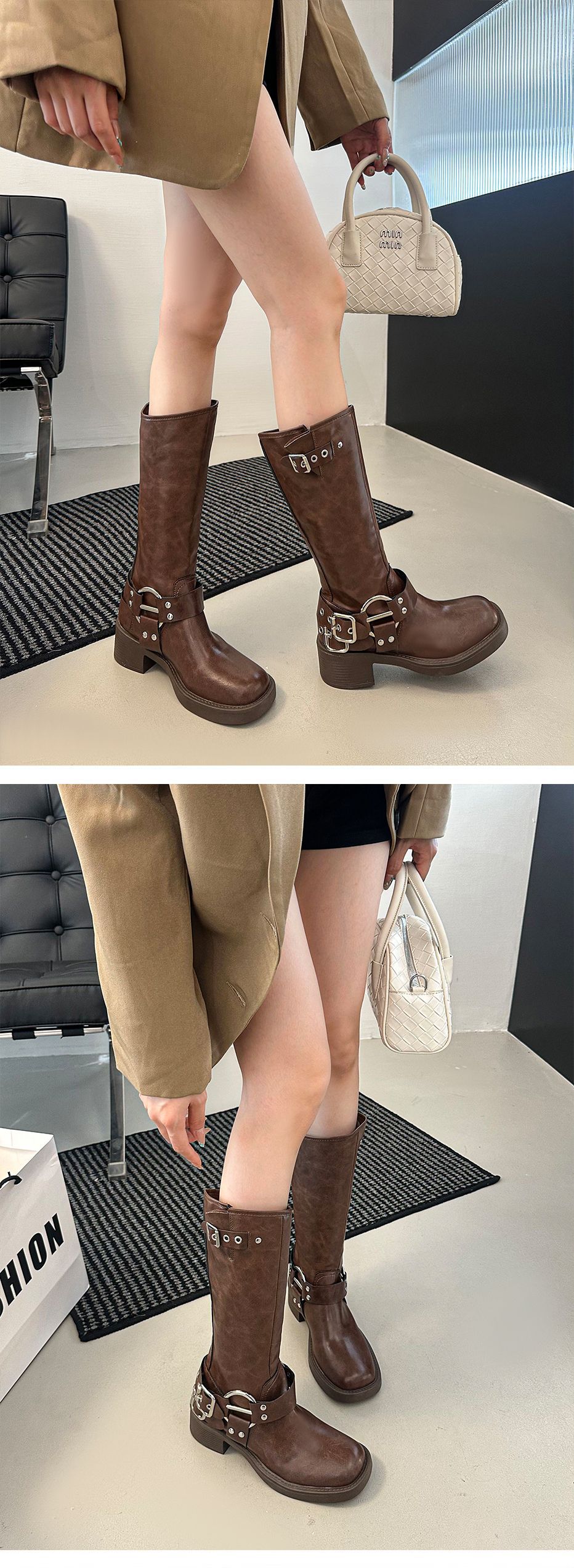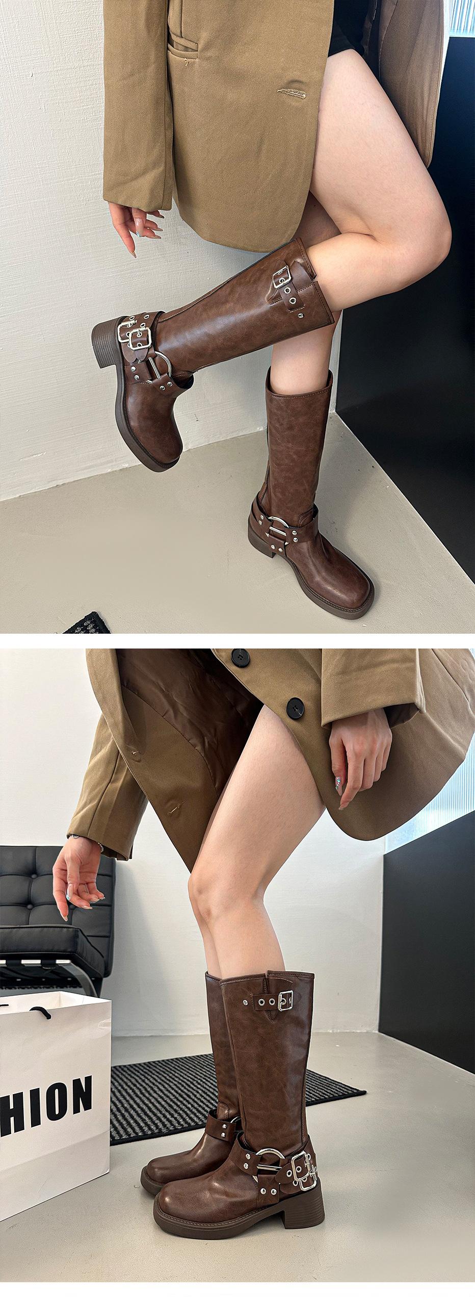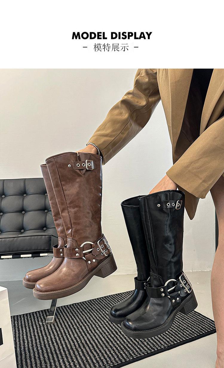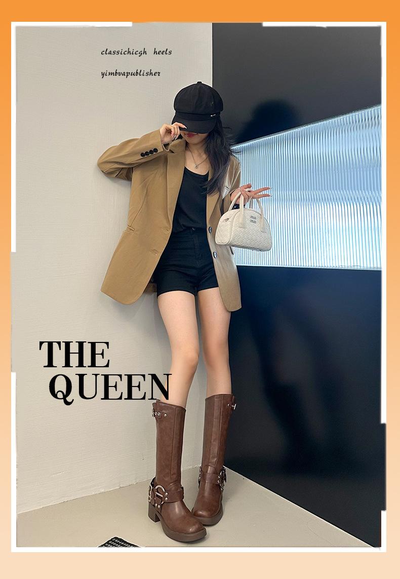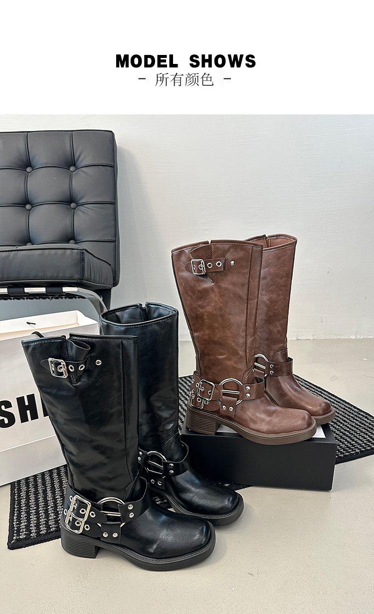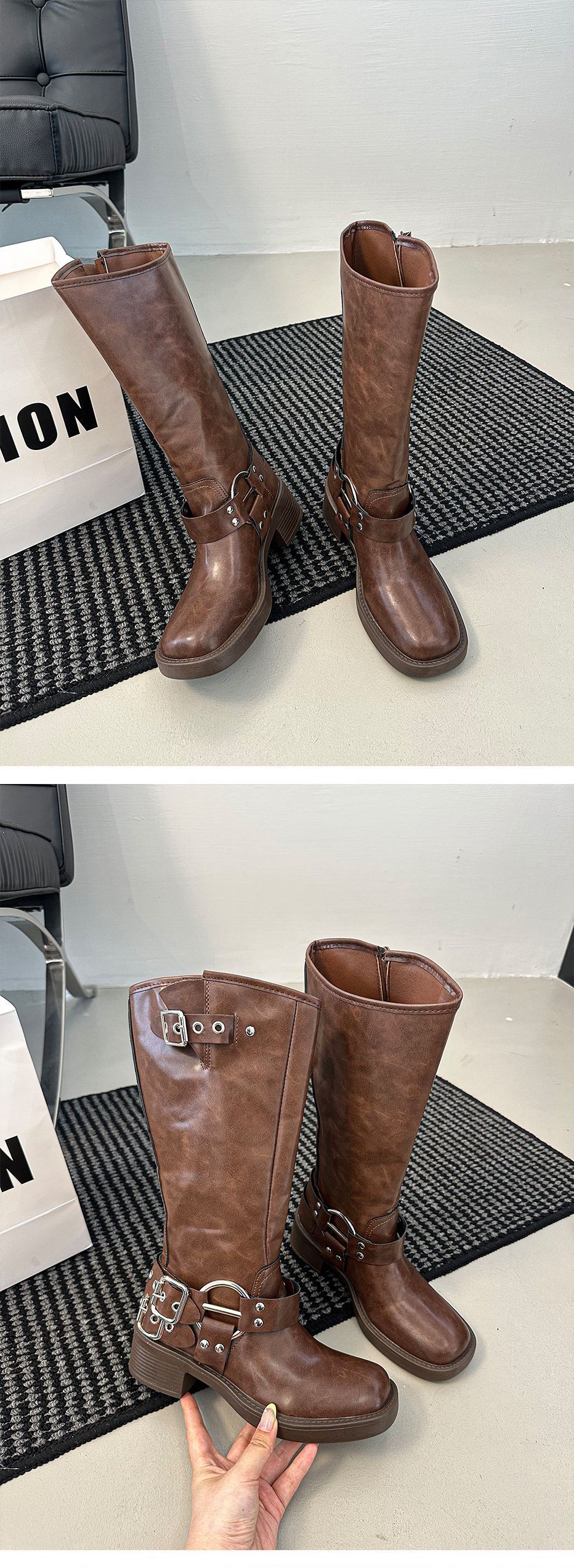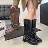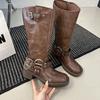 Botas altas hasta el muslo marrones de tacón grueso para mujer otoño 2025 nuevas estilo vaquero occidental británico caña alta botas largas