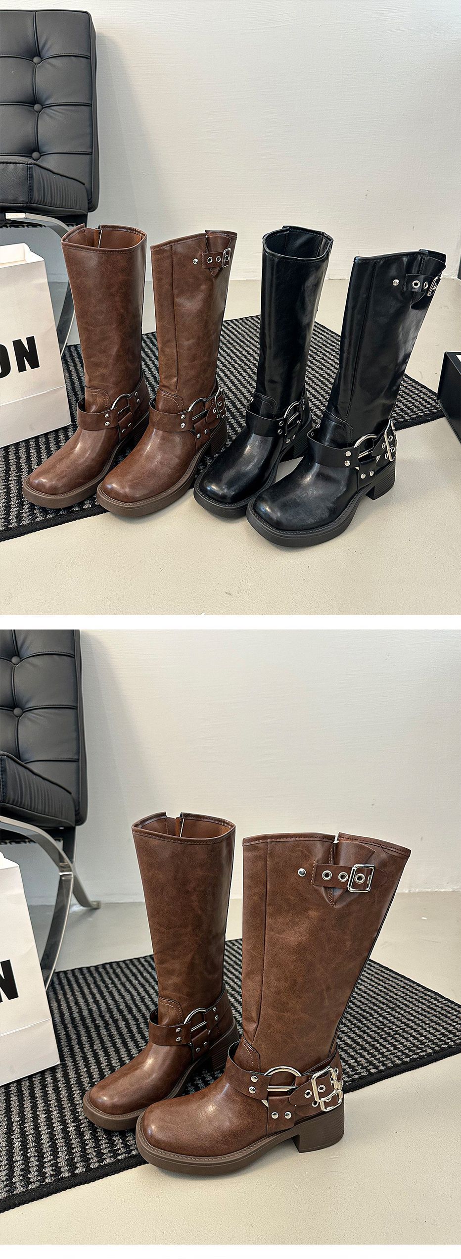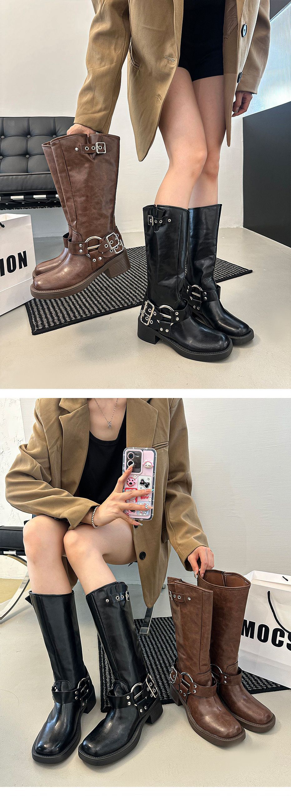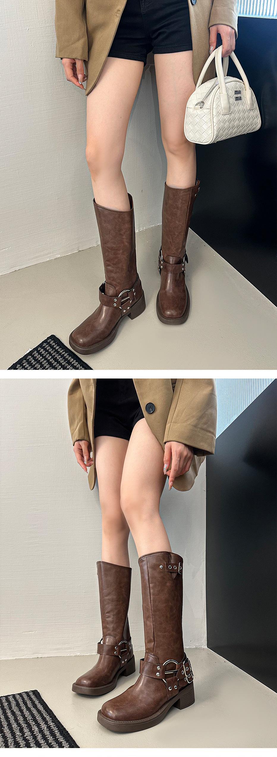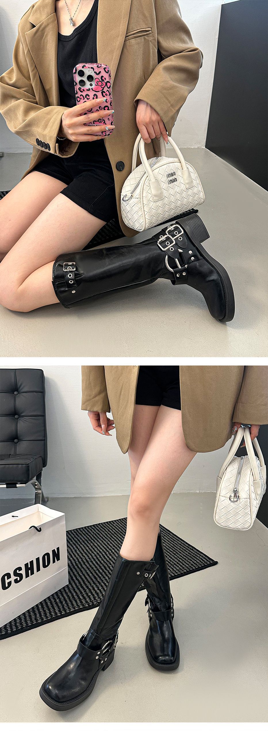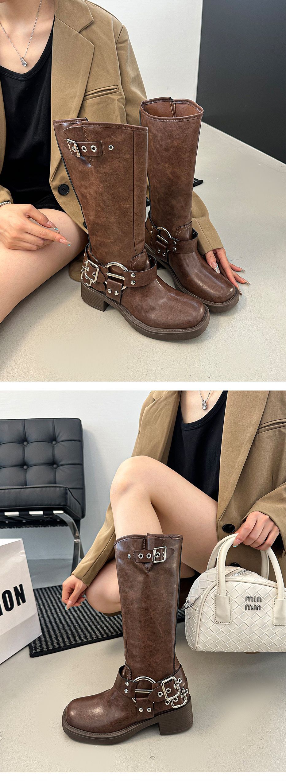 Botas altas hasta el muslo marrones de tacón grueso para mujer otoño 2025 nuevas estilo vaquero occidental británico caña alta botas largas
