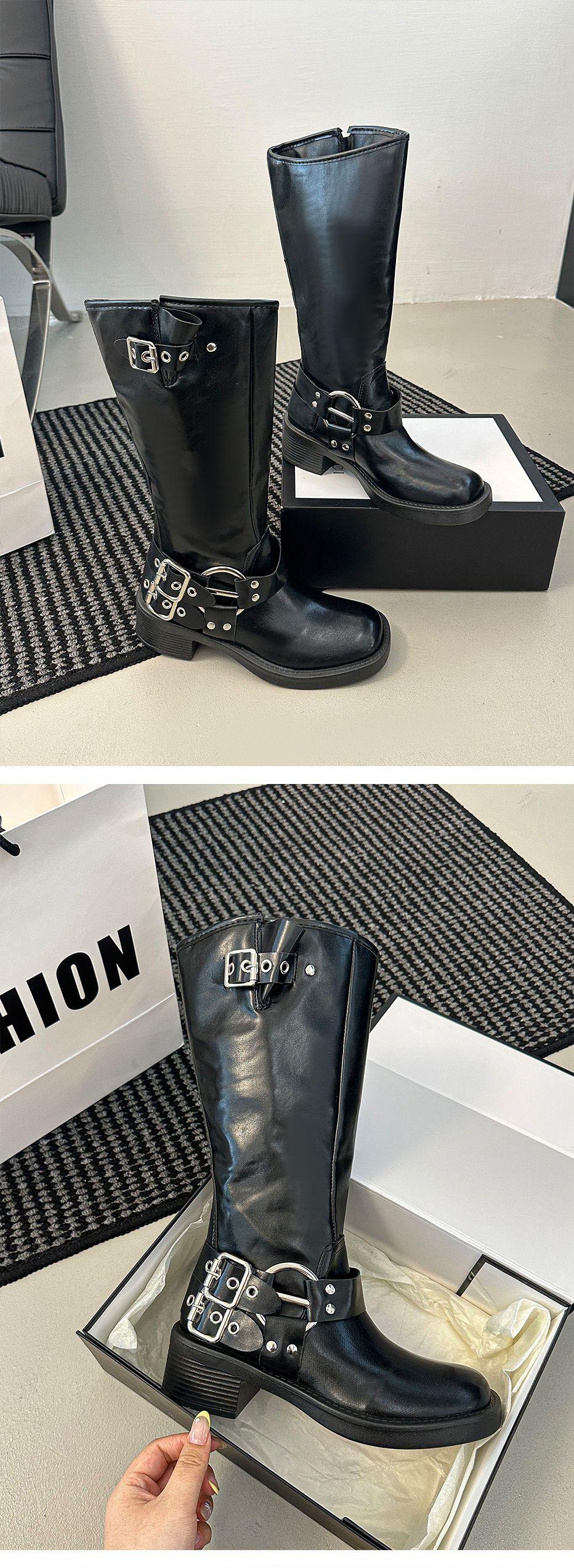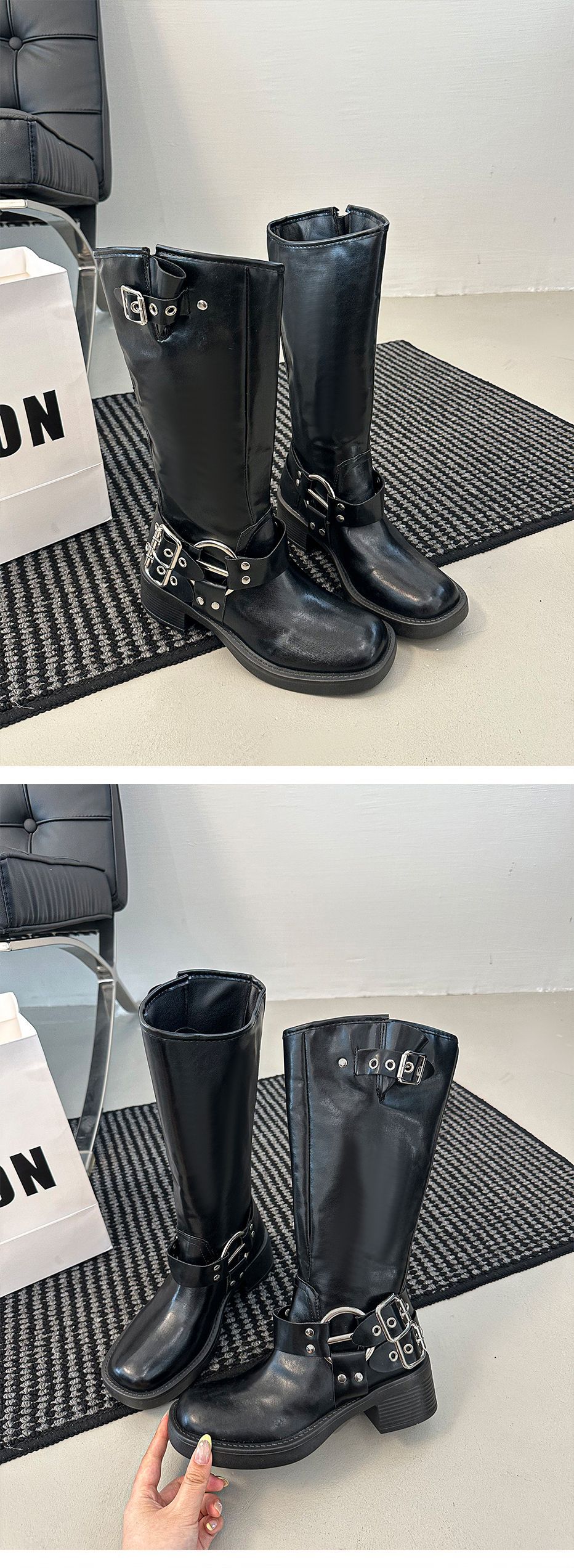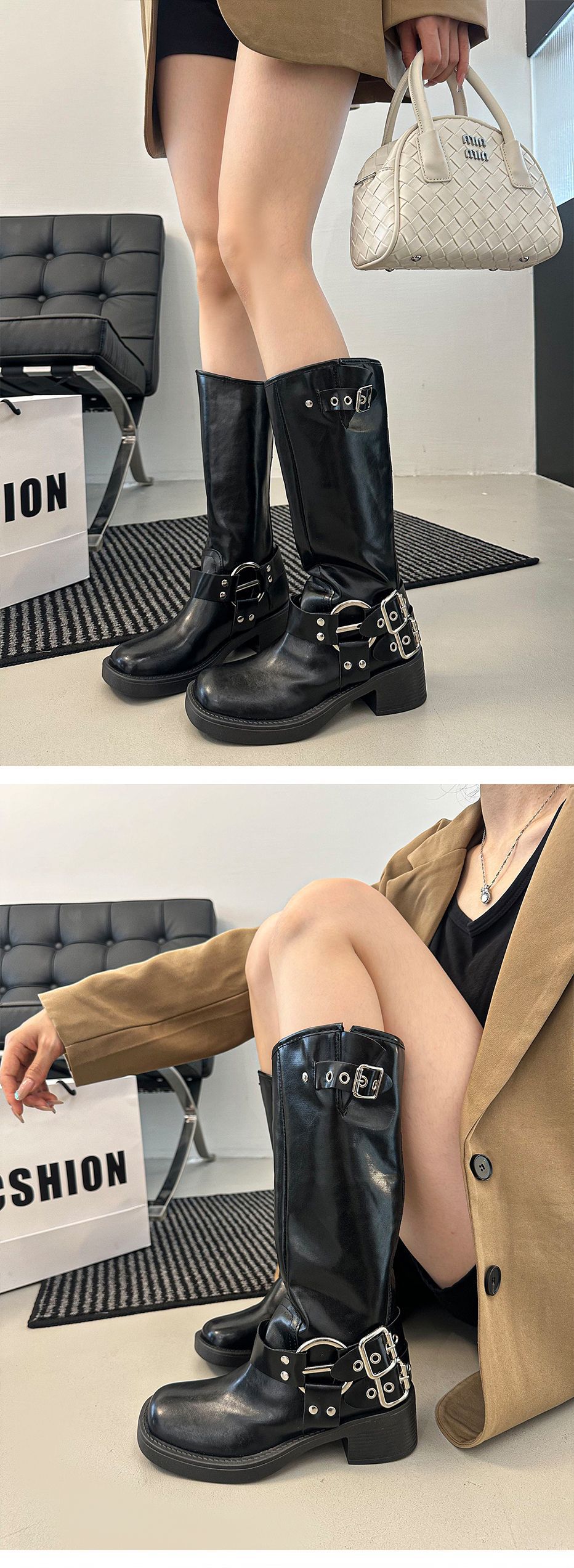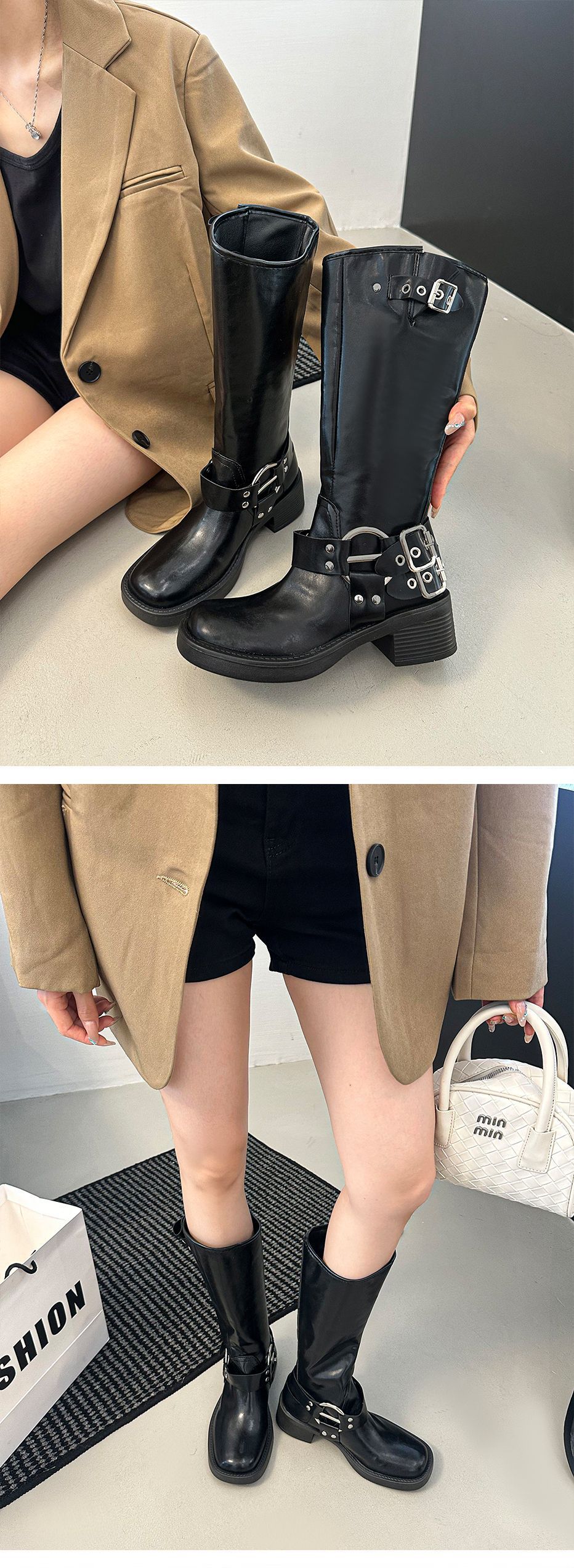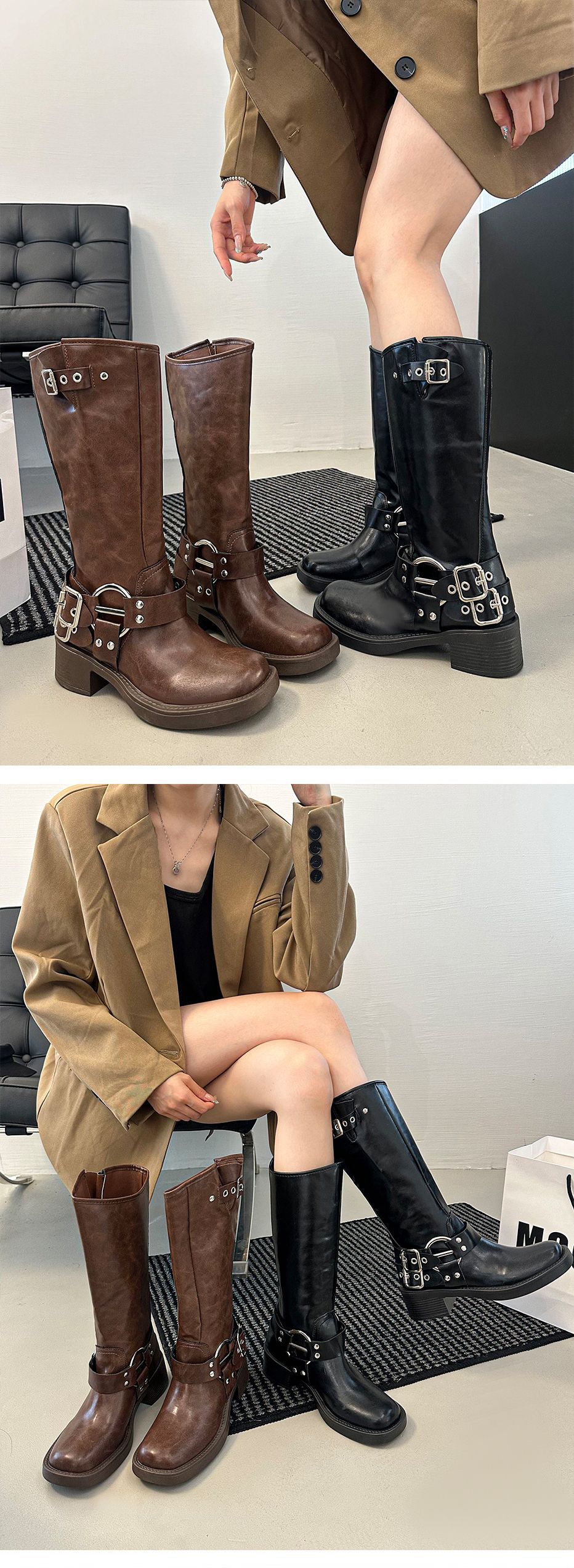 Botas altas hasta el muslo marrones de tacón grueso para mujer otoño 2025 nuevas estilo vaquero occidental británico caña alta botas largas