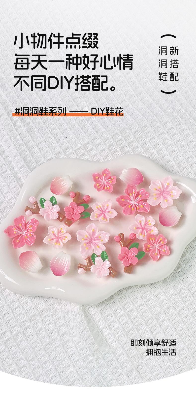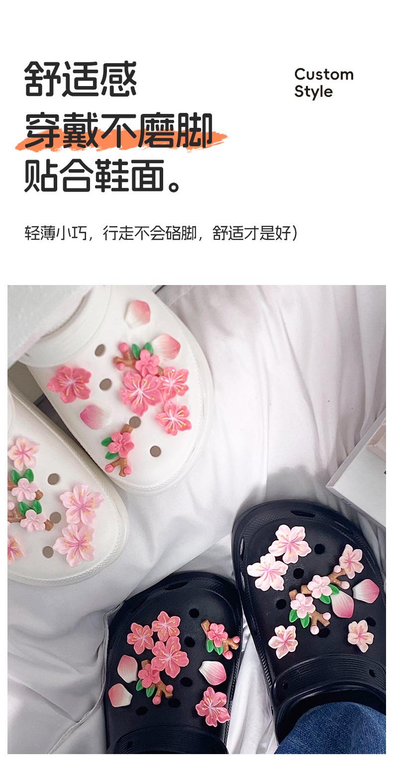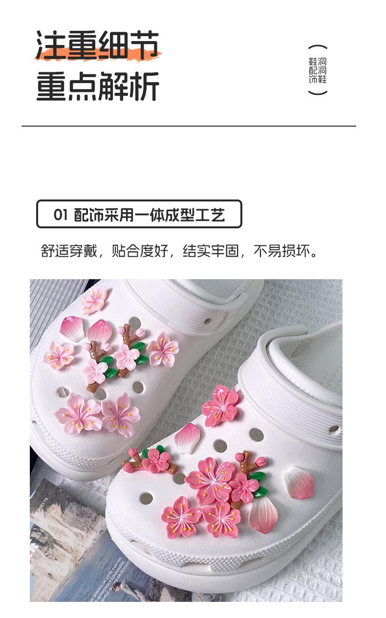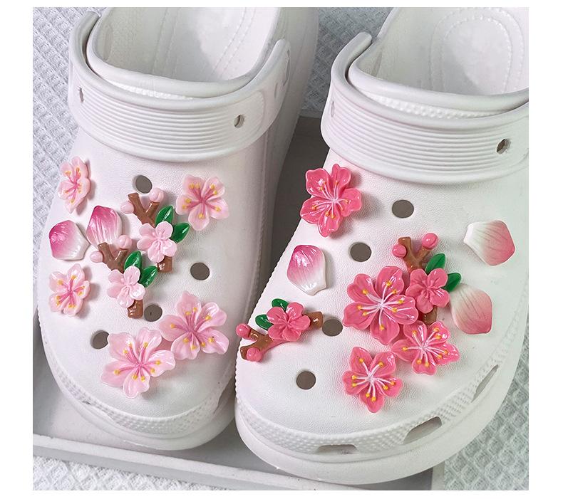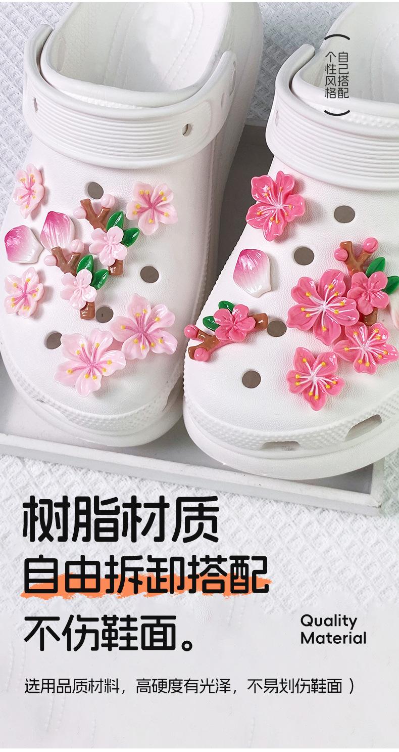 Accesorios Crocs de alta gama para niña, charms para zapatos, serie de flor de durazno de rama completa, accesorios decorativos removibles DIY, hebillas para zapatos