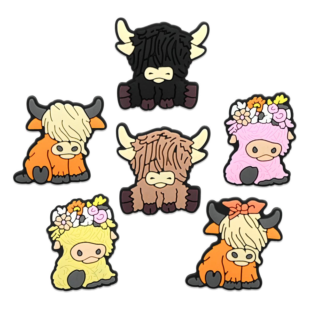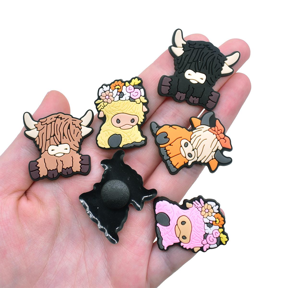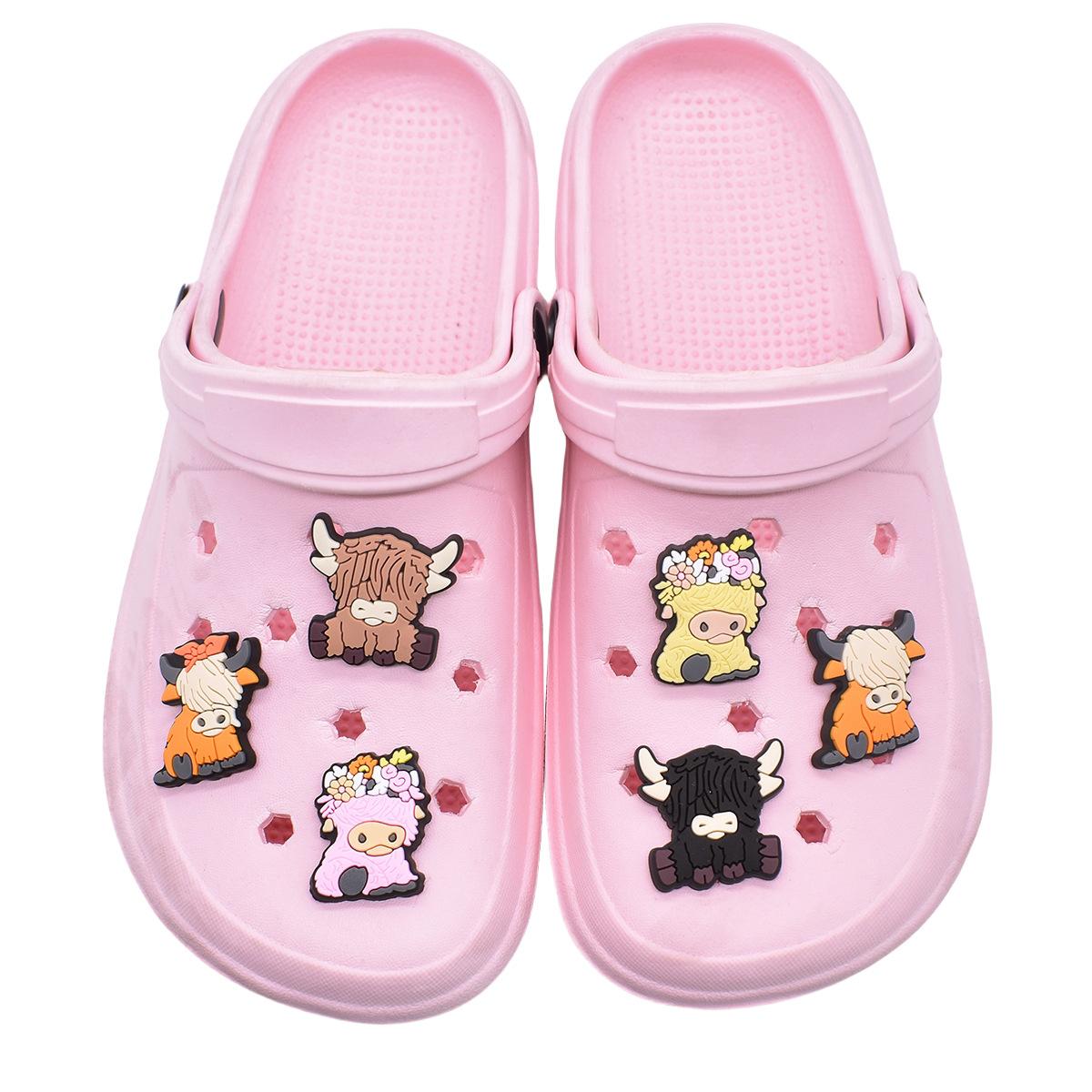 Dibujos Animados Lindo Vaca Highland Zueco Flores para Zapatos Hebillas para Zapatos PVC Goma Suave Removibles Hebillas Decorativas Accesorios para Zapatos DIY