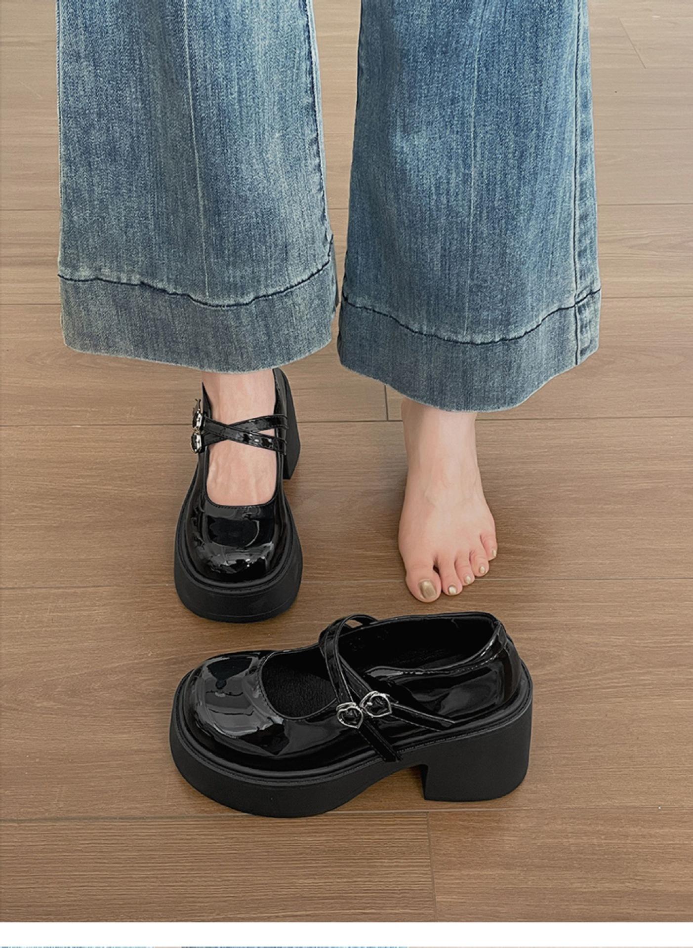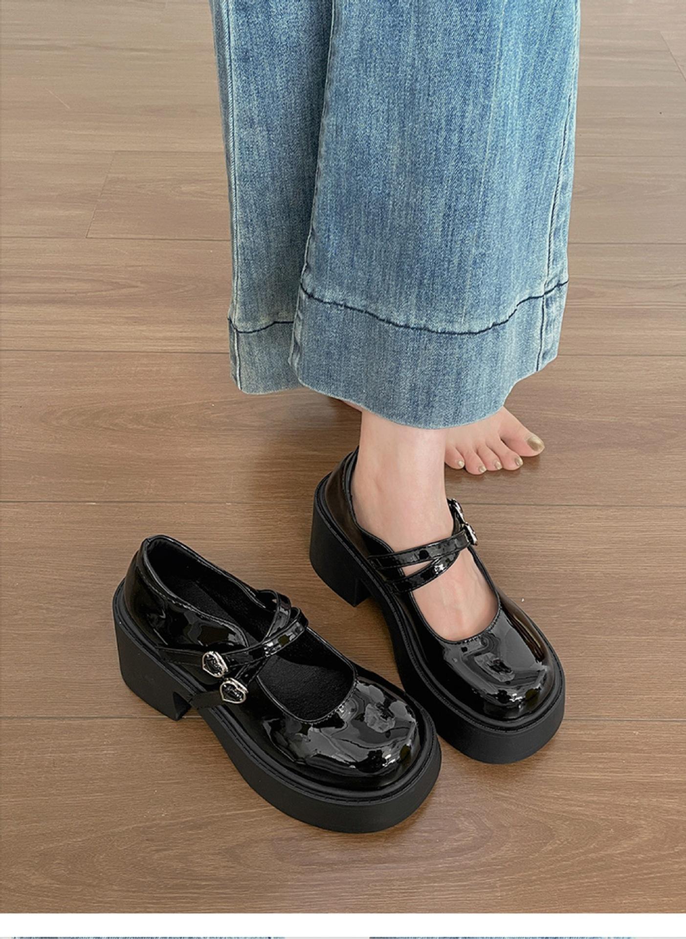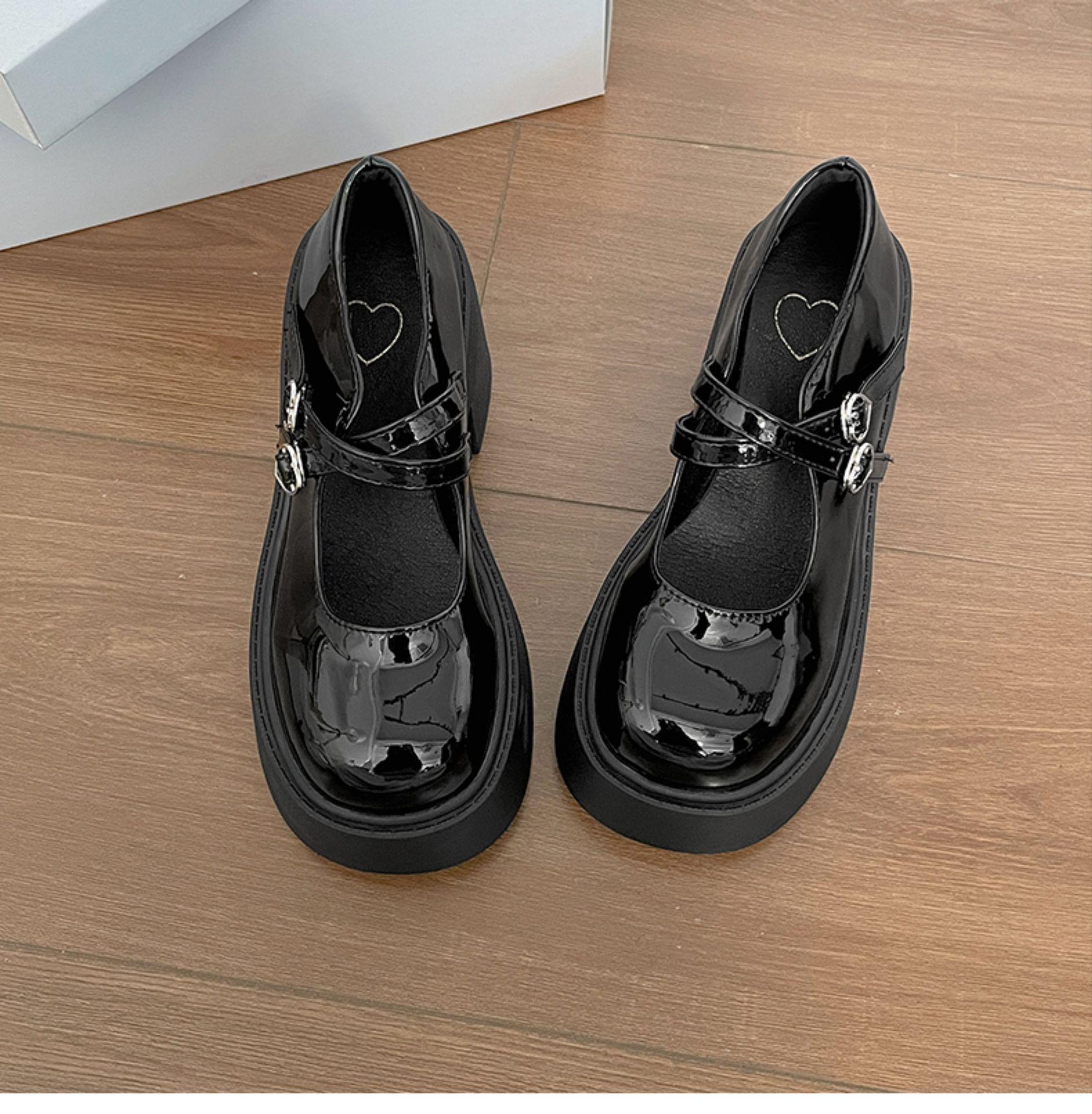 Retro negro de alta gama británico tacón grueso zapatos pequeños de cuero mujer 2025 nuevo verano combinar falda zapatos Mary Jane para aumentar la altura