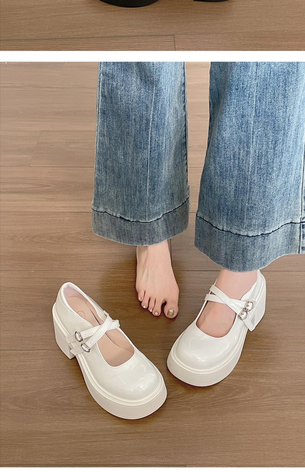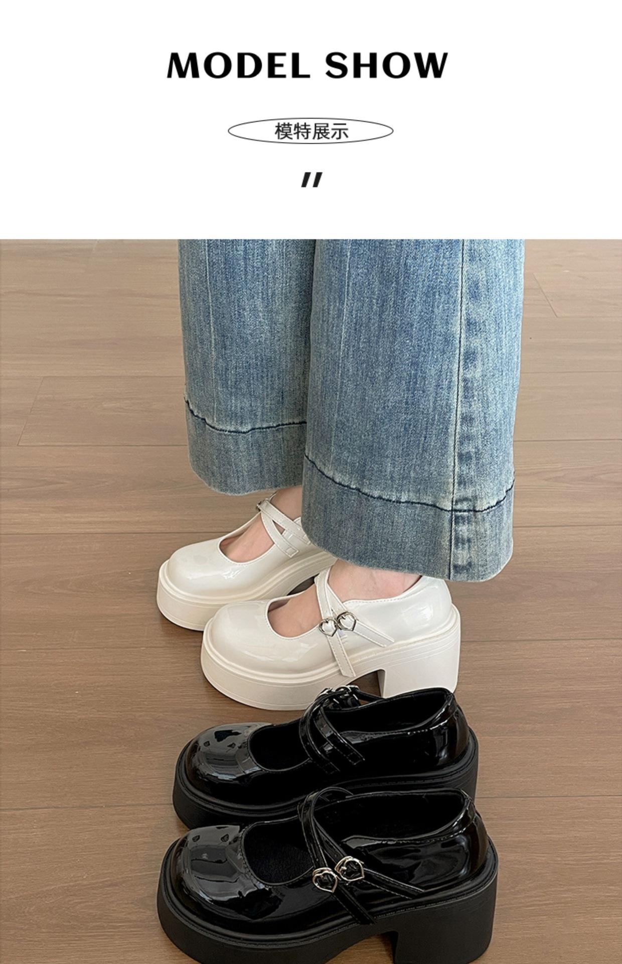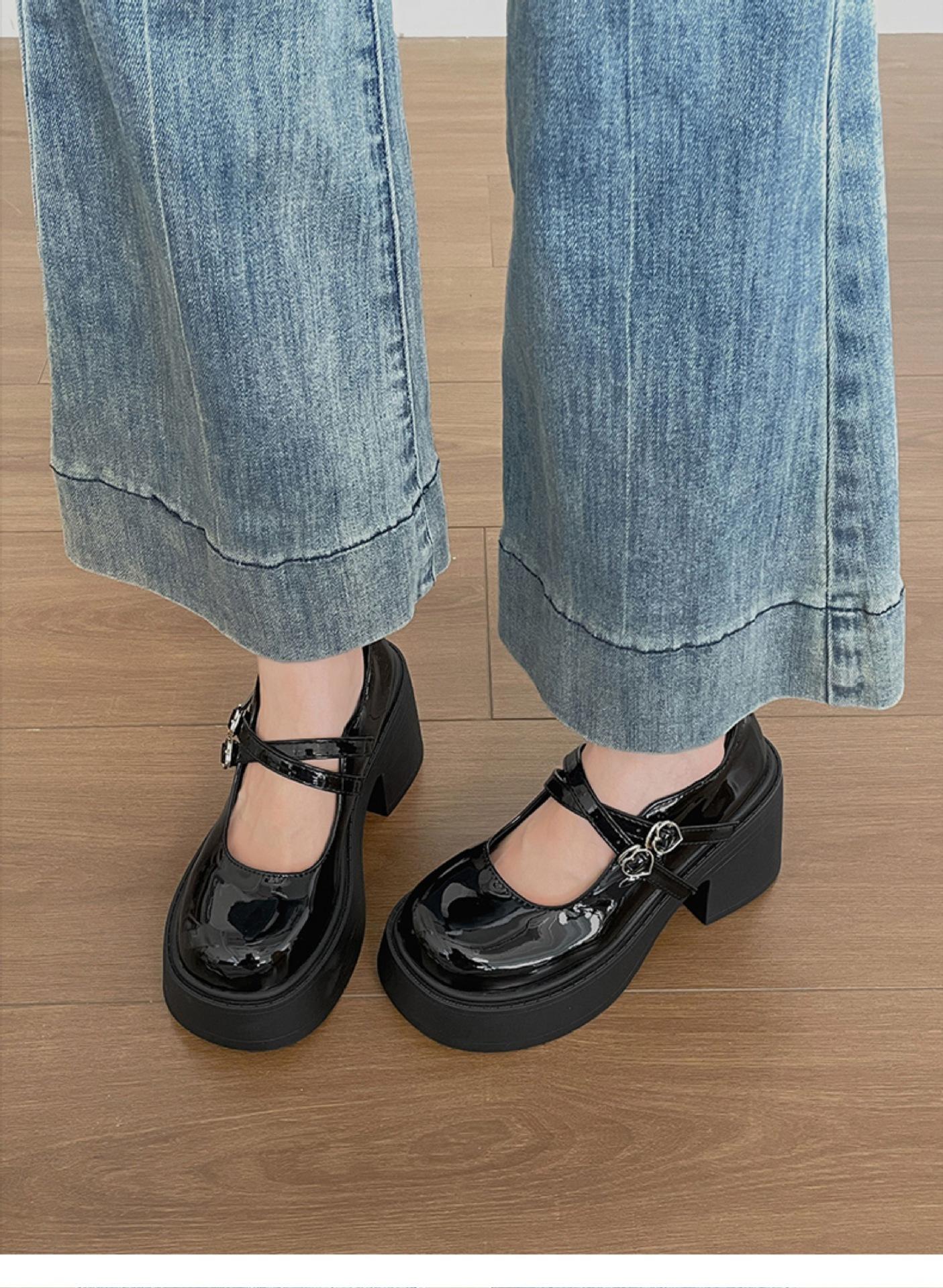 Retro negro de alta gama británico tacón grueso zapatos pequeños de cuero mujer 2025 nuevo verano combinar falda zapatos Mary Jane para aumentar la altura