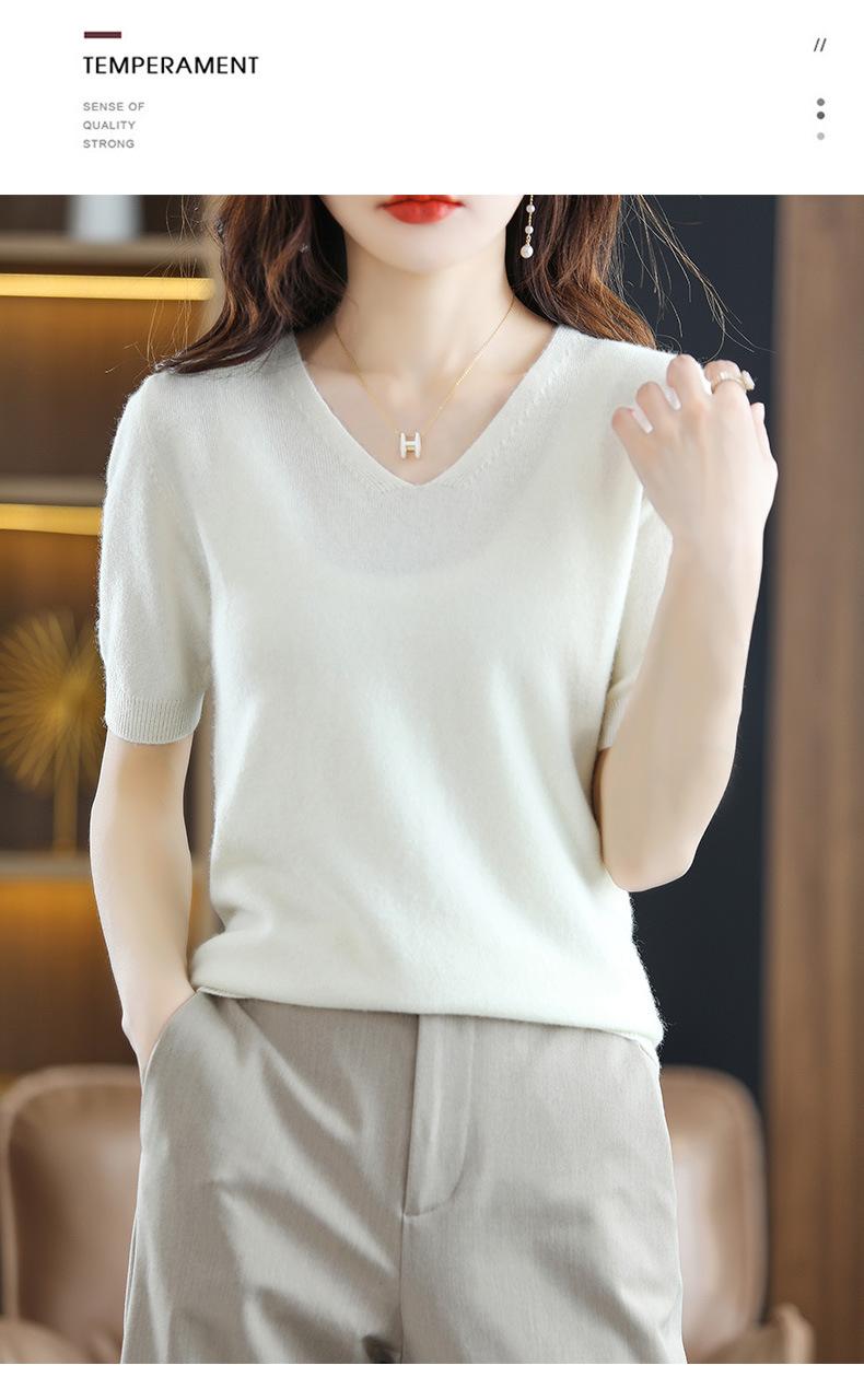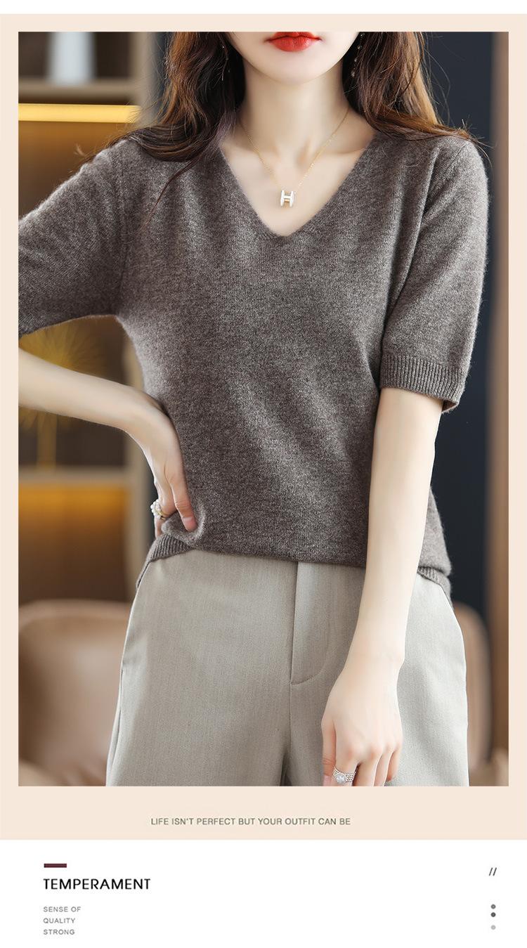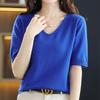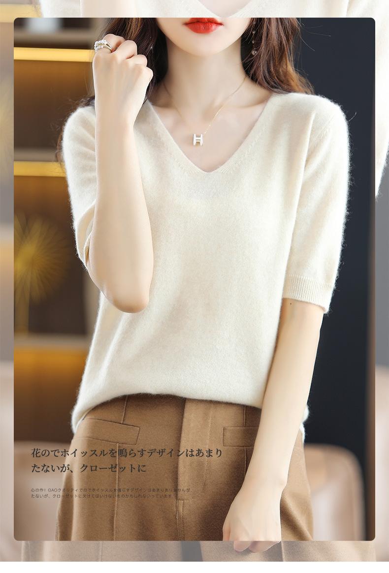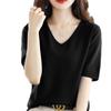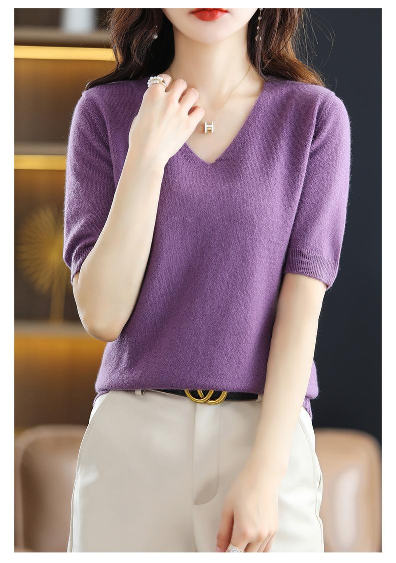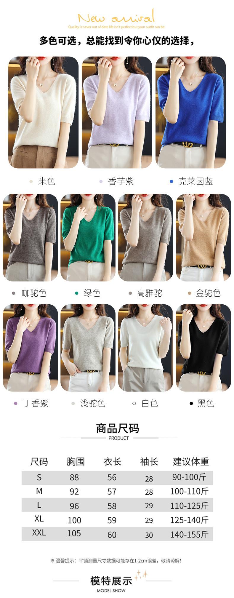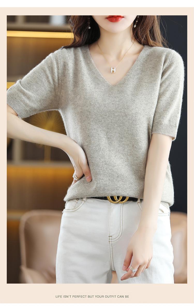 Tejido de punto básico de manga tres cuartos para primavera y otoño transfronterizo para mujer, suéter tipo jersey con cuello en V, holgado, casual, estilo coreano, top de manga corta, cien