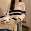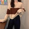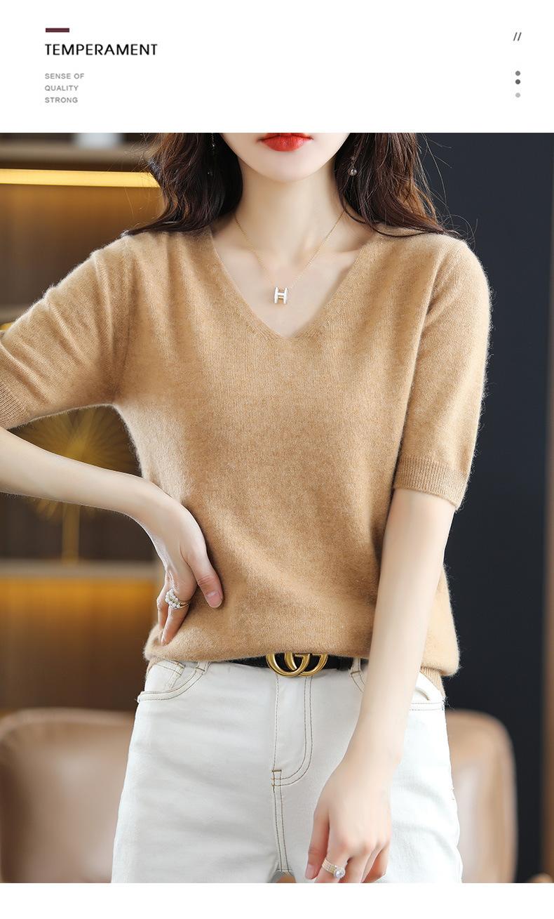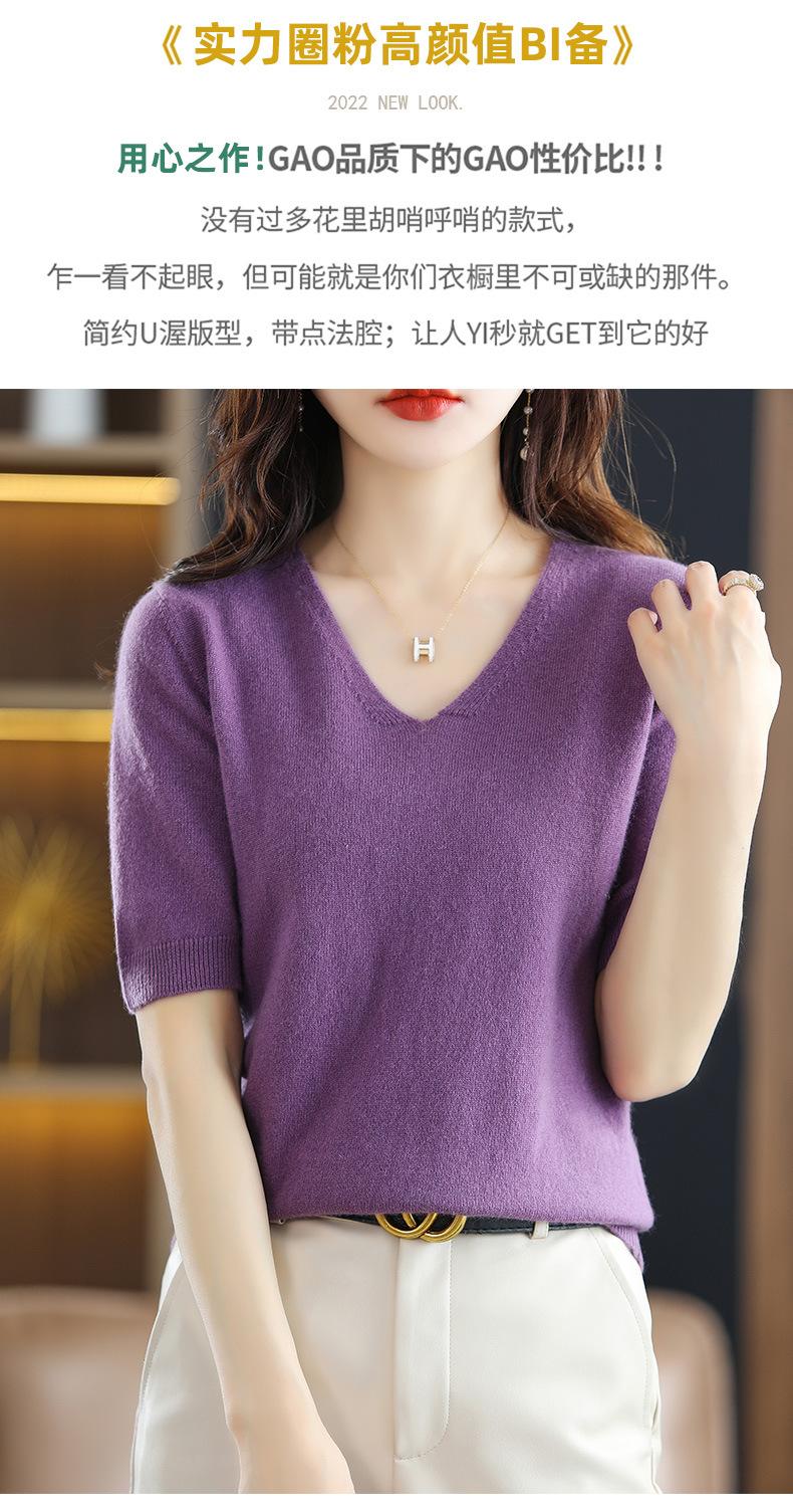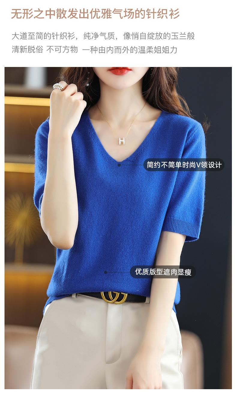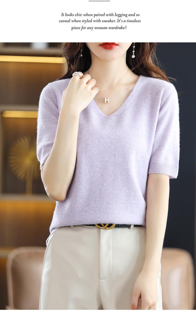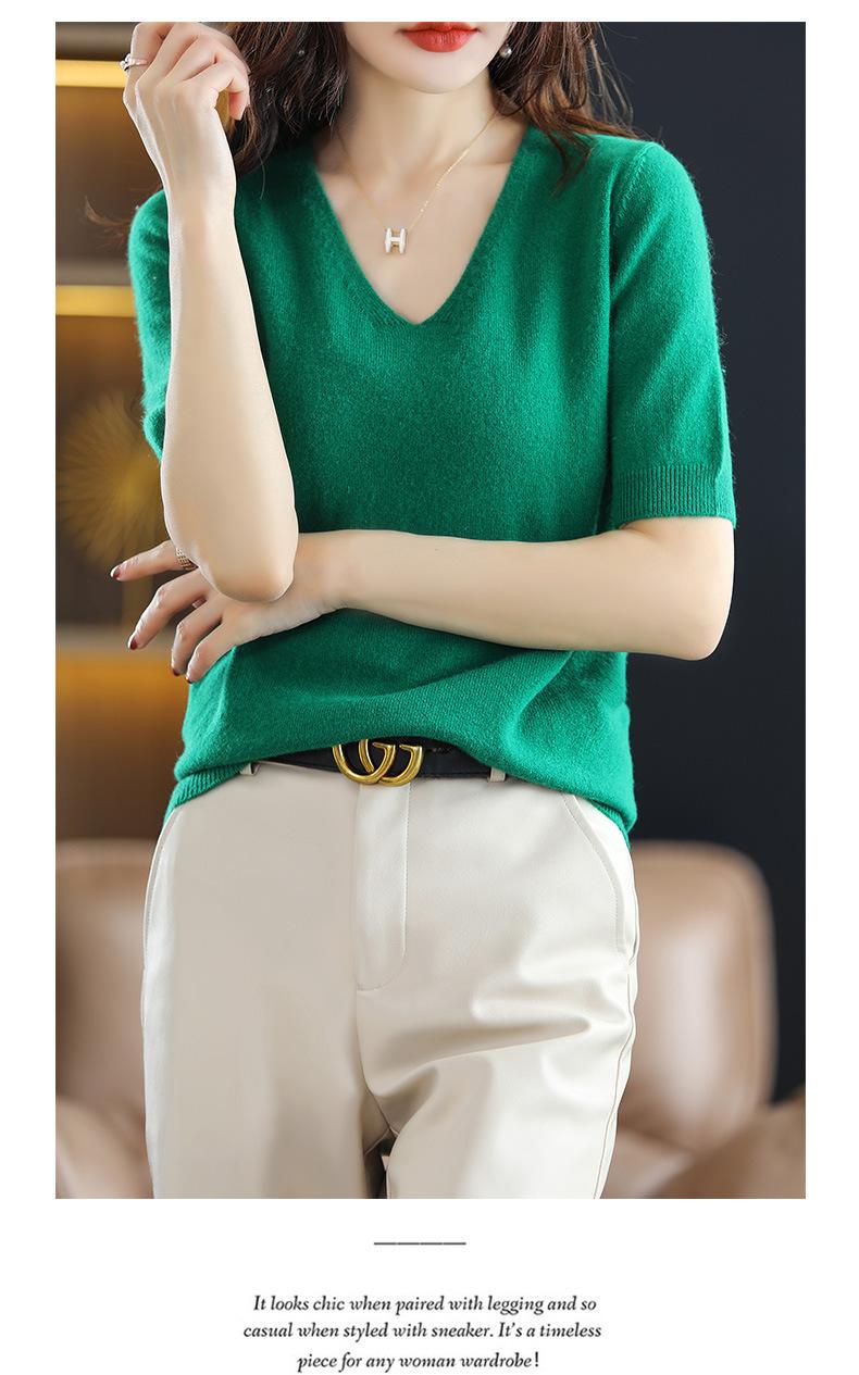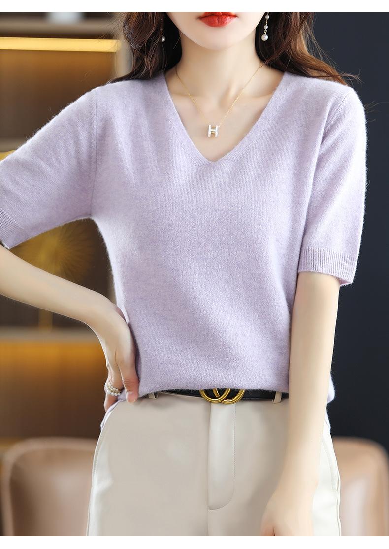 Tejido de punto básico de manga tres cuartos para primavera y otoño transfronterizo para mujer, suéter tipo jersey con cuello en V, holgado, casual, estilo coreano, top de manga corta, cien