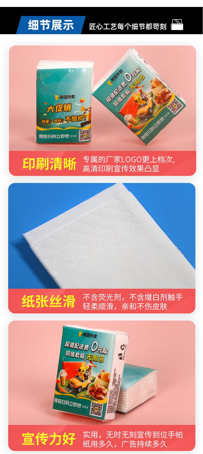 Pañuelo de papel toalla publicitario personalizado comercial para llevar restaurante bolsa pequeña portátil regalo promocional papel toalla mayoreo