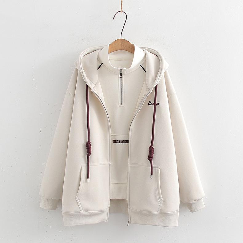 Abrigo de Primavera para Mujer Versátil Recién Llegado Suéter oversize Holgado Estudiante Ins Trendy Capucha Cierre Cremallera Cárdigan