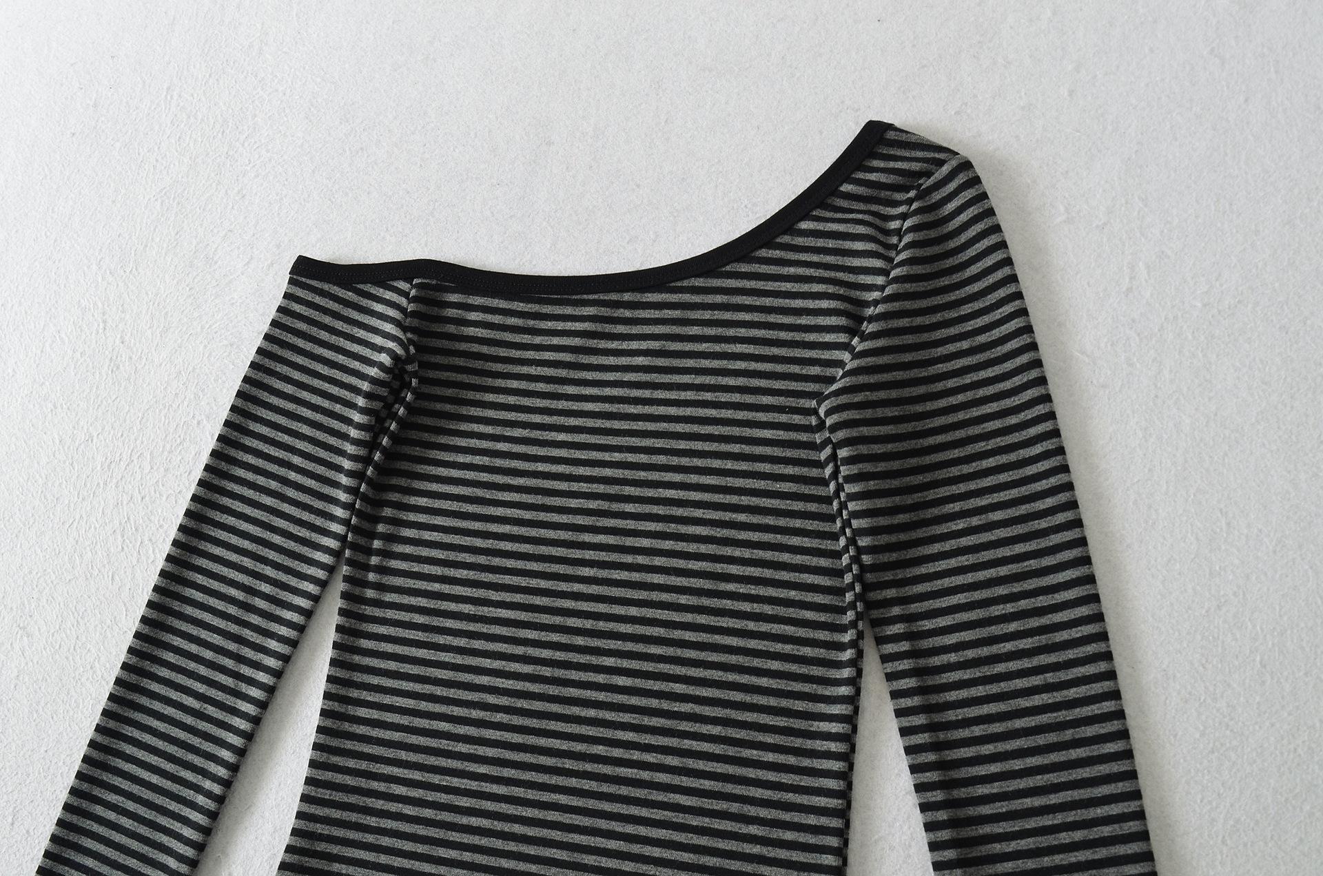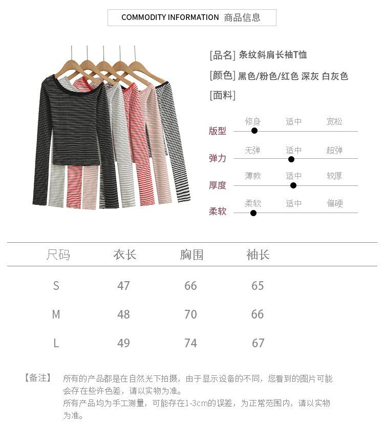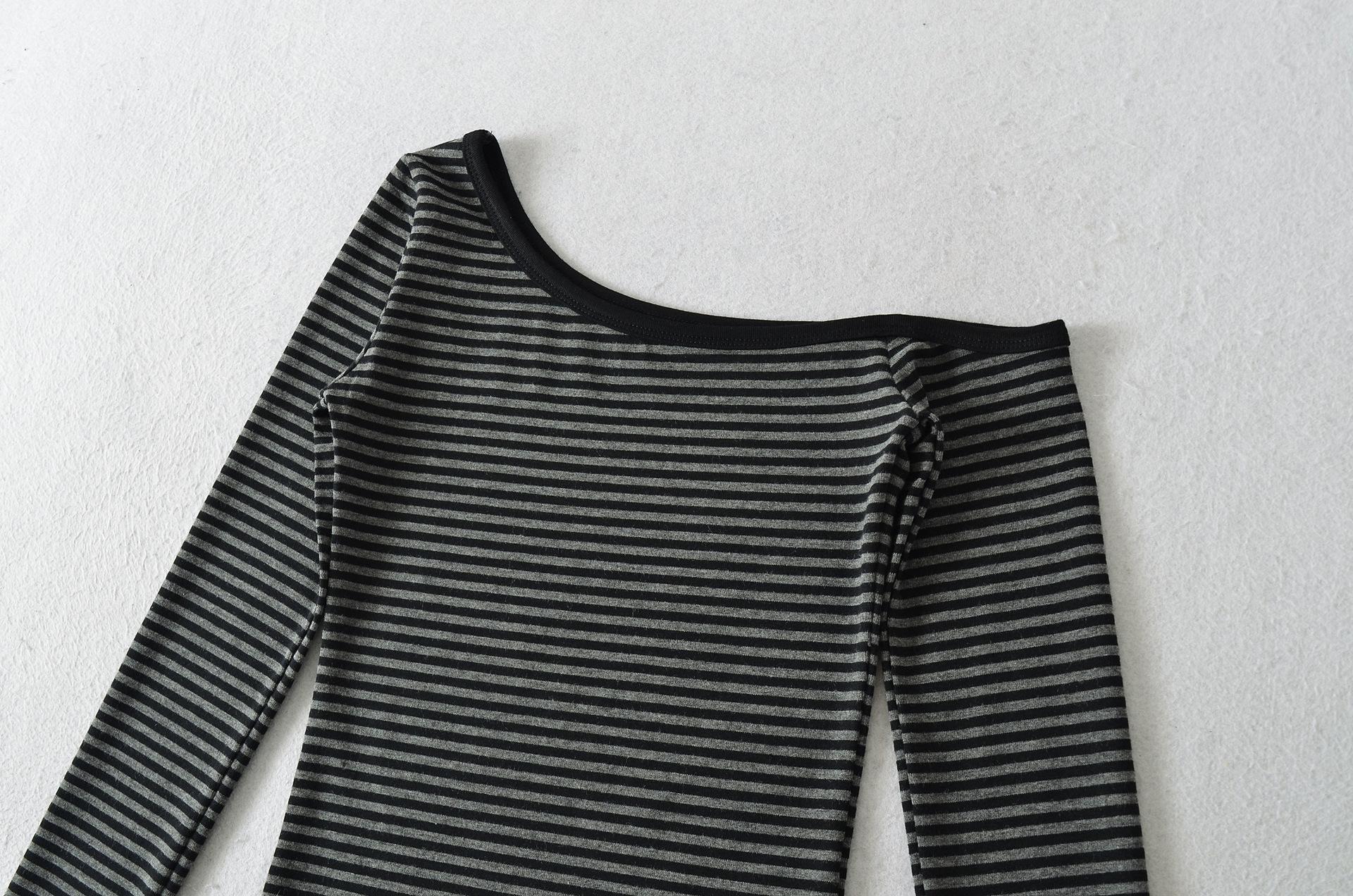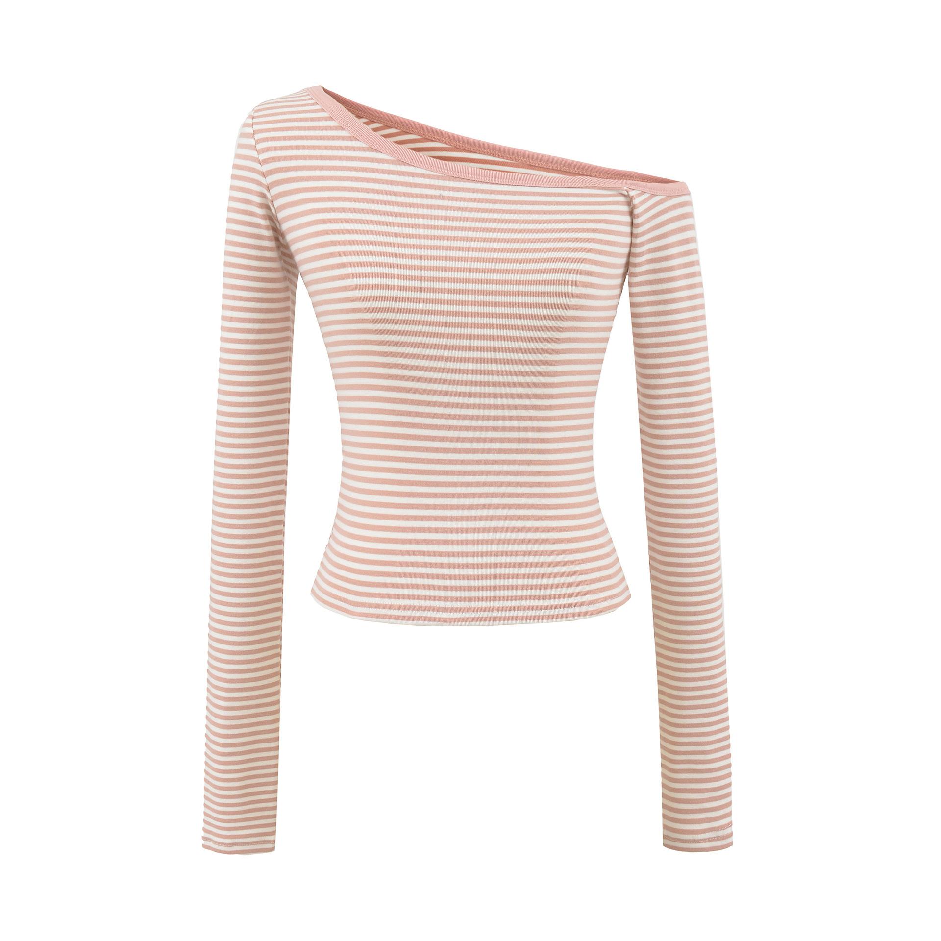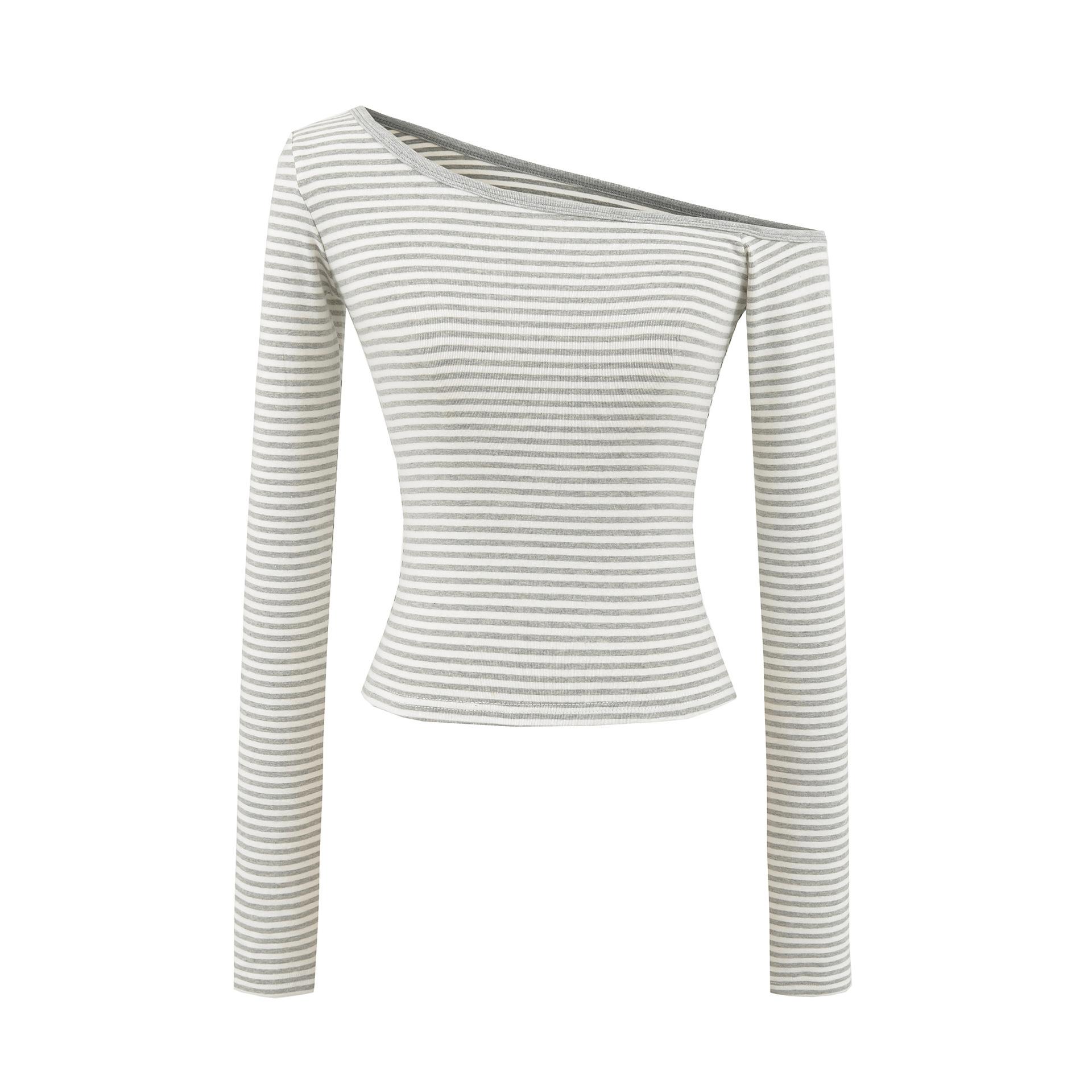 Camiseta Sexy Europea y Americana de Rayas con un Hombro Descubierto y Manga Larga al por Mayor para Mujer, Camiseta Interior de Rayas Ajustada Corta para Chica Hot, Camiseta Básica con Hombros Descubiertos