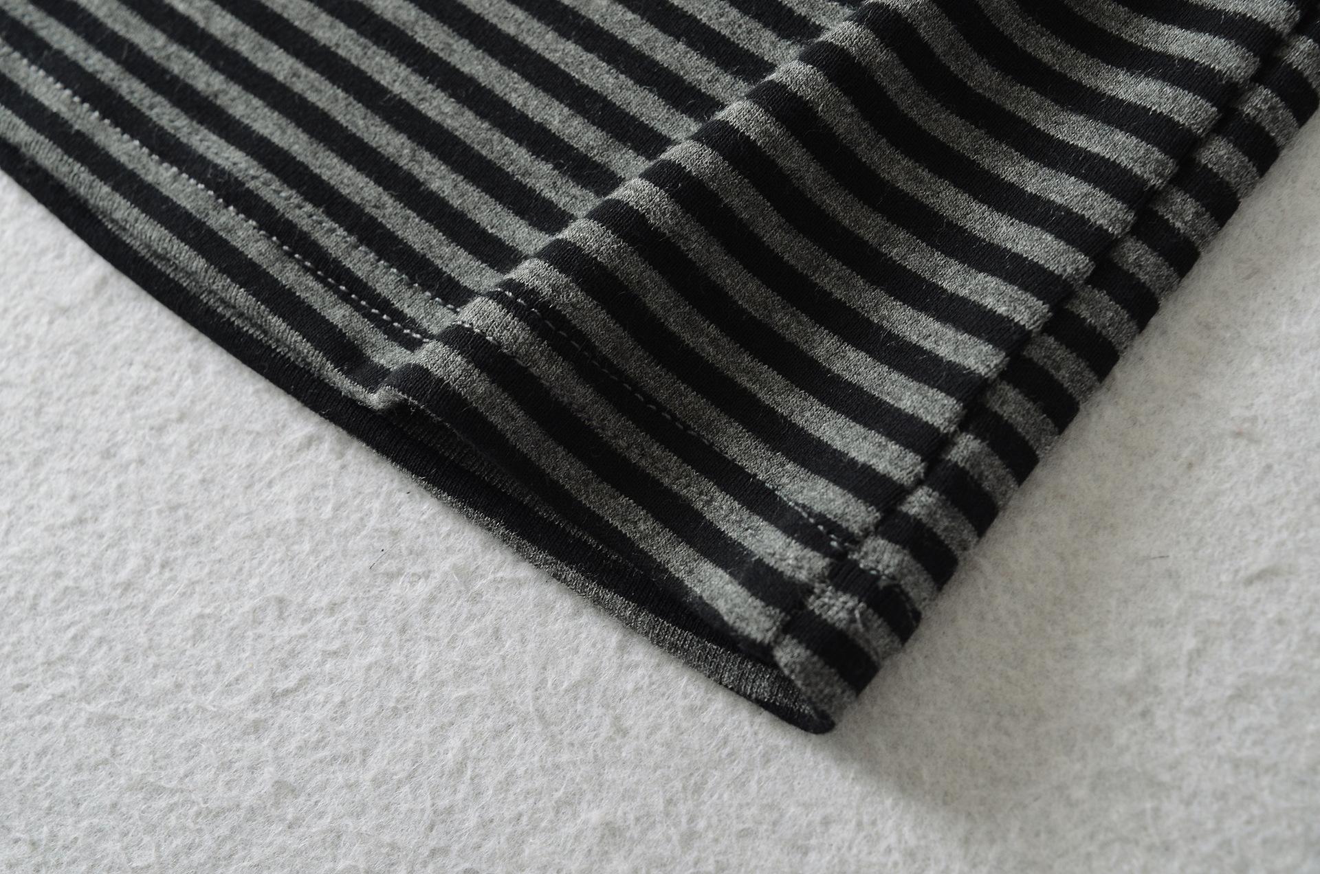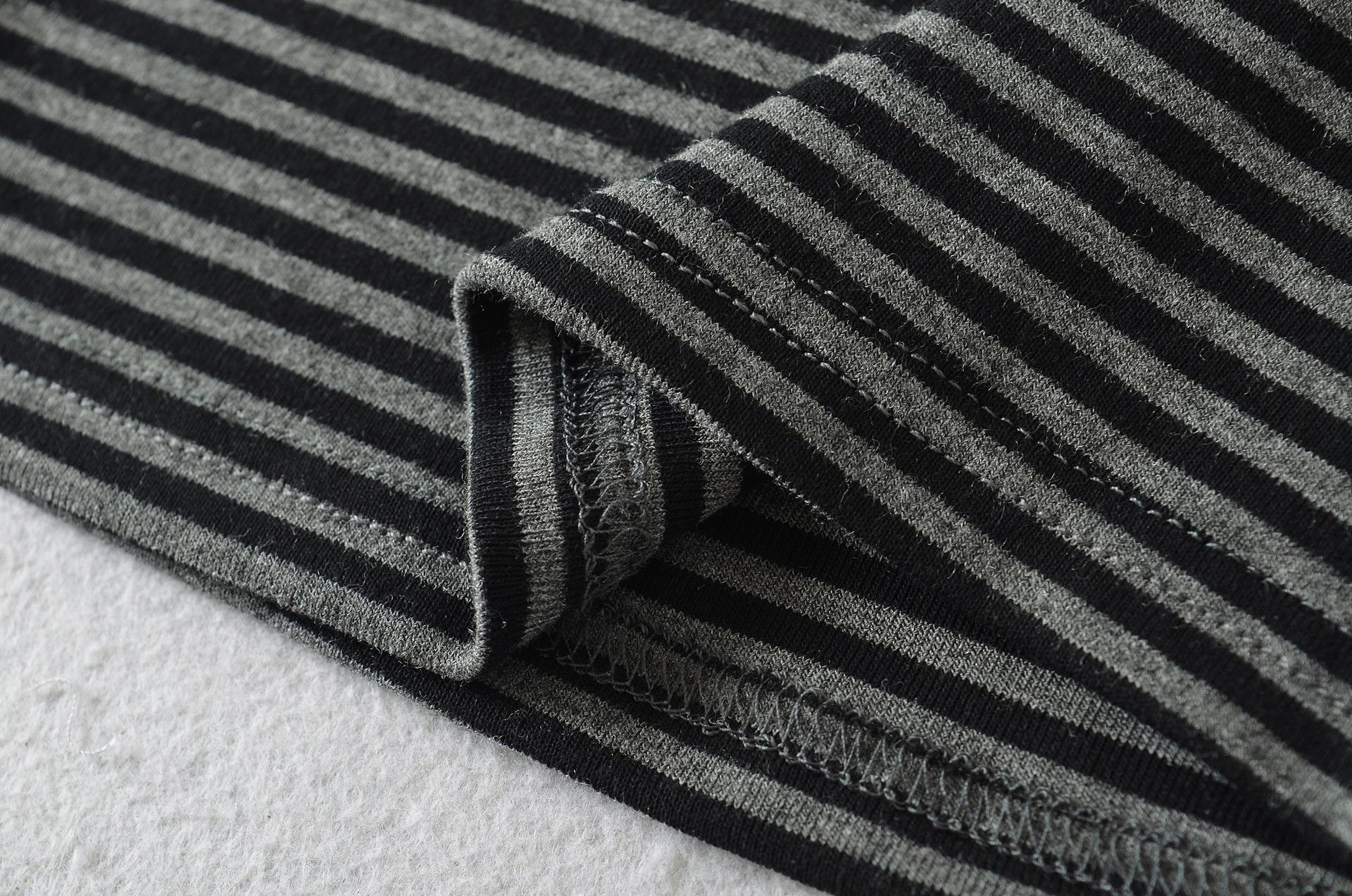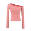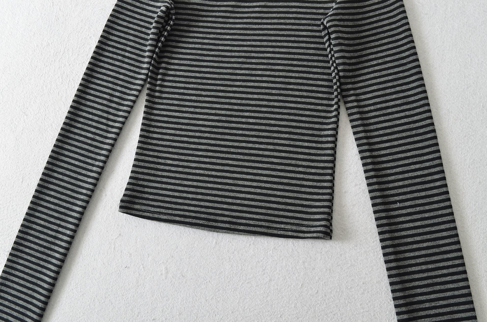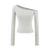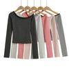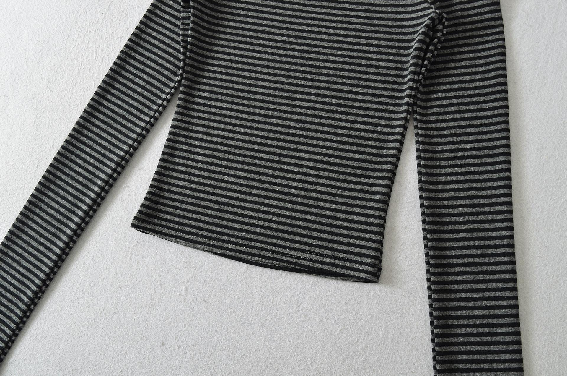 Camiseta Sexy Europea y Americana de Rayas con un Hombro Descubierto y Manga Larga al por Mayor para Mujer, Camiseta Interior de Rayas Ajustada Corta para Chica Hot, Camiseta Básica con Hombros Descubiertos