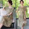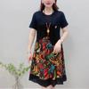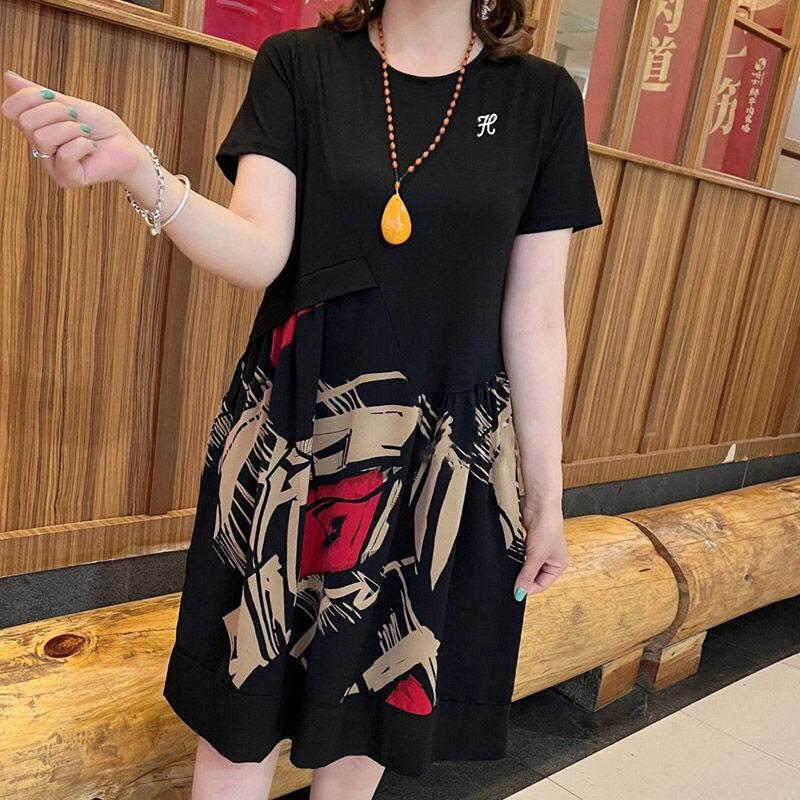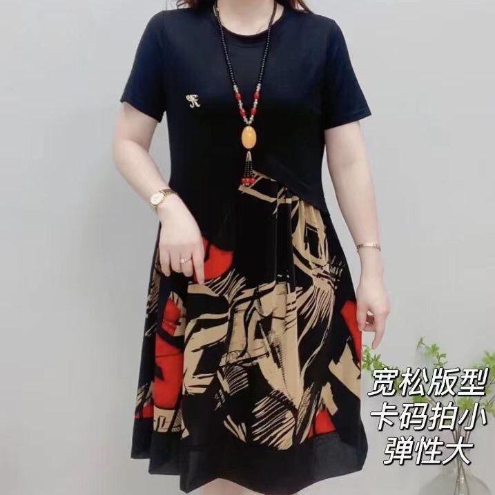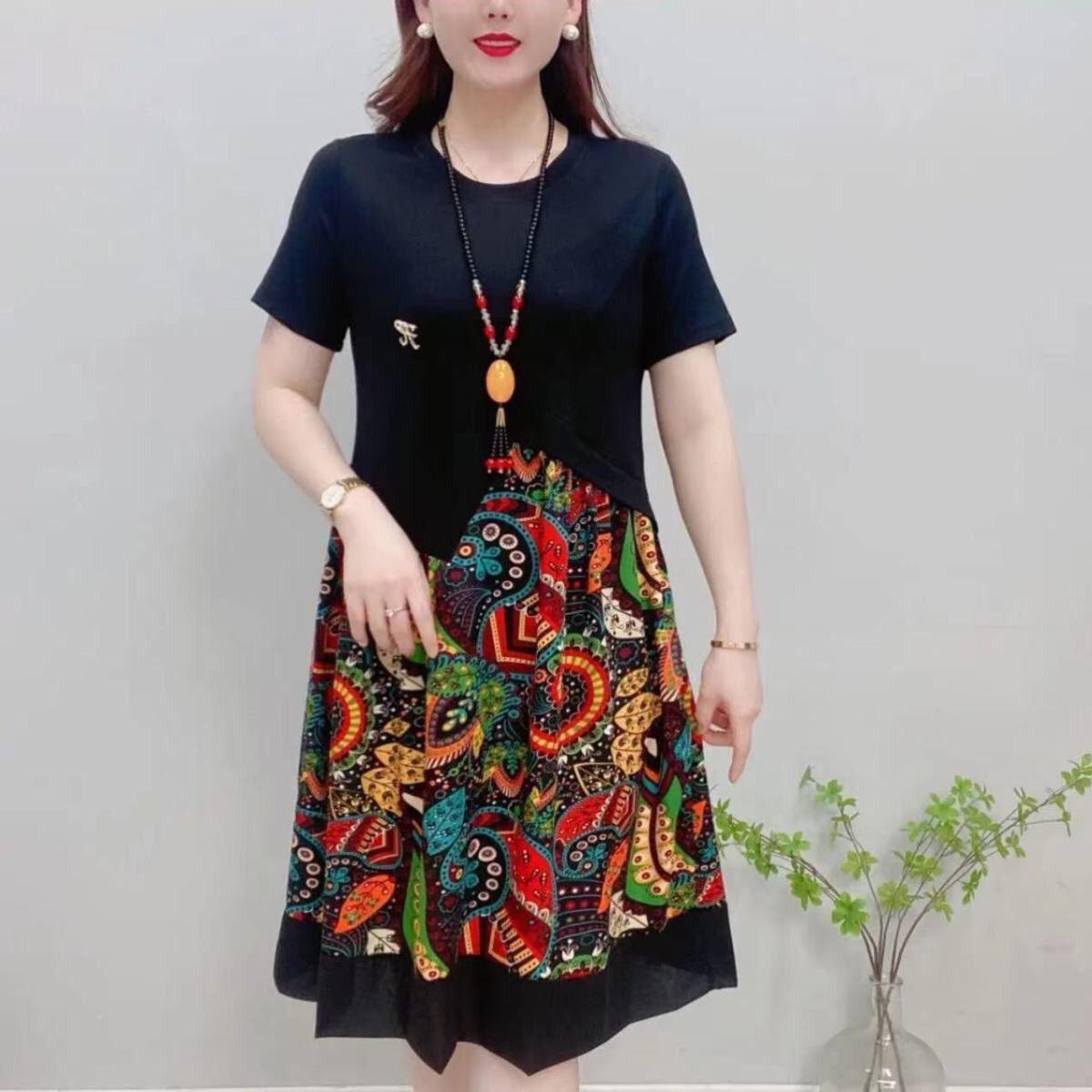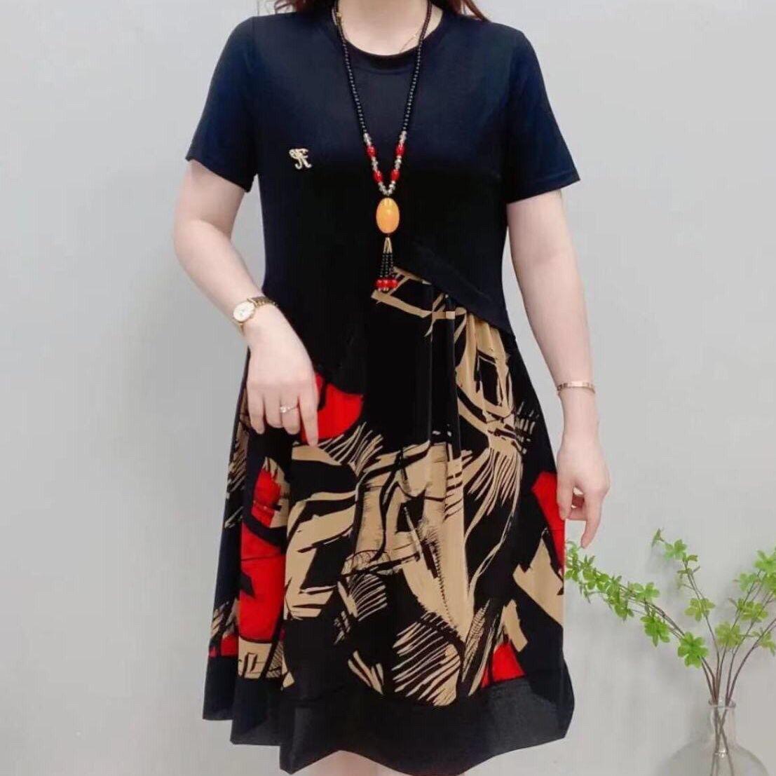Verano Nuevo Vestido de Manga Corta con Costuras para Mujeres de Mediana Edad y Mayores, Moda de Estilo Occidental, Cubre Vientre, Adelgazante, Vestido de Madre