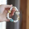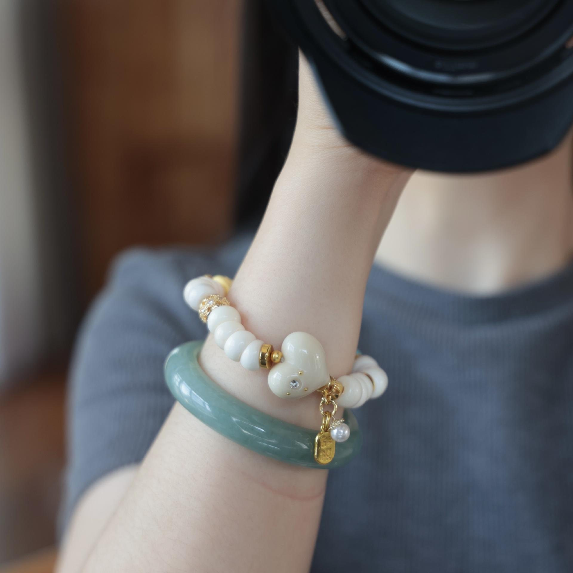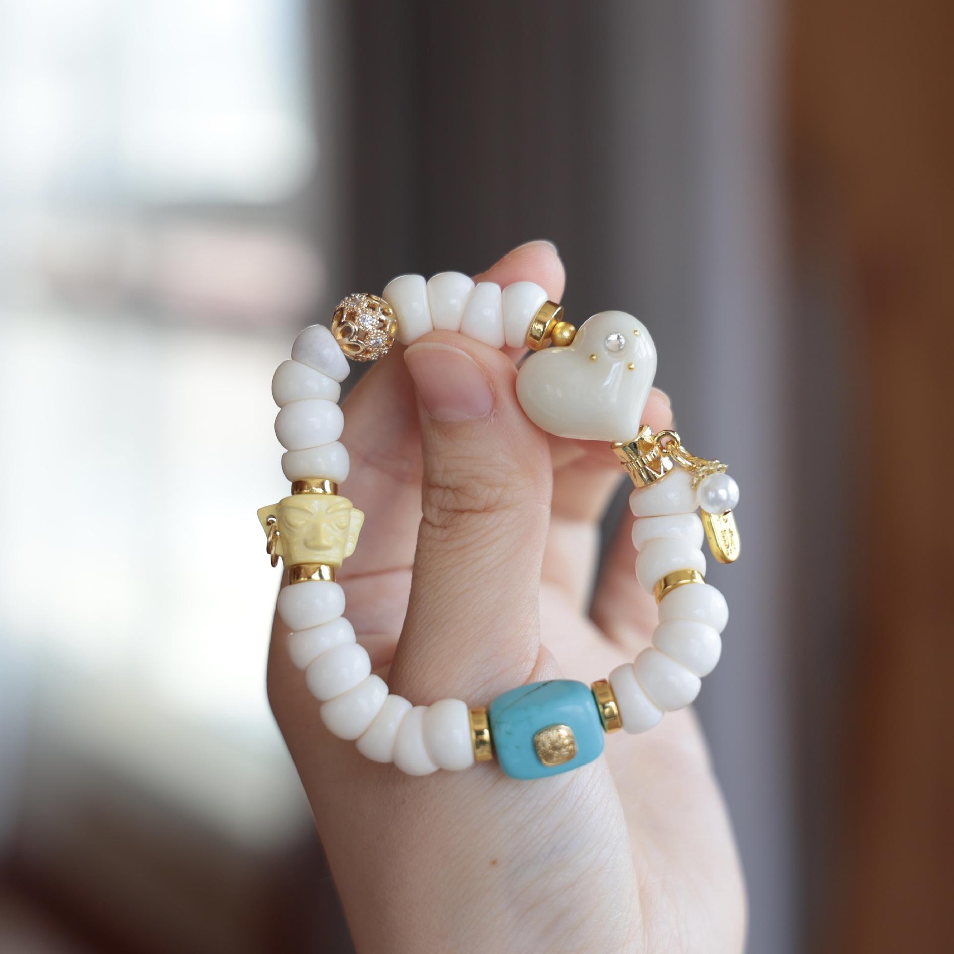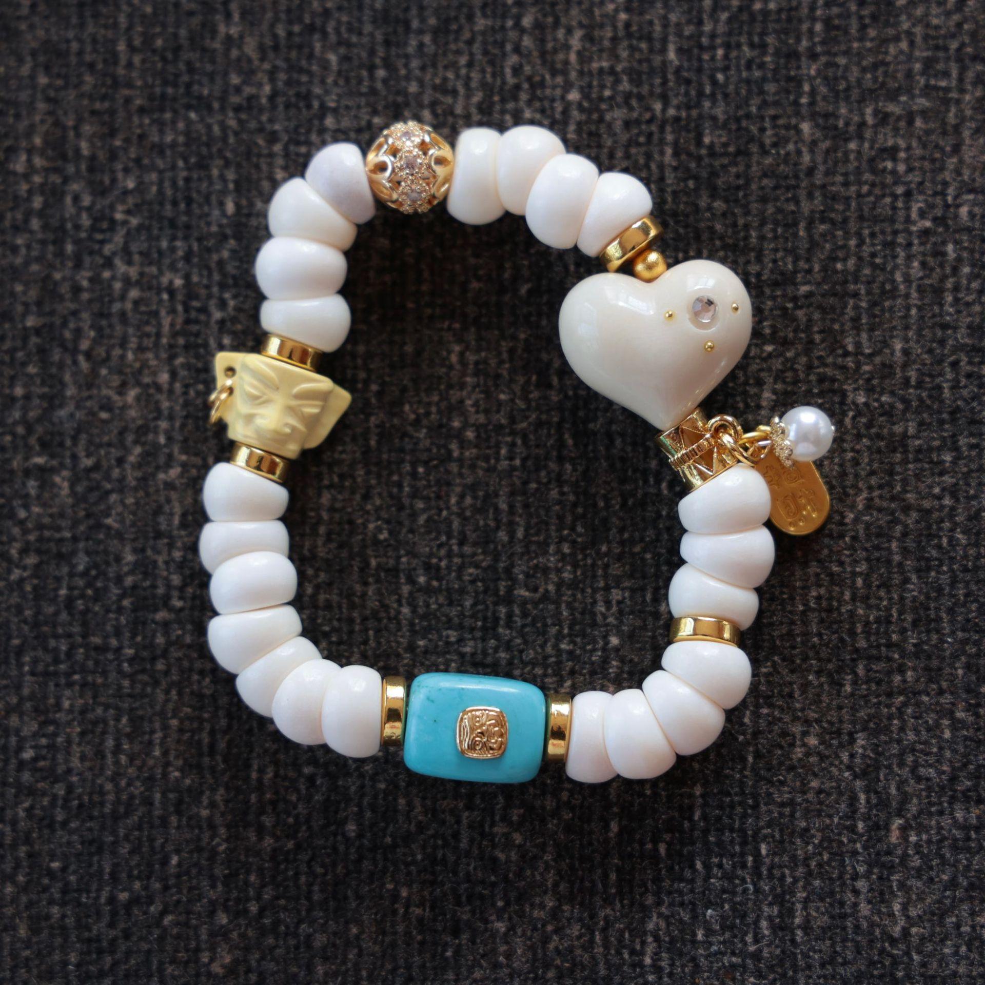 Original hueso de buey intestino grueso marfil fruta melocotón trasero magnesita incrustada cuenta cuadrada pulsera Sanxingdui joyería literaria y de juego de moda S1