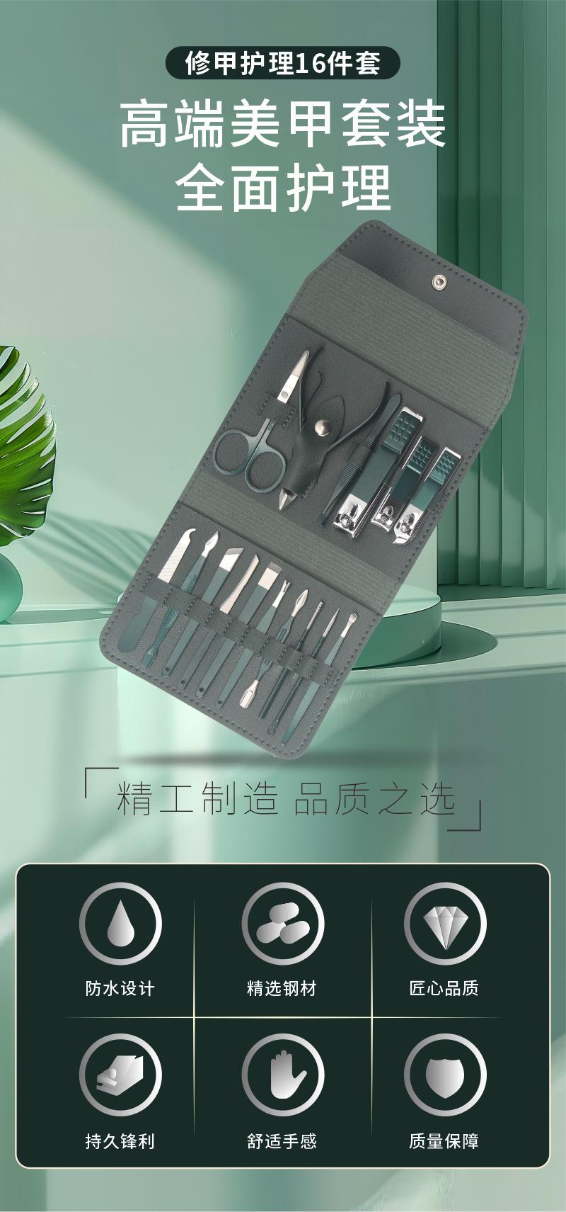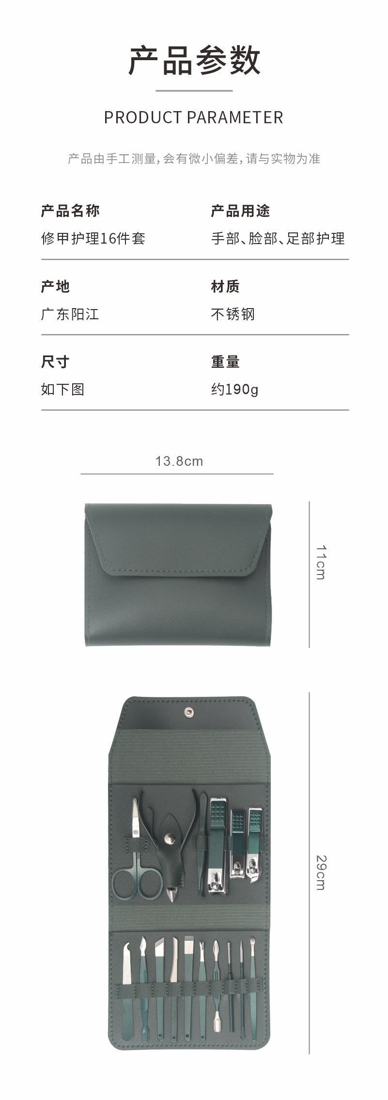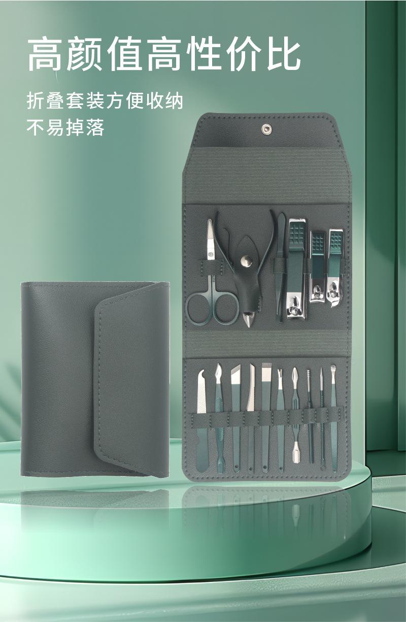 Set de Cortauñas Verde Oscuro, Set Completo de Cucharilla para Oídos de Uso Doméstico, Tijeras para Cejas, Herramientas Profesionales para Pedicura, Set de Tijeras para Uñas