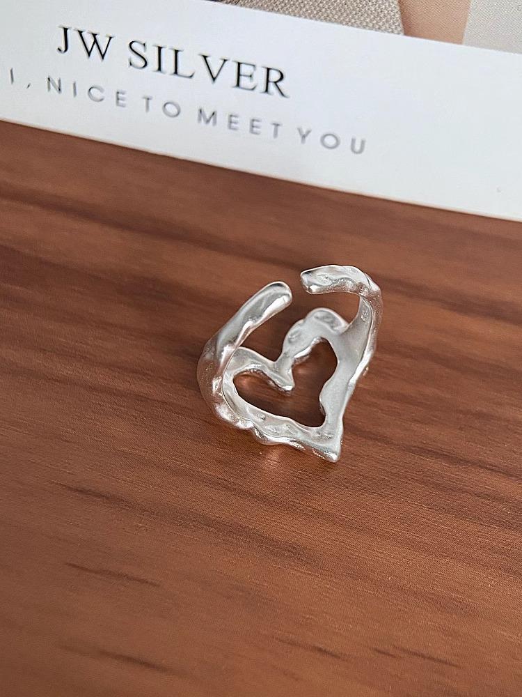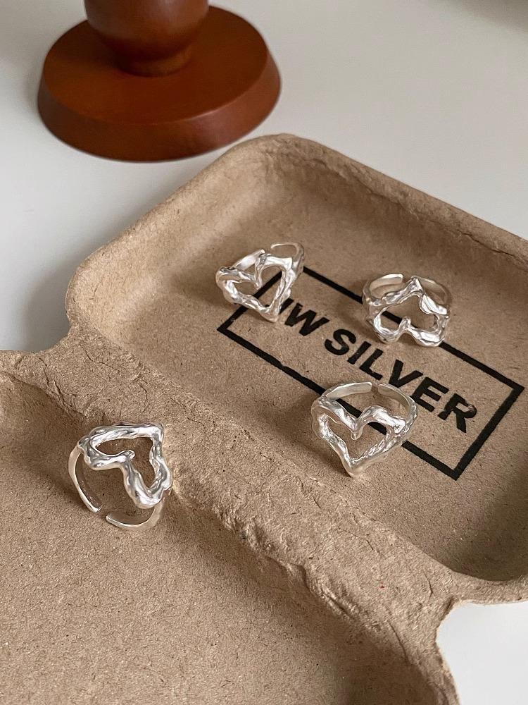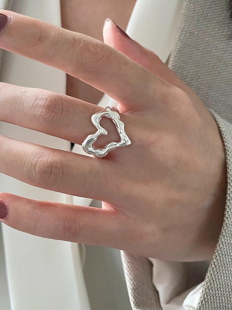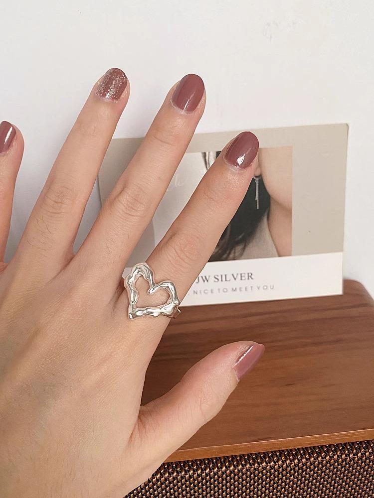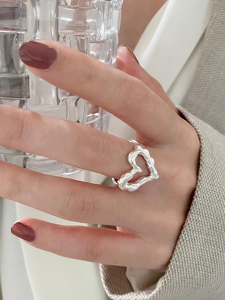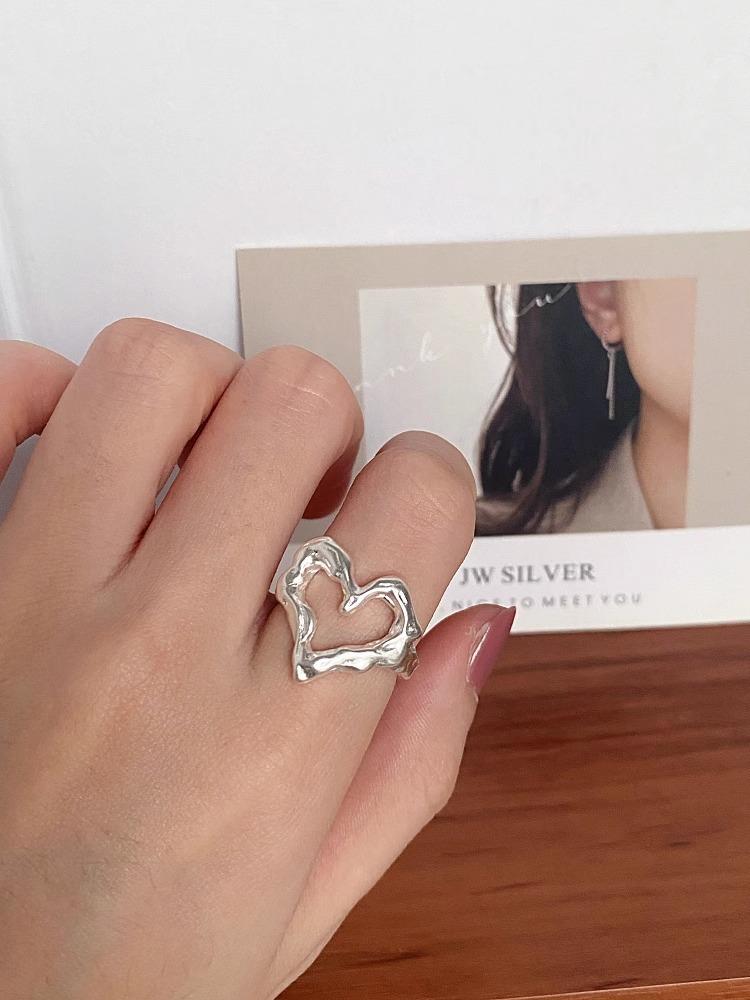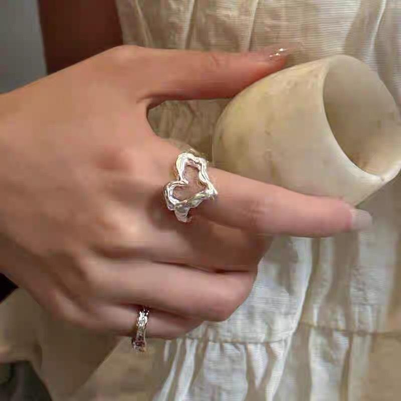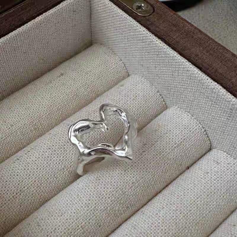 Anillo de Plata Corazón con Textura Irregular Estilo Coreano para Mujer Versátil Moda Personalidad Diseño Sensorial Anillo Abierto para Dedo