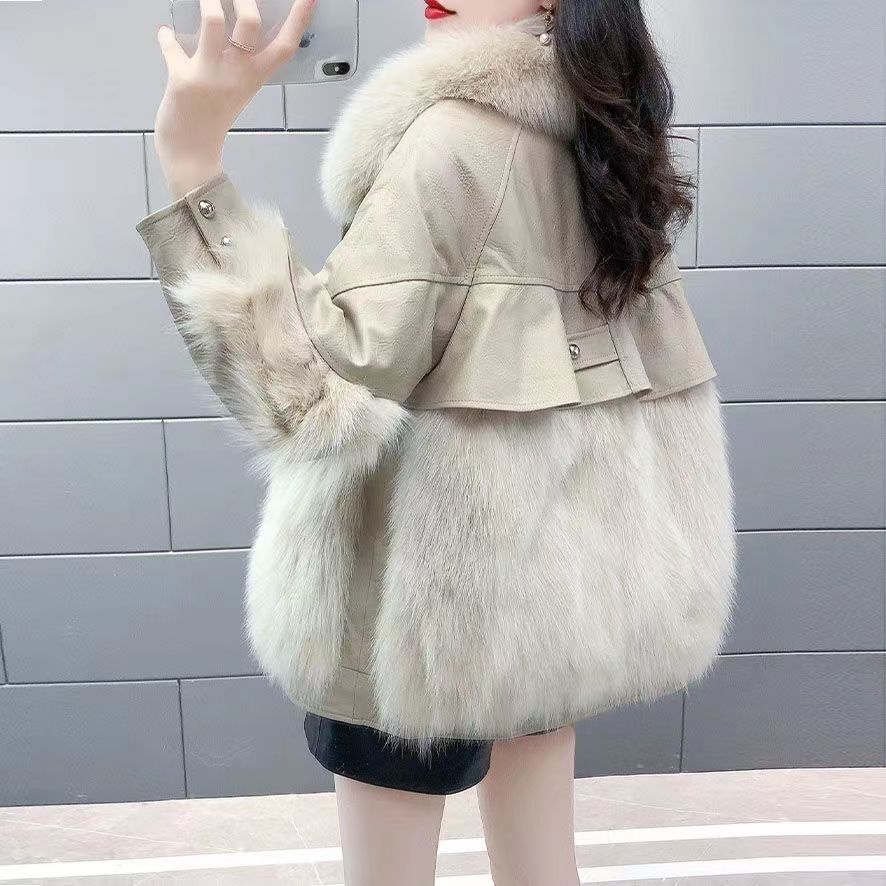 Abrigo de Piel para Mujer Invierno 2022 Ropa Nueva para Mujer Estilo Coreano Cuero PU Piel Sintética de Zorro Largo Medio Engrosado Abrigo Haining
