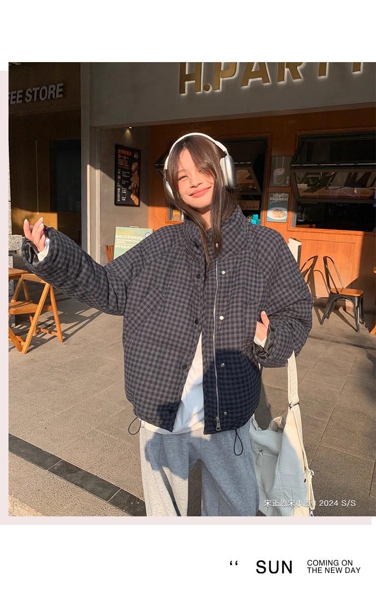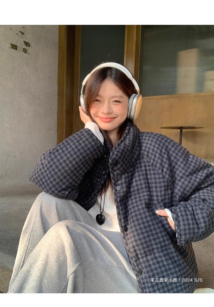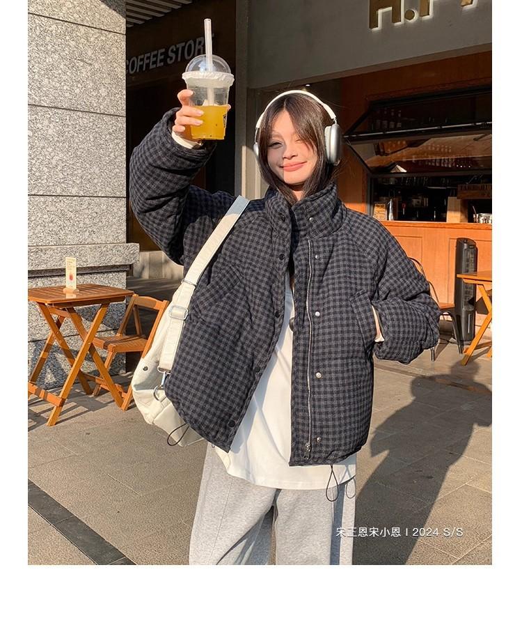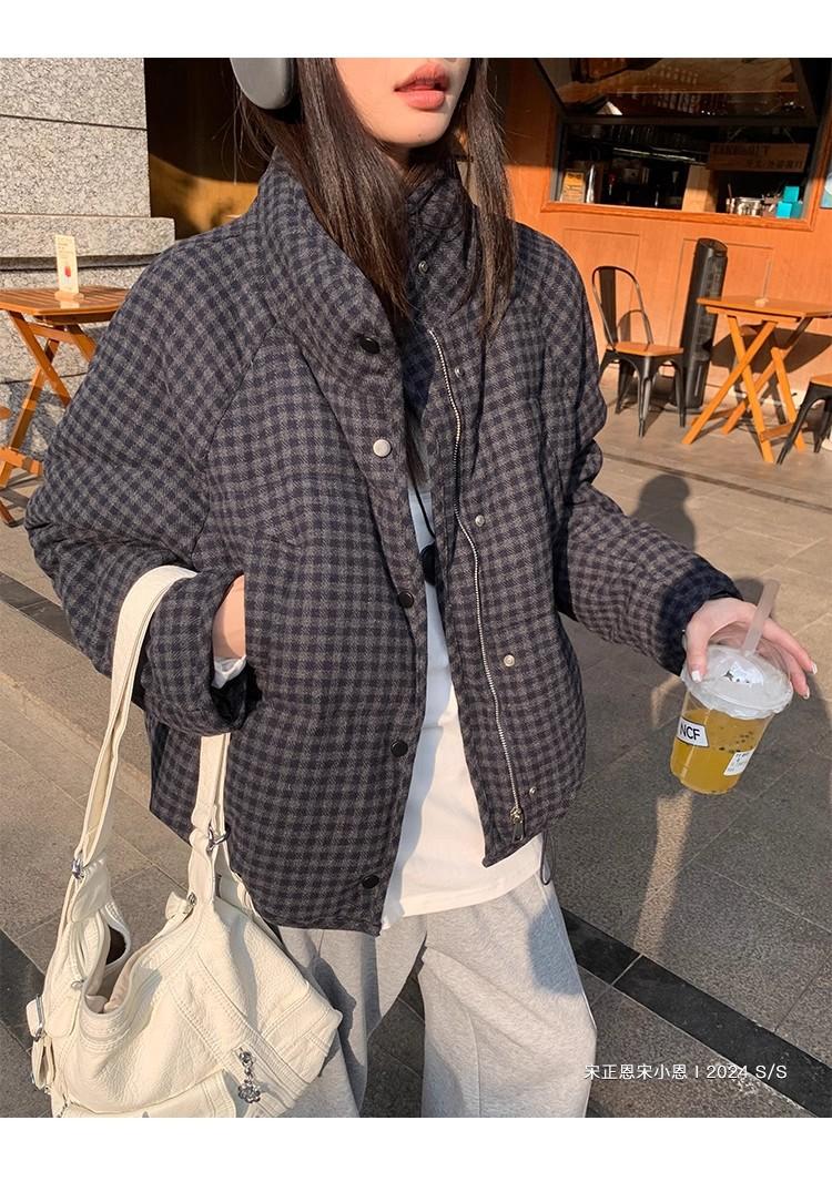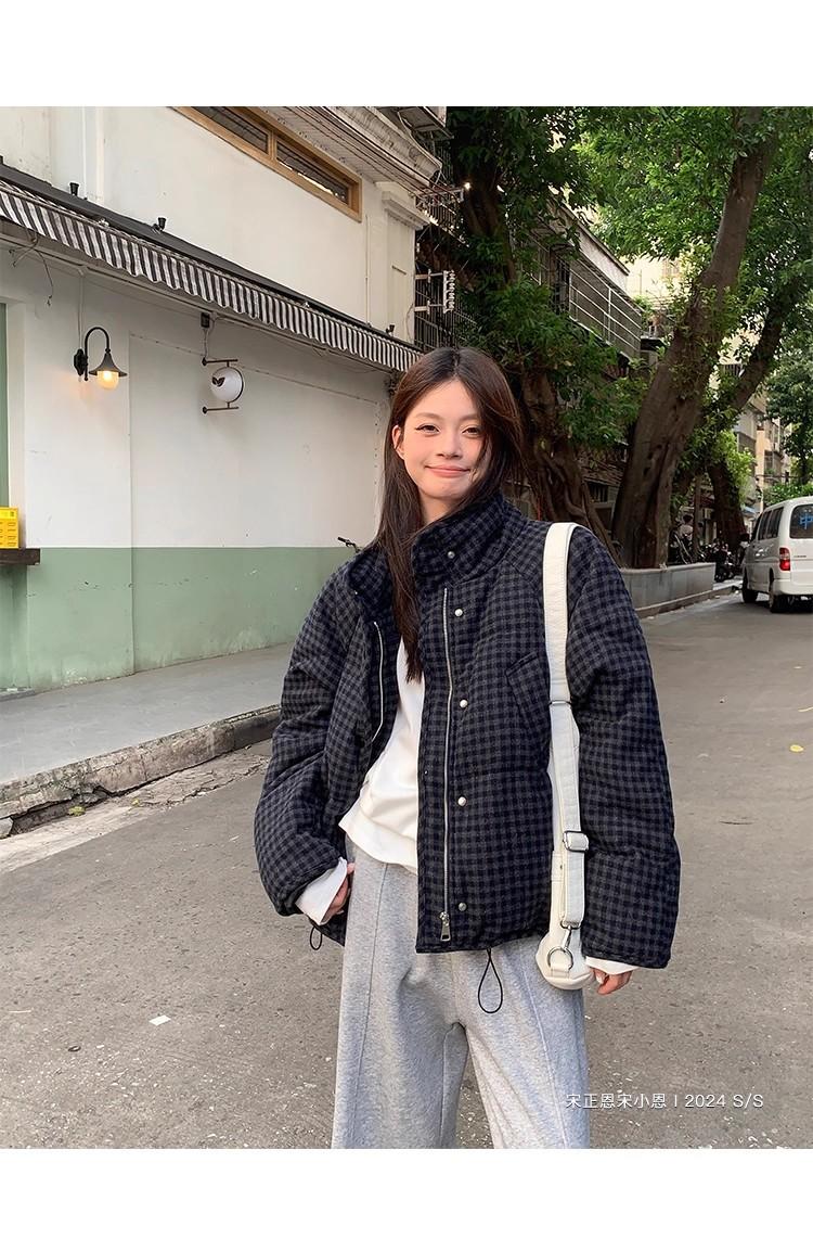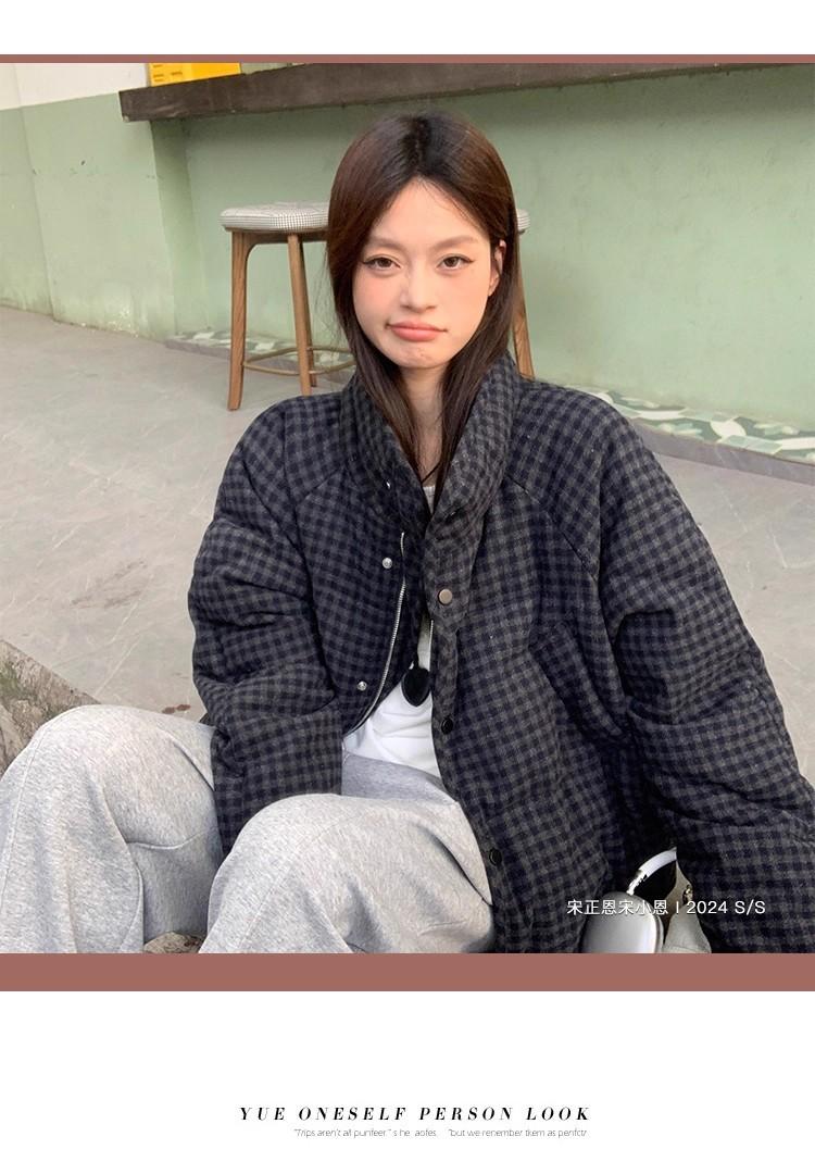 Abrigo de algodón a cuadros retro para mujer invierno nuevo ligero holgado cálido persona pequeña sentido de alta gama prenda exterior top marea
