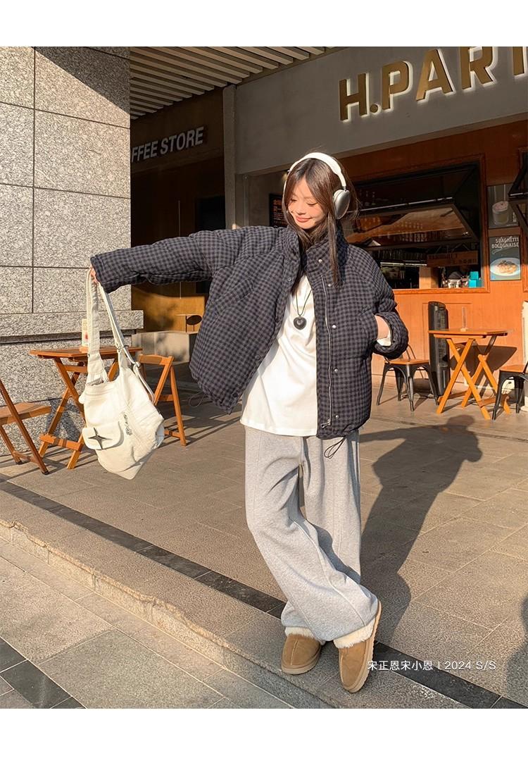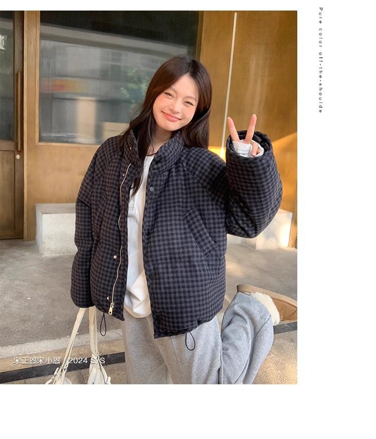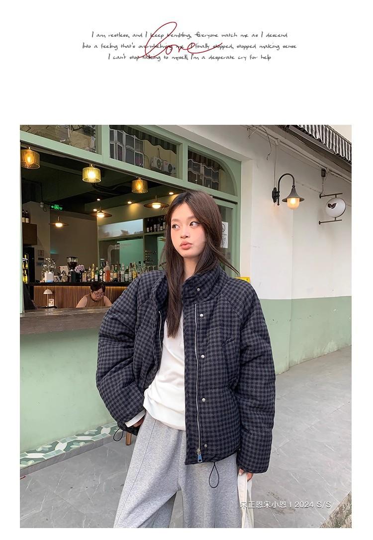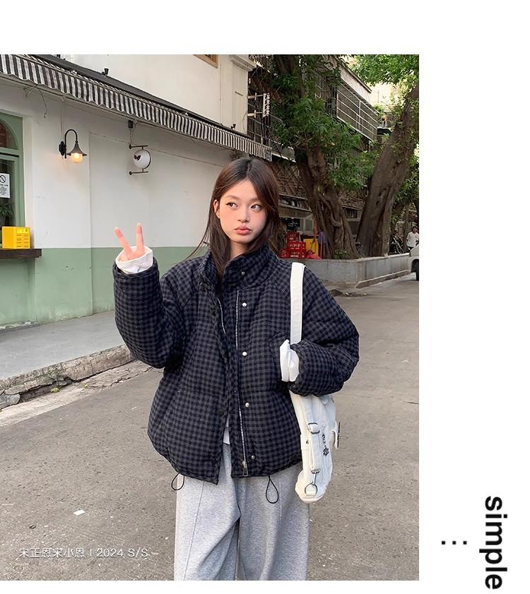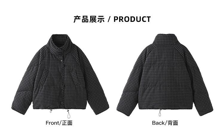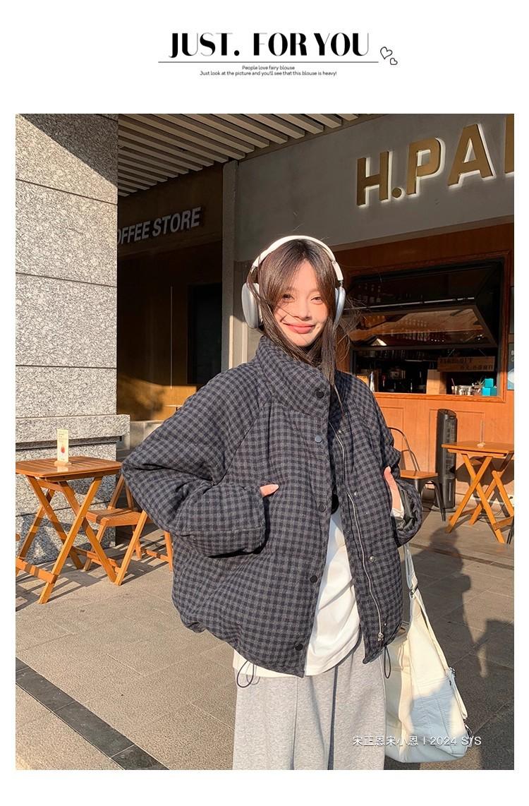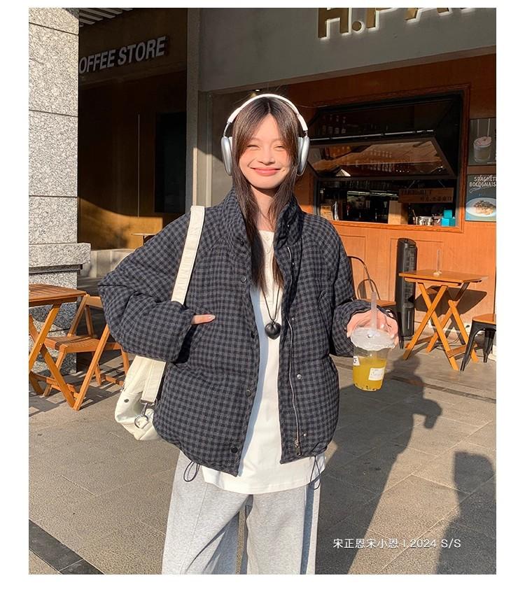 Abrigo de algodón a cuadros retro para mujer invierno nuevo ligero holgado cálido persona pequeña sentido de alta gama prenda exterior top marea