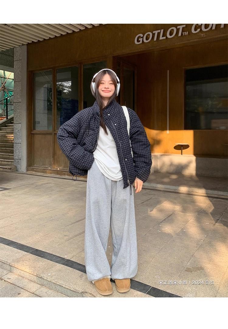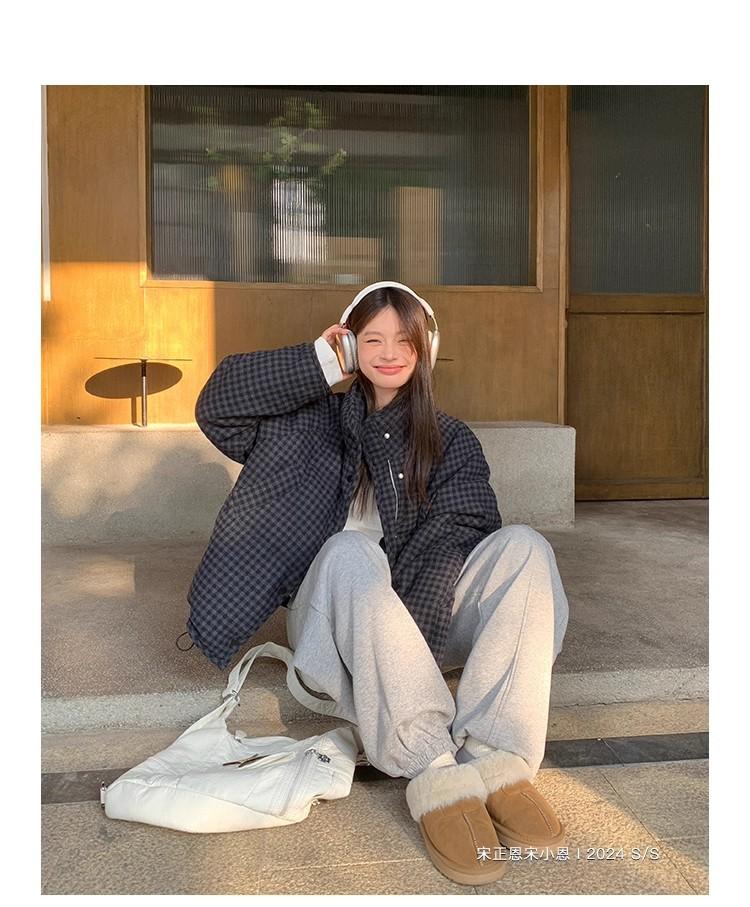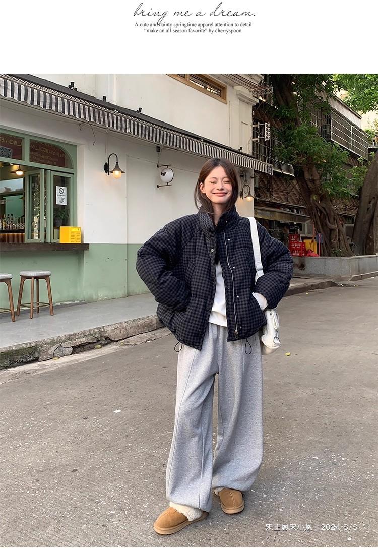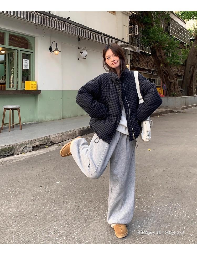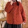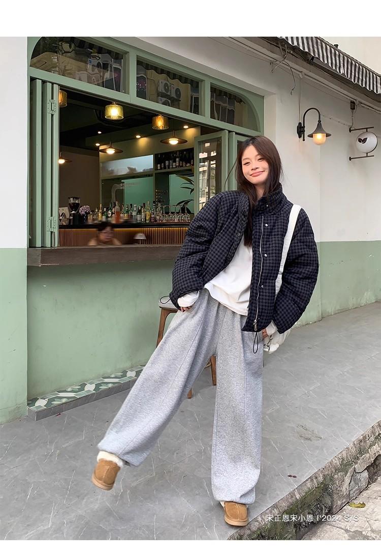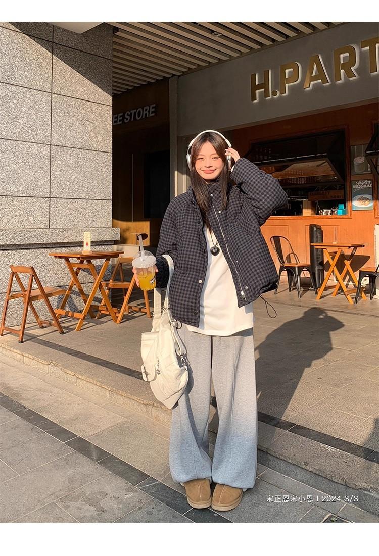 Abrigo de algodón a cuadros retro para mujer invierno nuevo ligero holgado cálido persona pequeña sentido de alta gama prenda exterior top marea