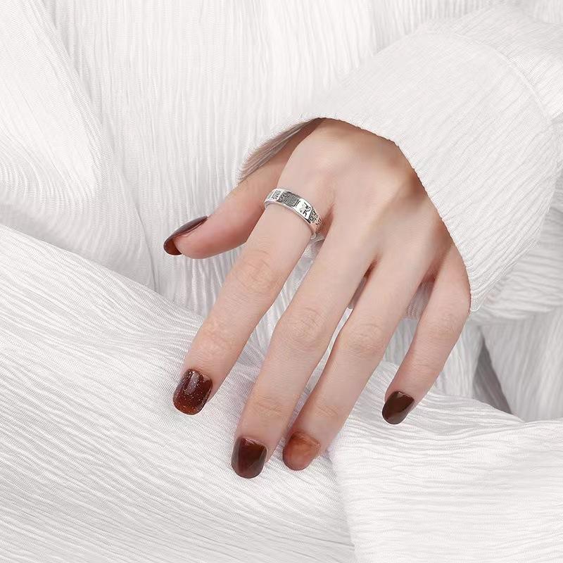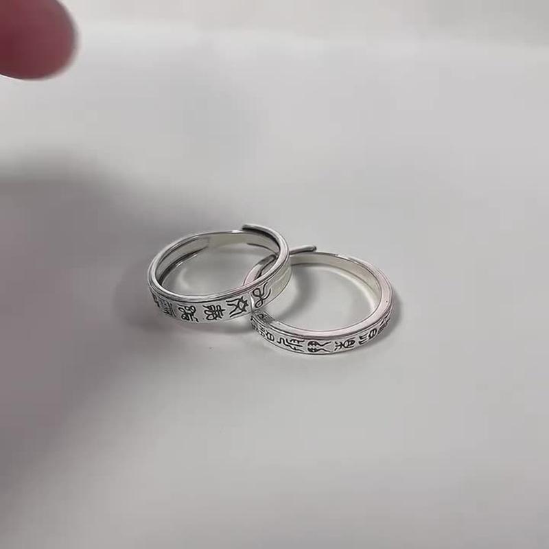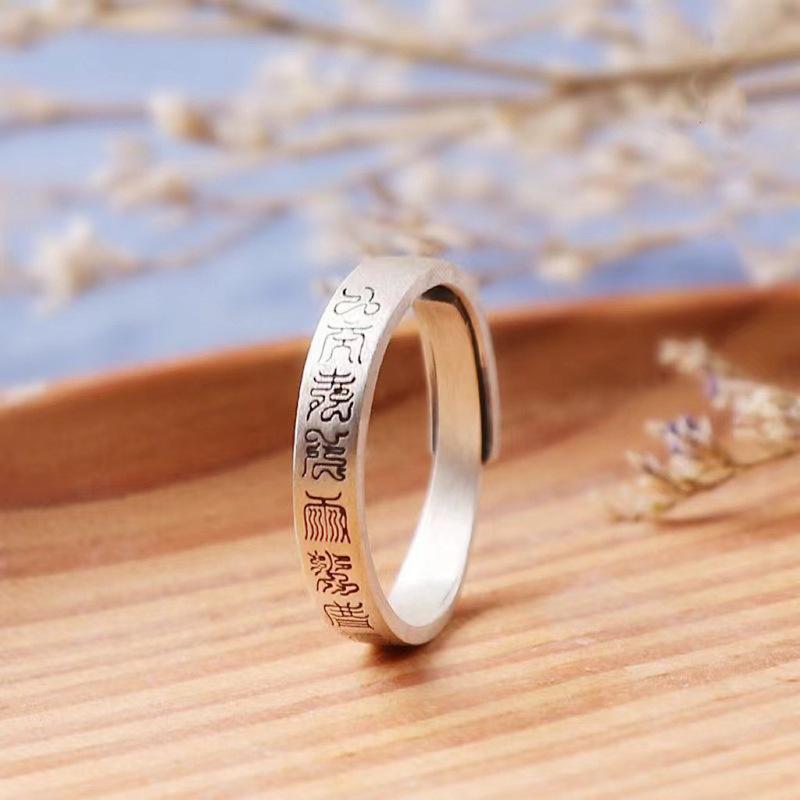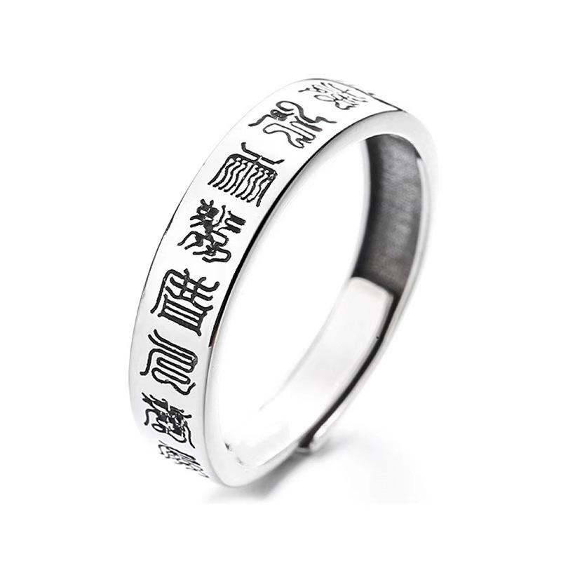Anillo taoísta de nueve caracteres de estilo étnico plateado, nicho abierto, ajustable, creativo, de moda, ventas directas de fábrica