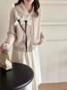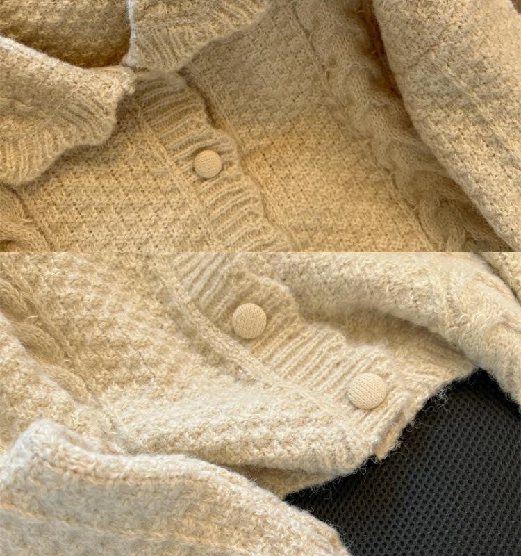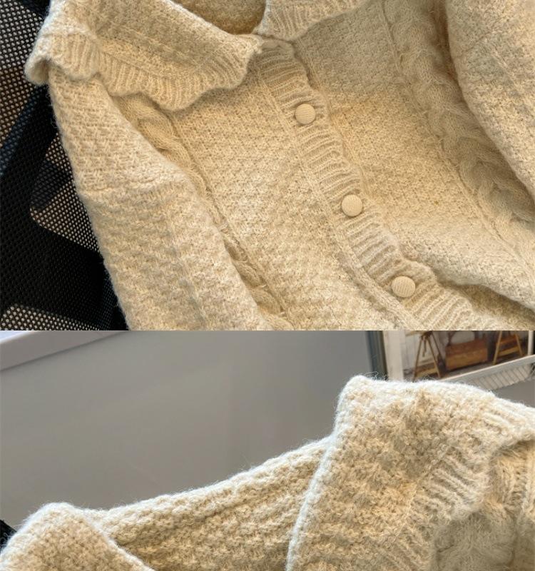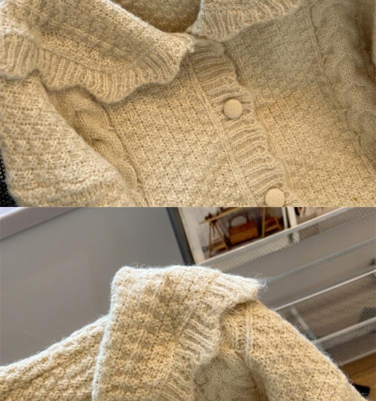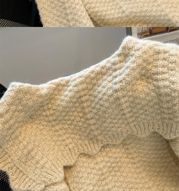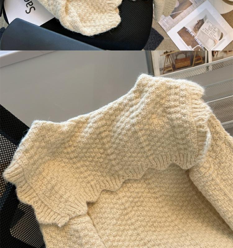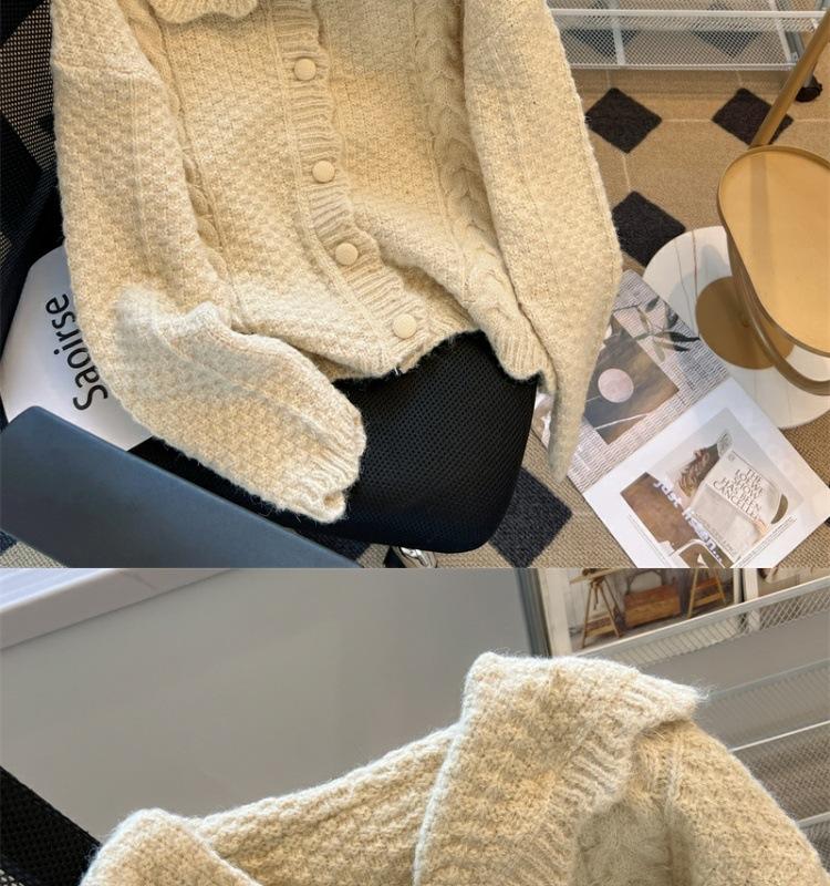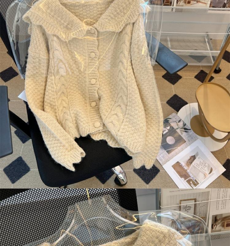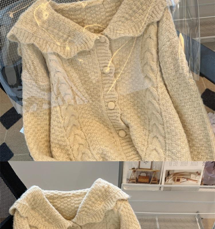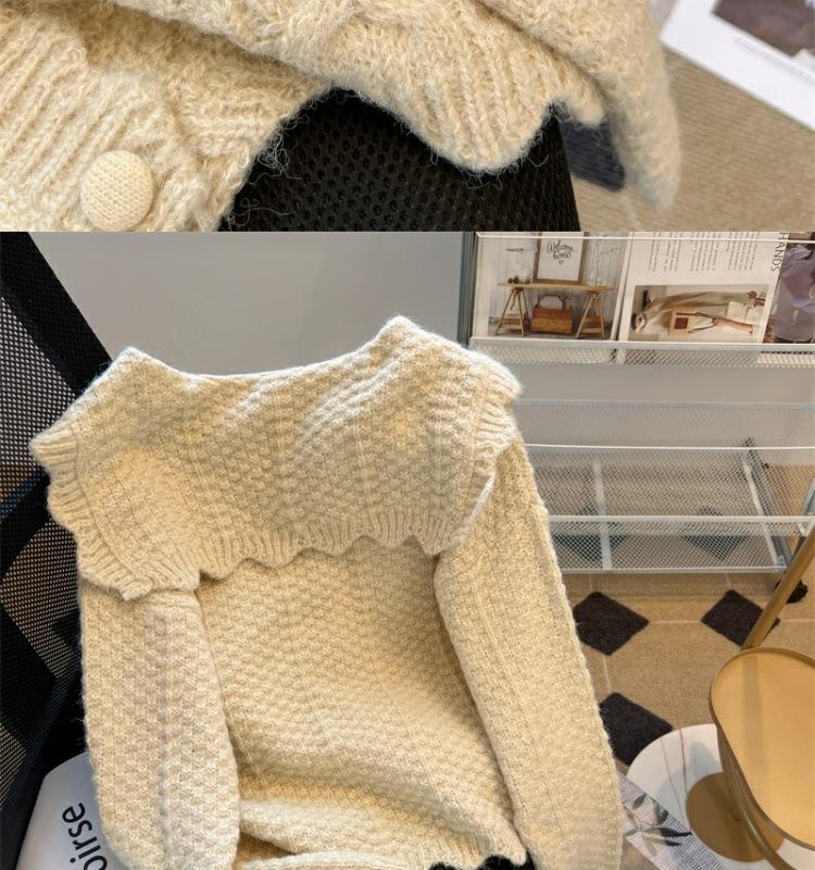 Suéter trenzado suave y glutinoso con cuello marinero francés nuevo 2023, cárdigan de punto holgado y moderno para primavera, otoño e invierno para mujer